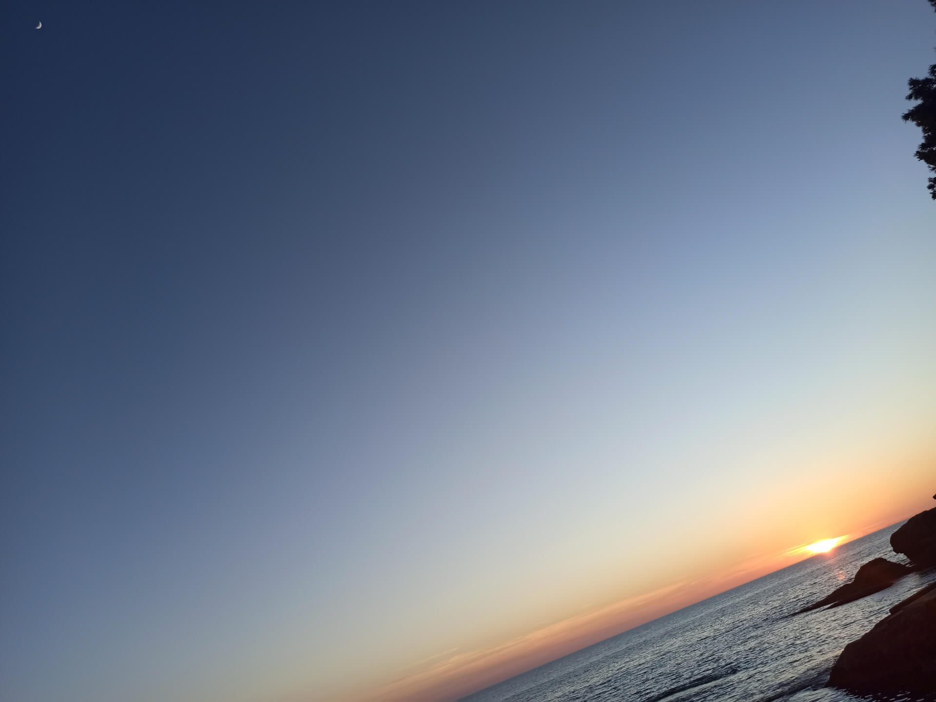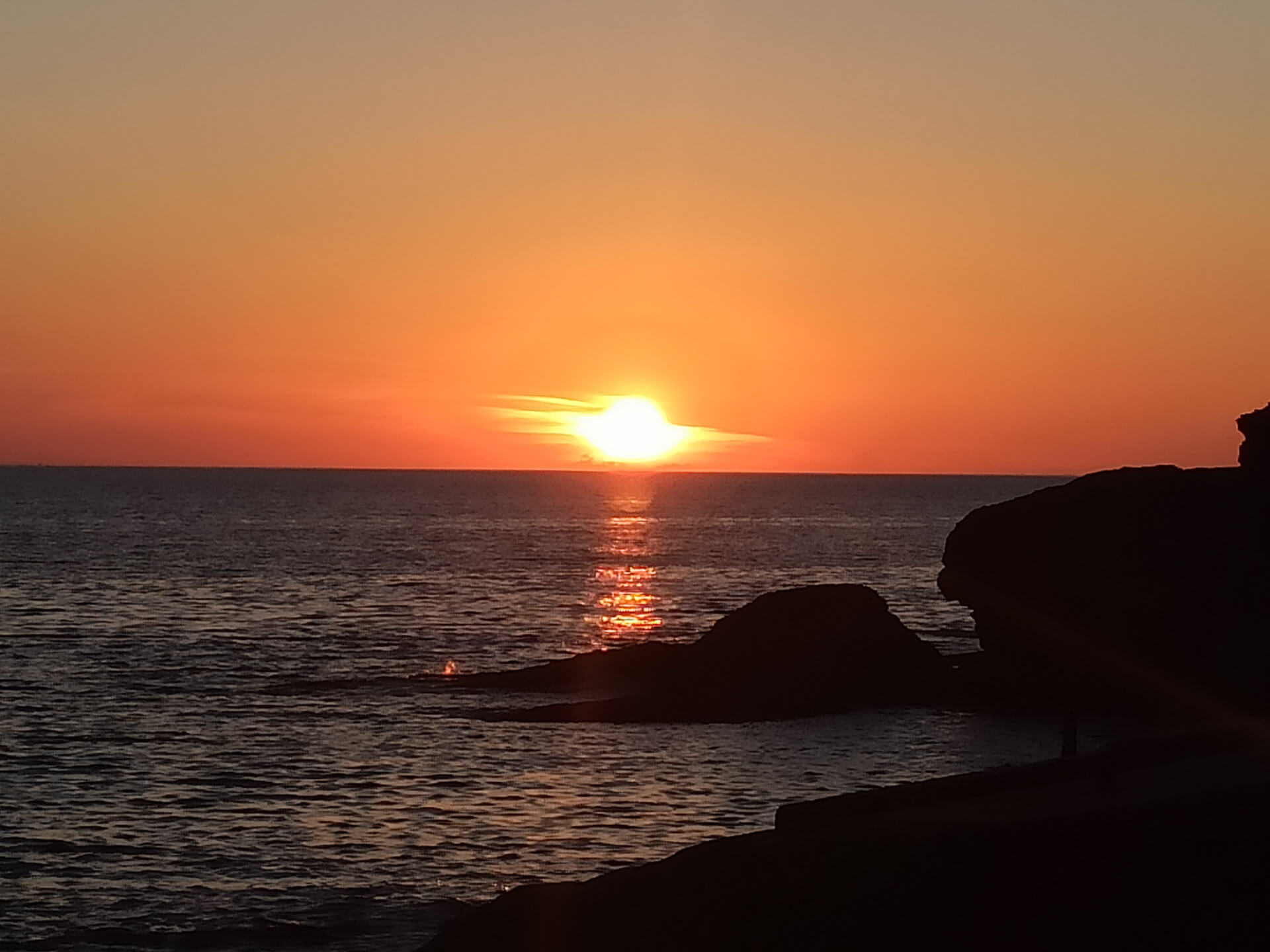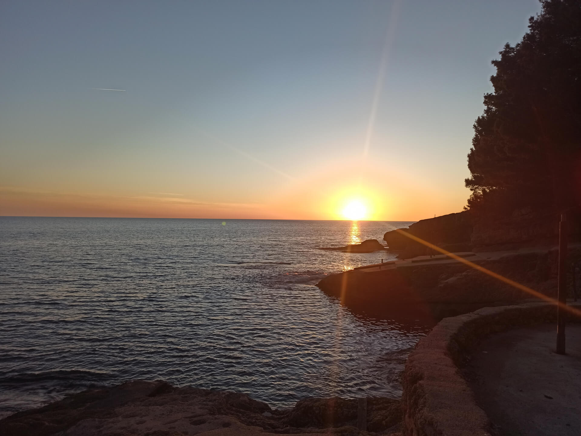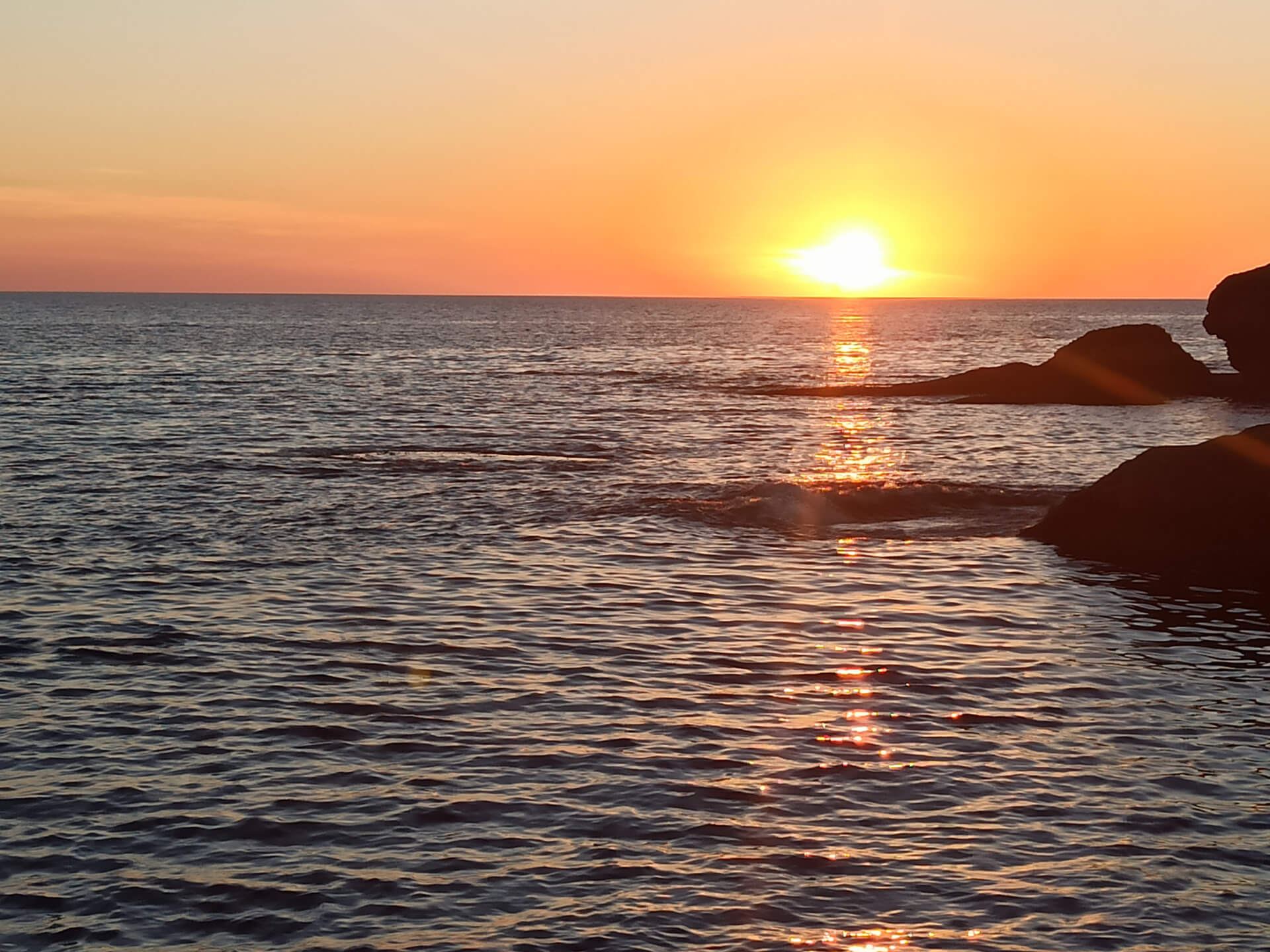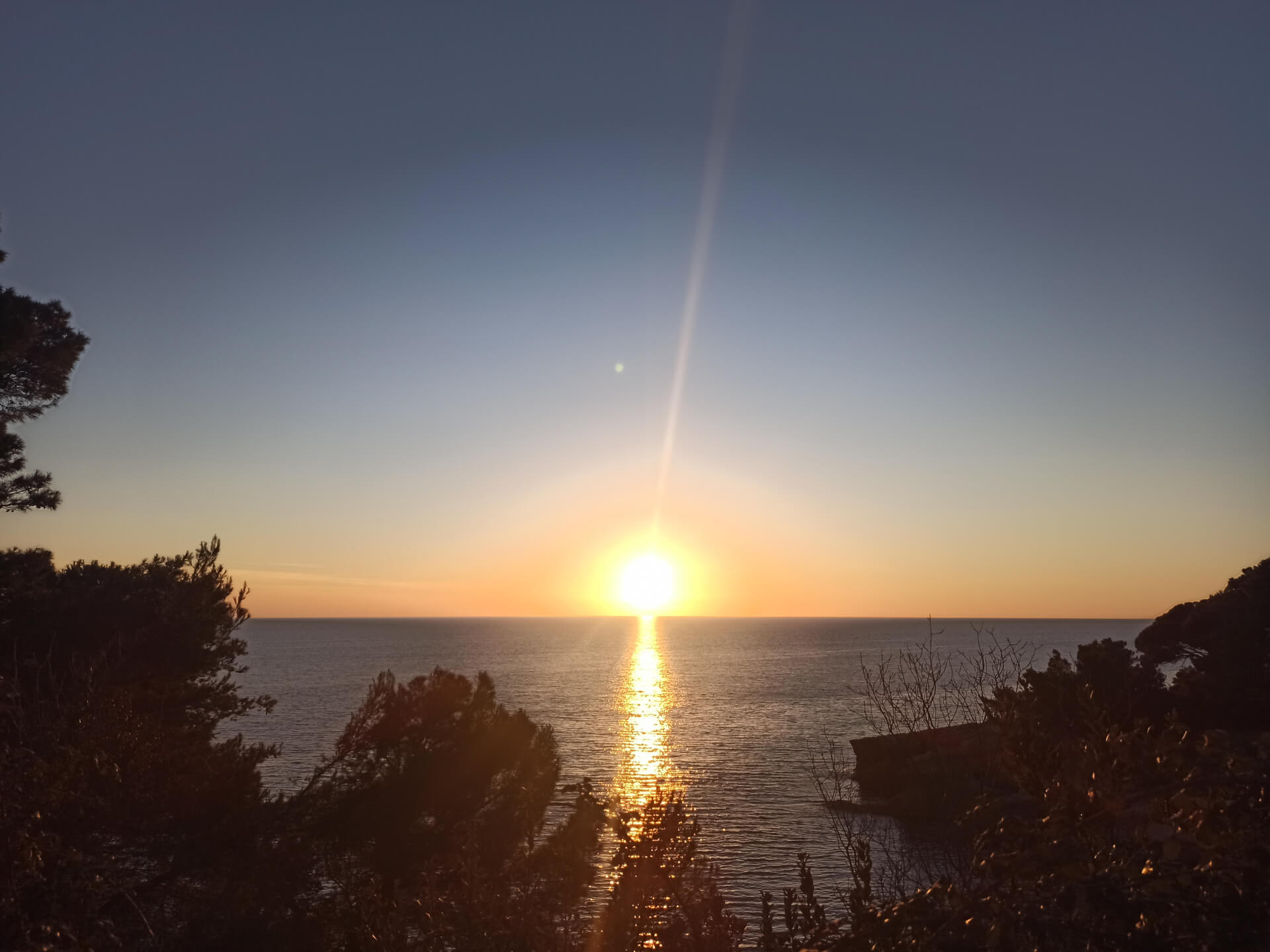 • Highlighted Albatros Nudist Beach with sunset light through the trees