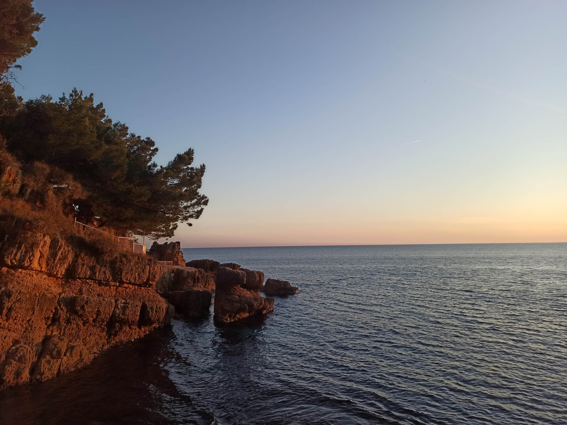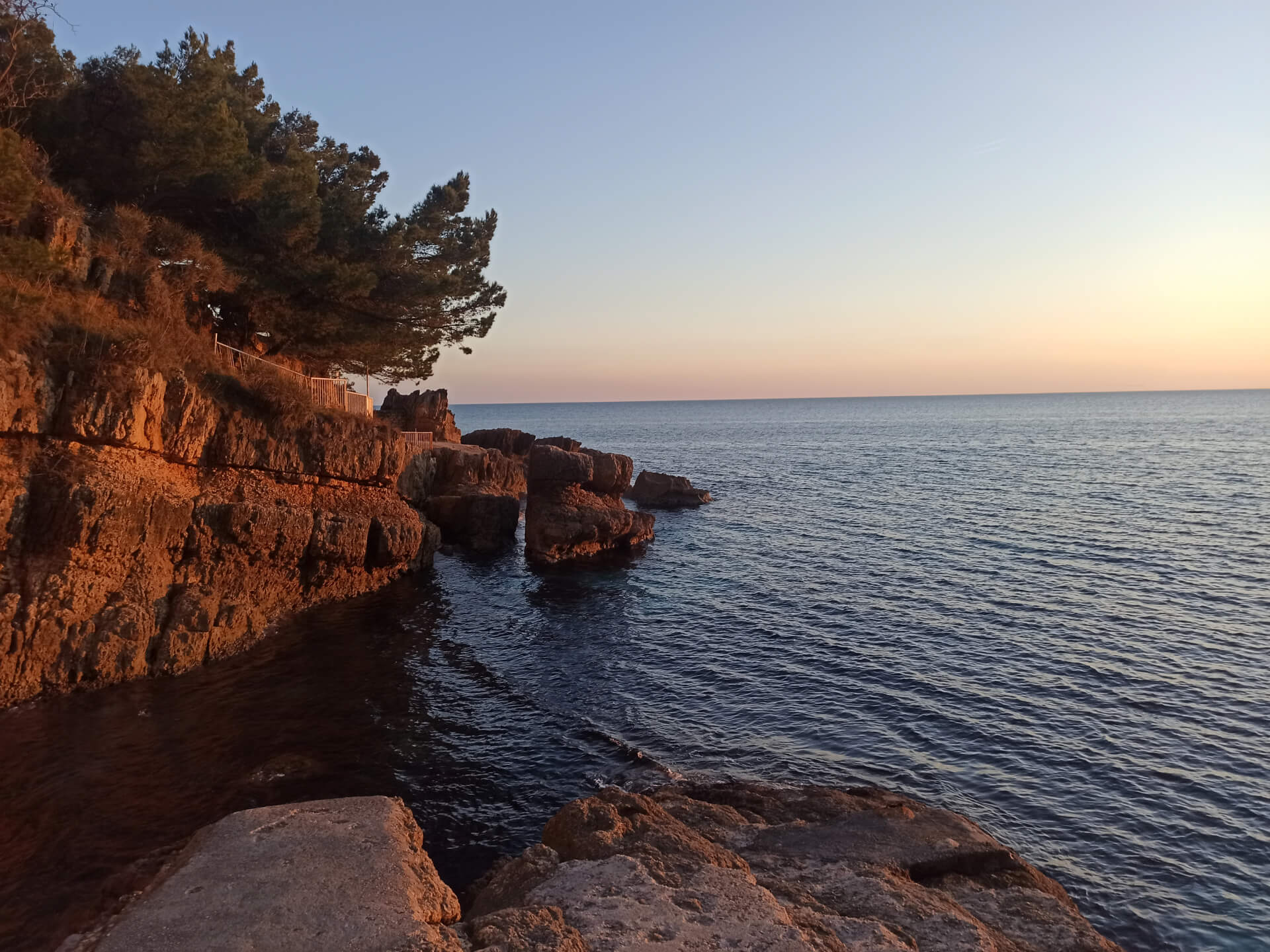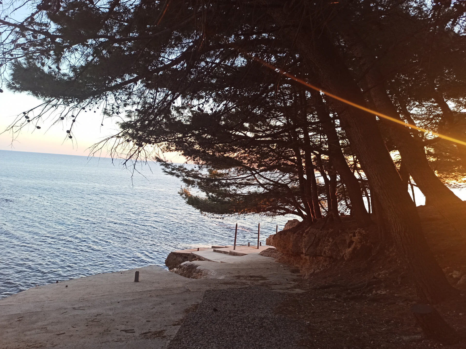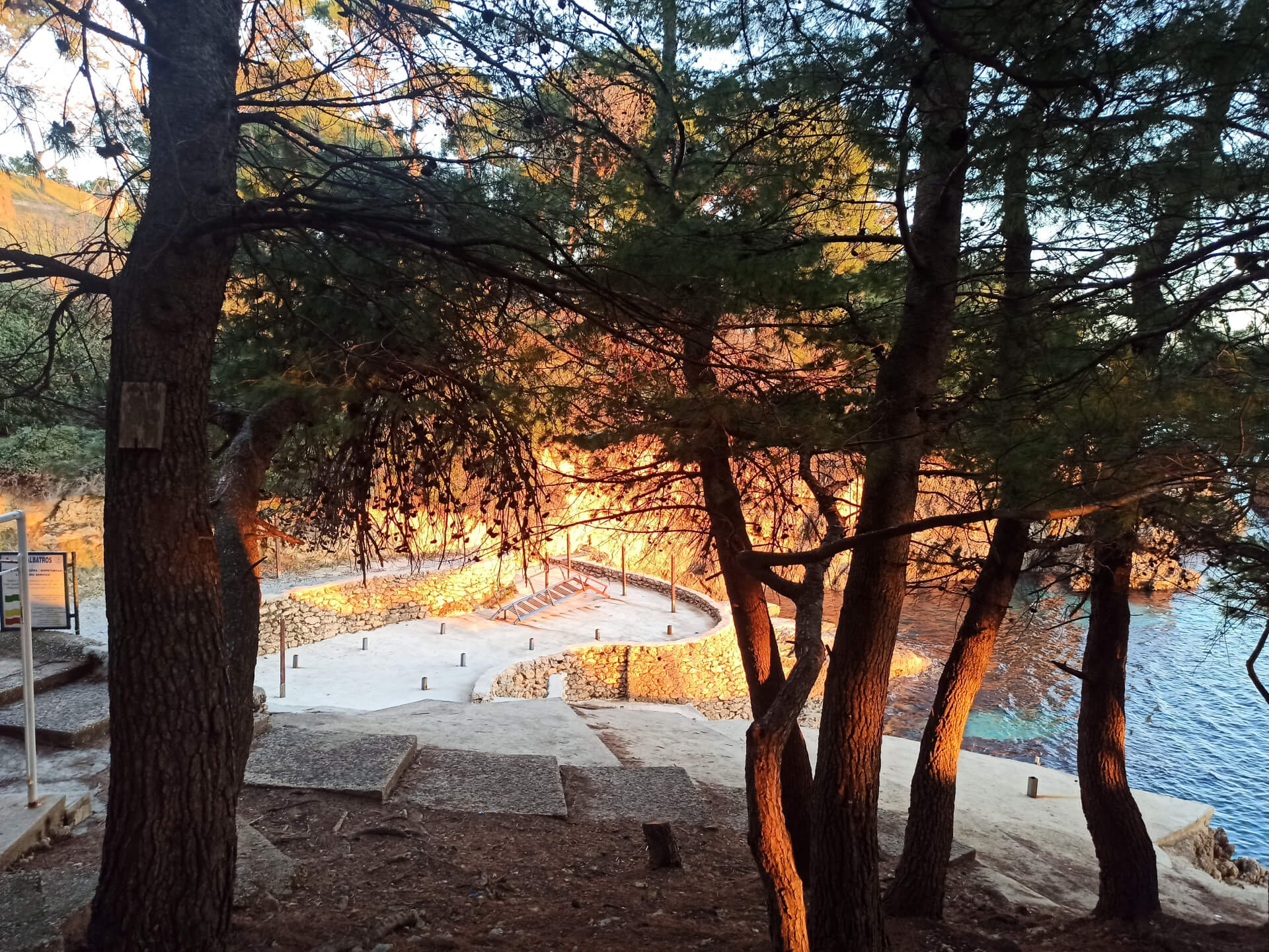 Nude Beaches are extremely lovely in Montenegro. This one is also one of the most cozy and pretty ones. Located near Albatros hotel, it is hidden by rocks and beautiful trees. This is all the needed infrastructure nearby. Concrete platforms have metal stair to the water for comfortable swimming. It is located next to the hiking trail. Beautiful lovely place