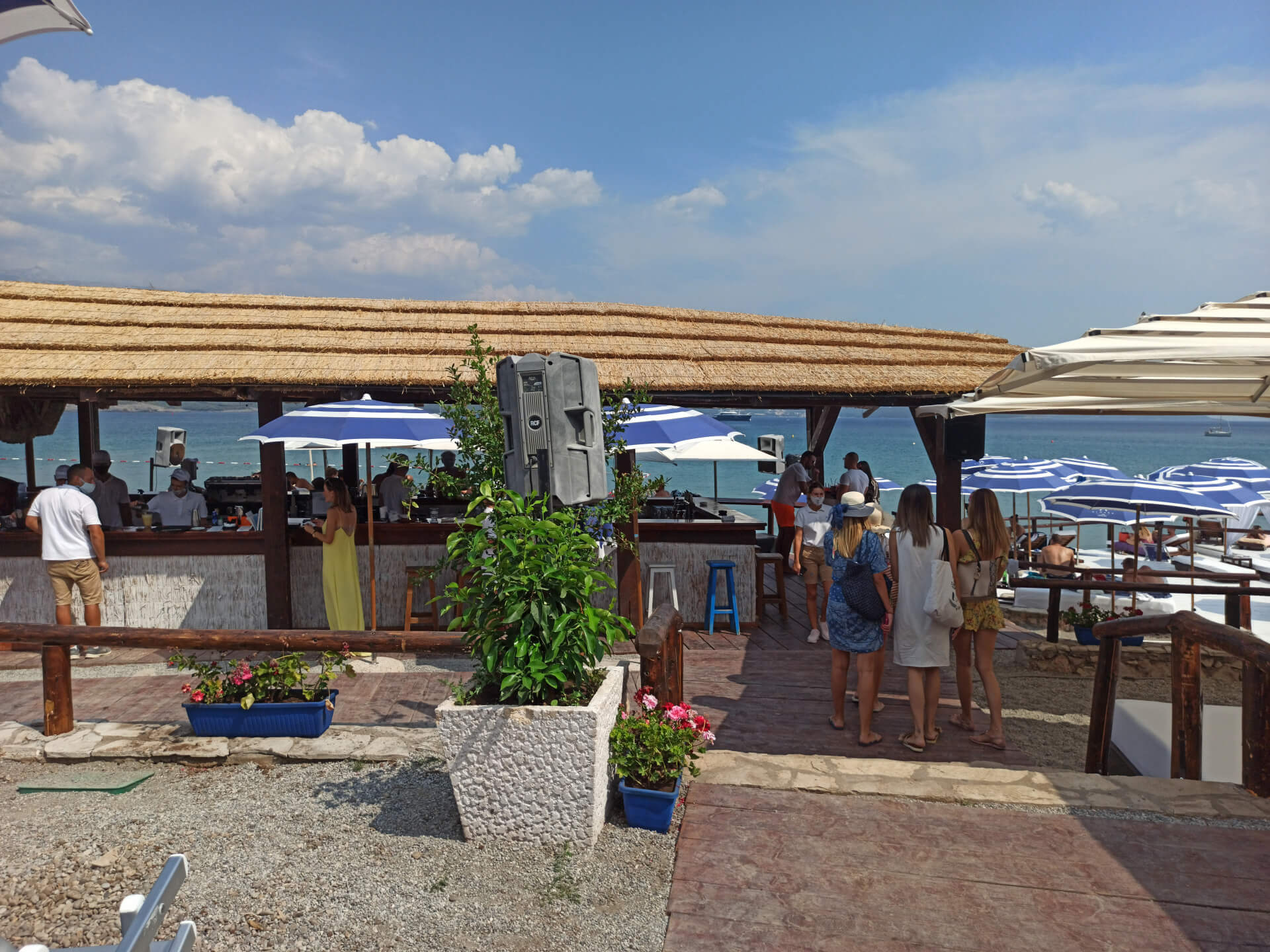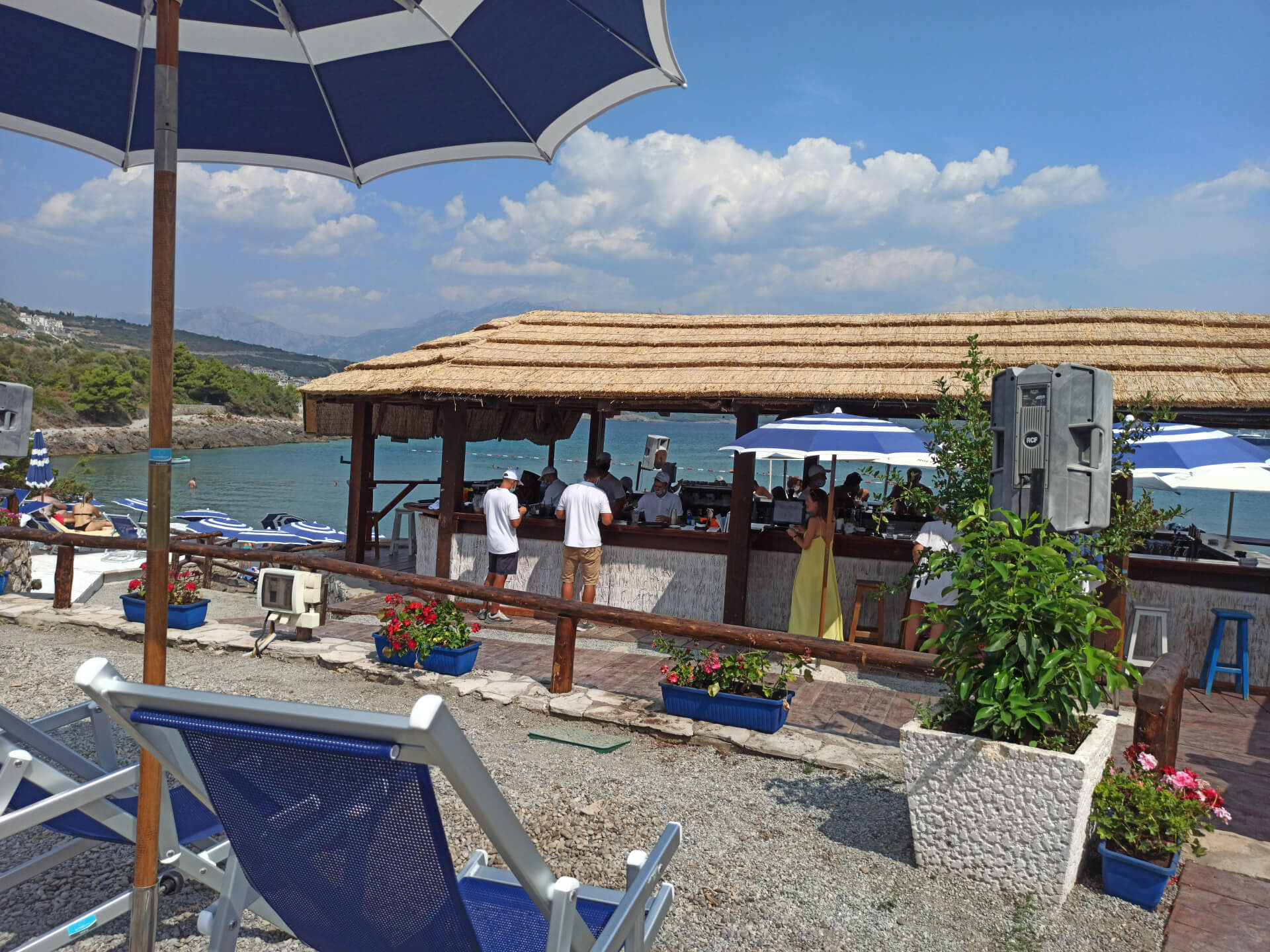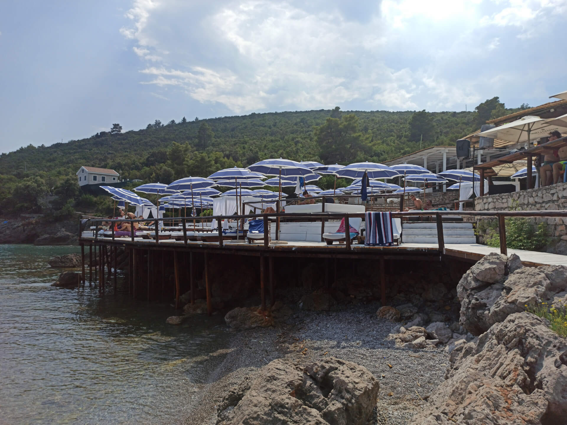Almara Beach Club is a pretty nice new beach in a Lustica Peninsula. It is a modern club for young people mostly. It has a good beach bar, they offer parties and lounge zone with beautiful modern sunbeds and regular sunbeds on different levels.