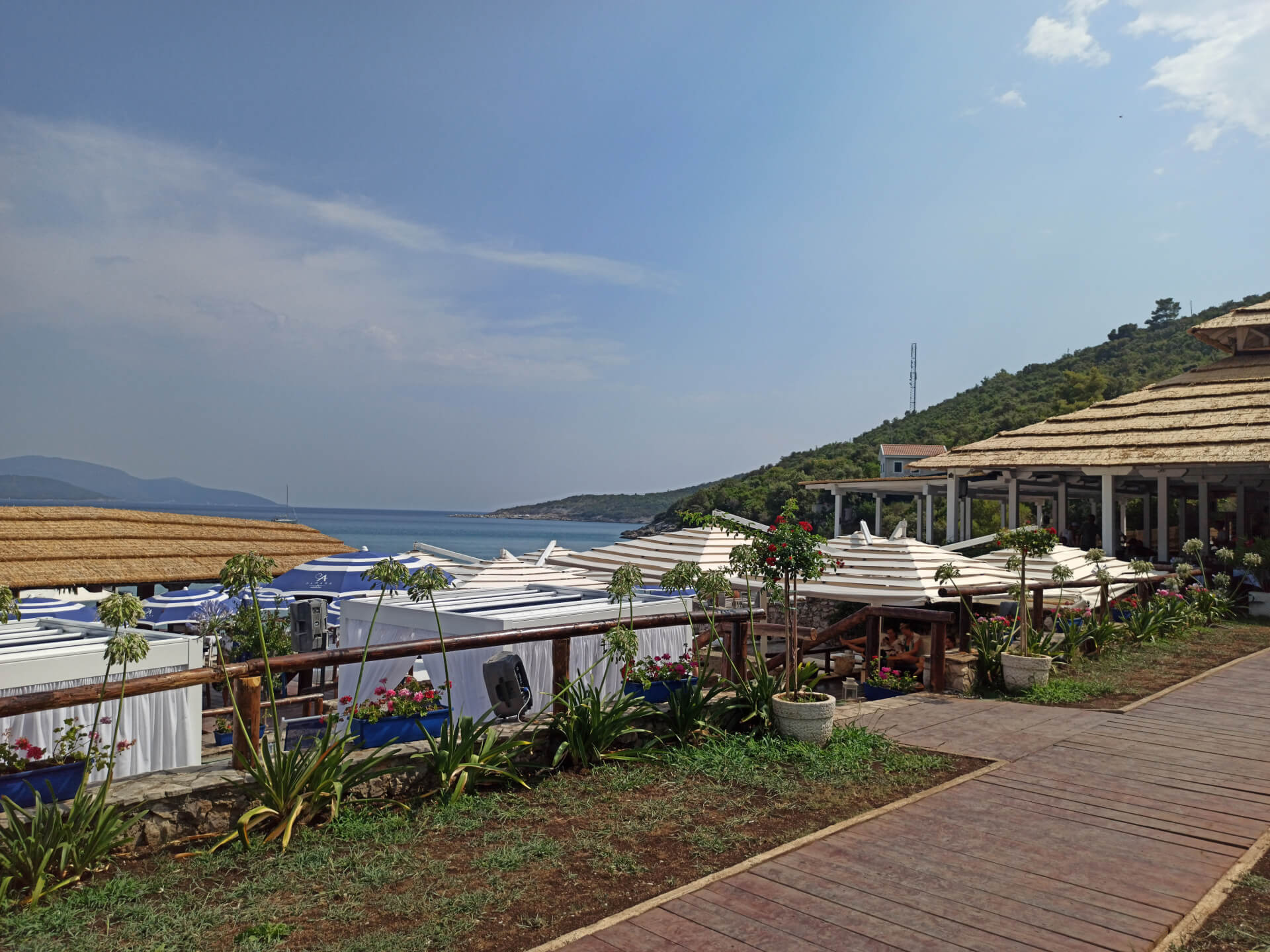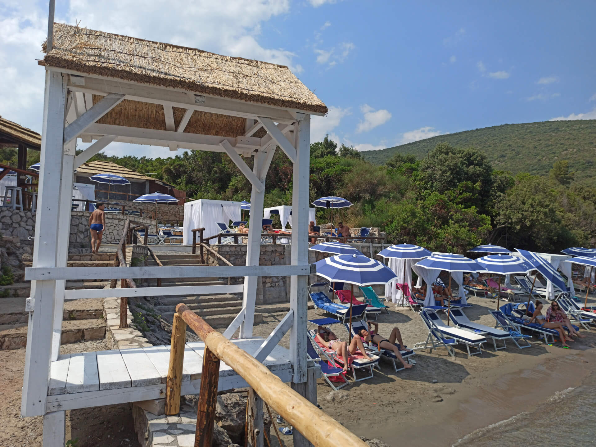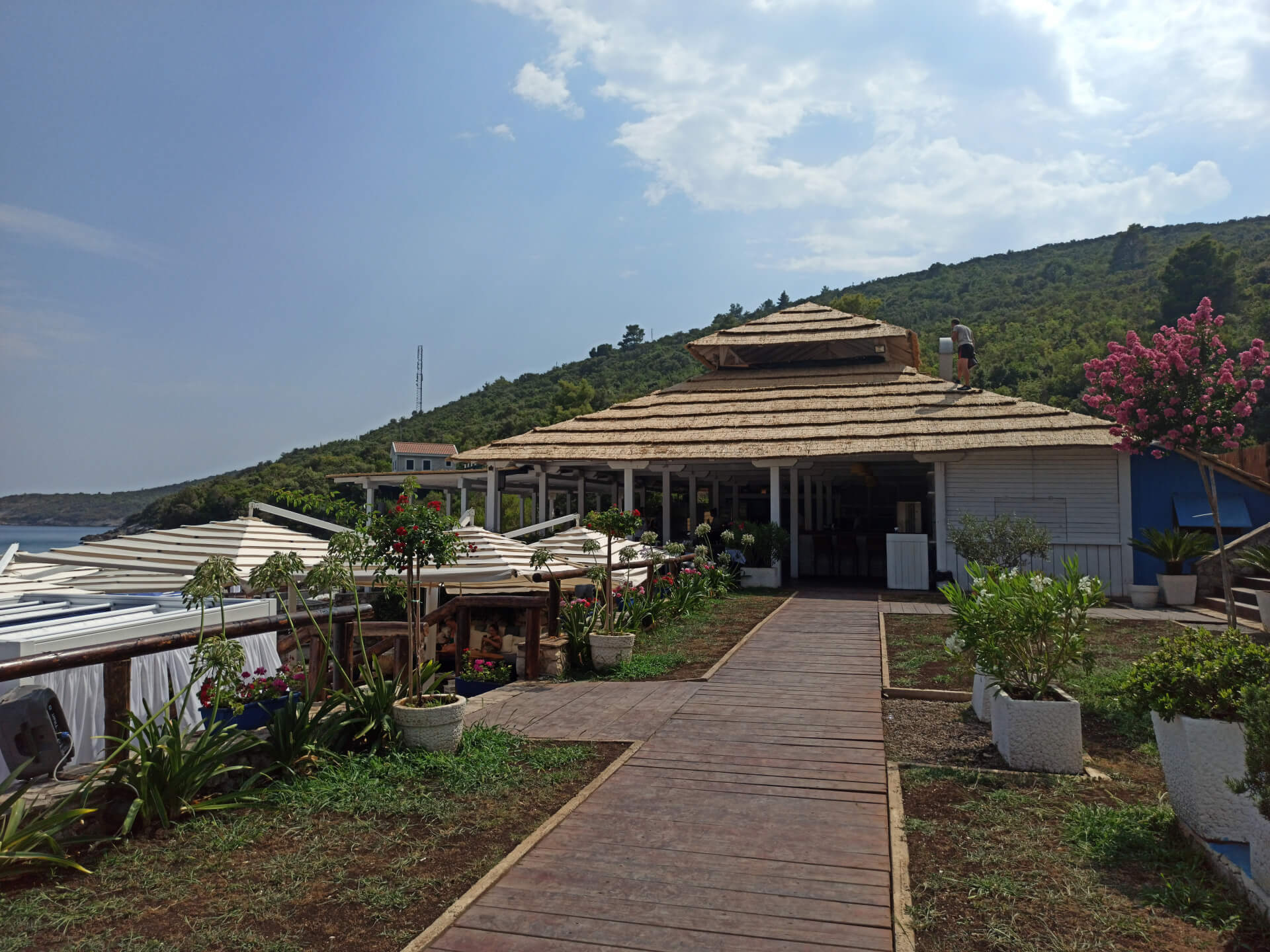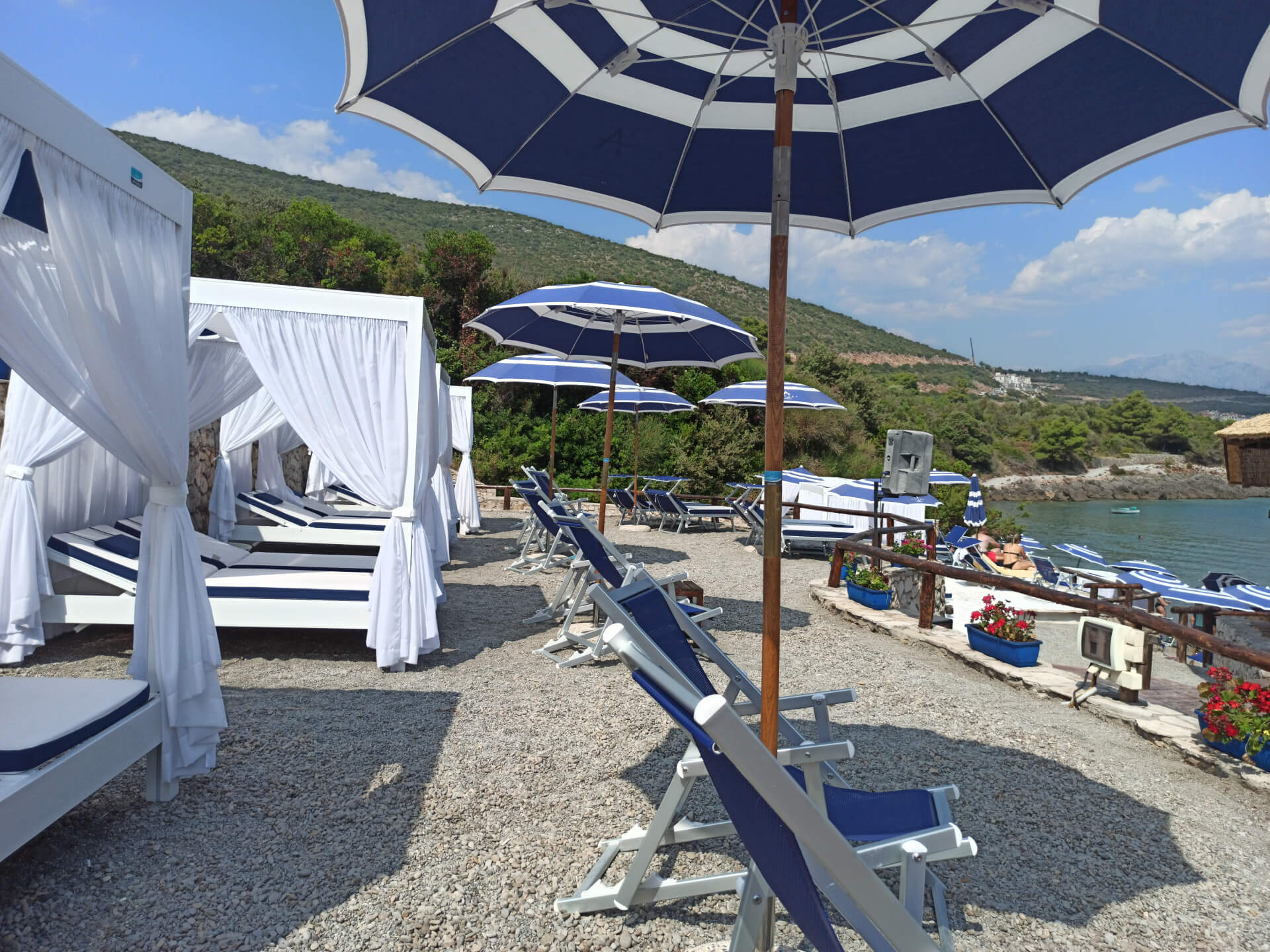 Almara Beach Club is a pretty nice new beach in a Lustica Peninsula. It is a modern club for young people mostly. It has a good beach bar, they offer parties and lounge zone with beautiful modern sunbeds and regular sunbeds on different levels.