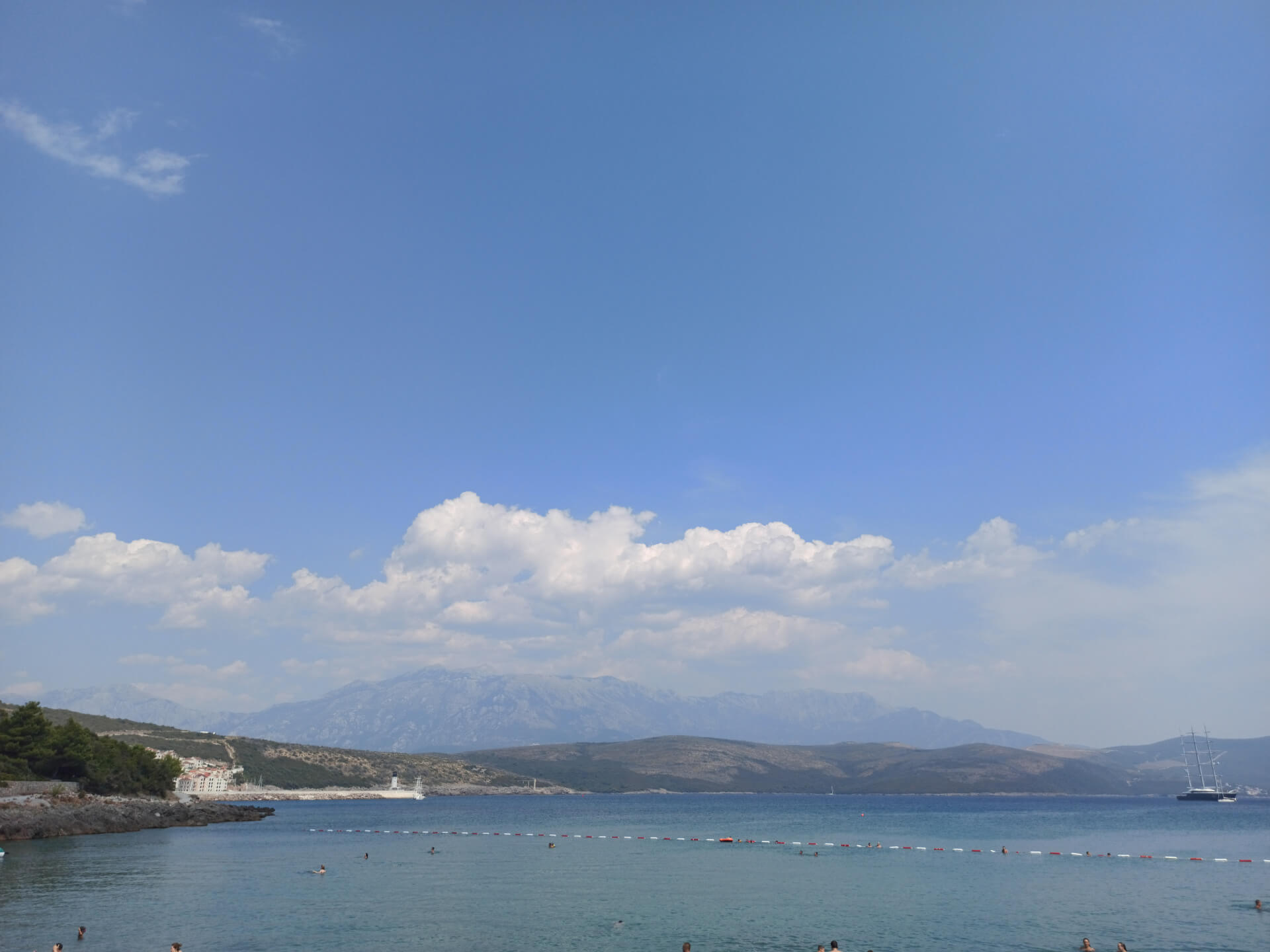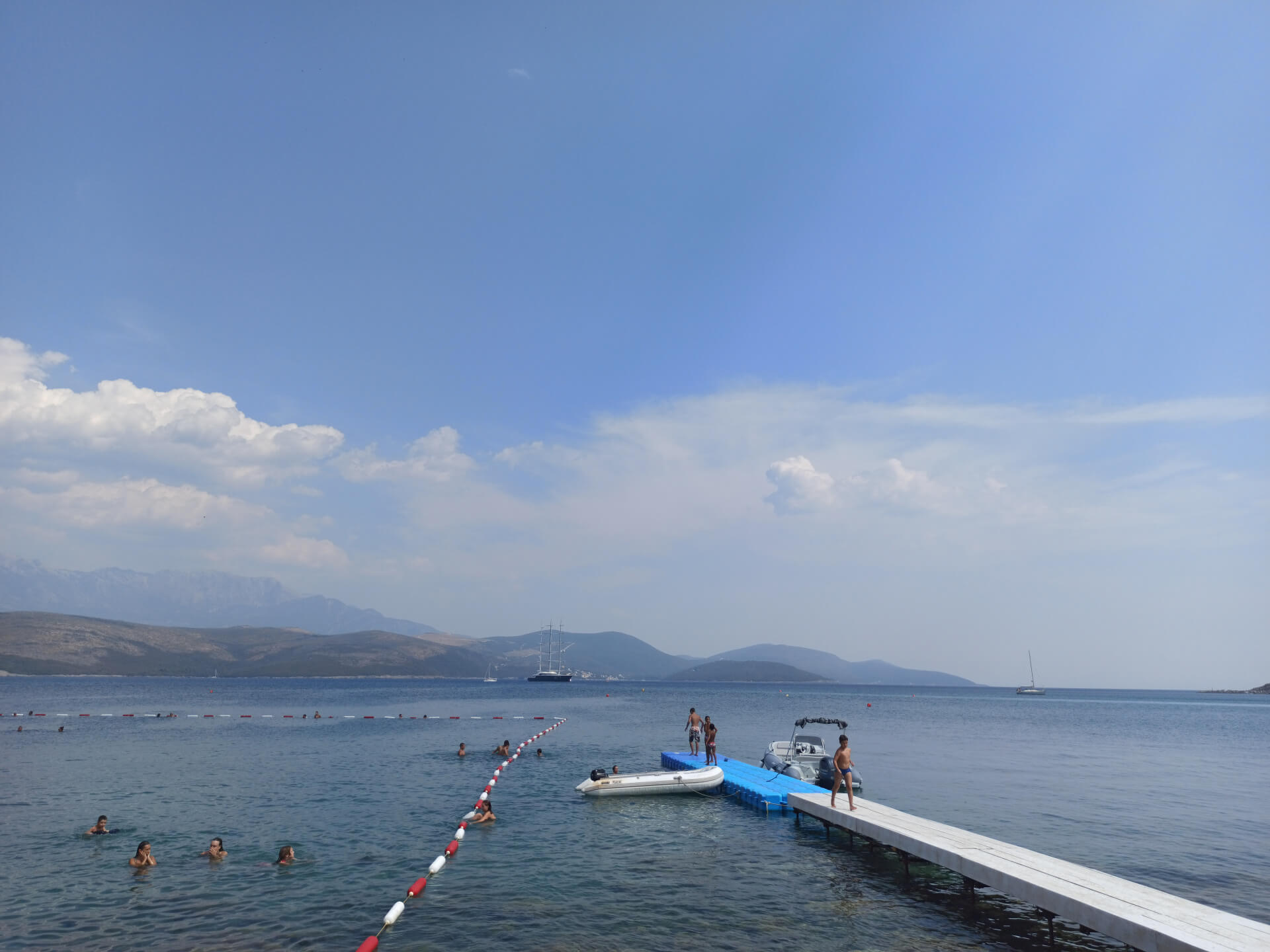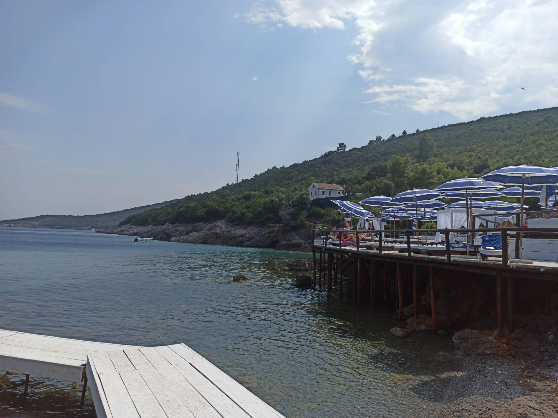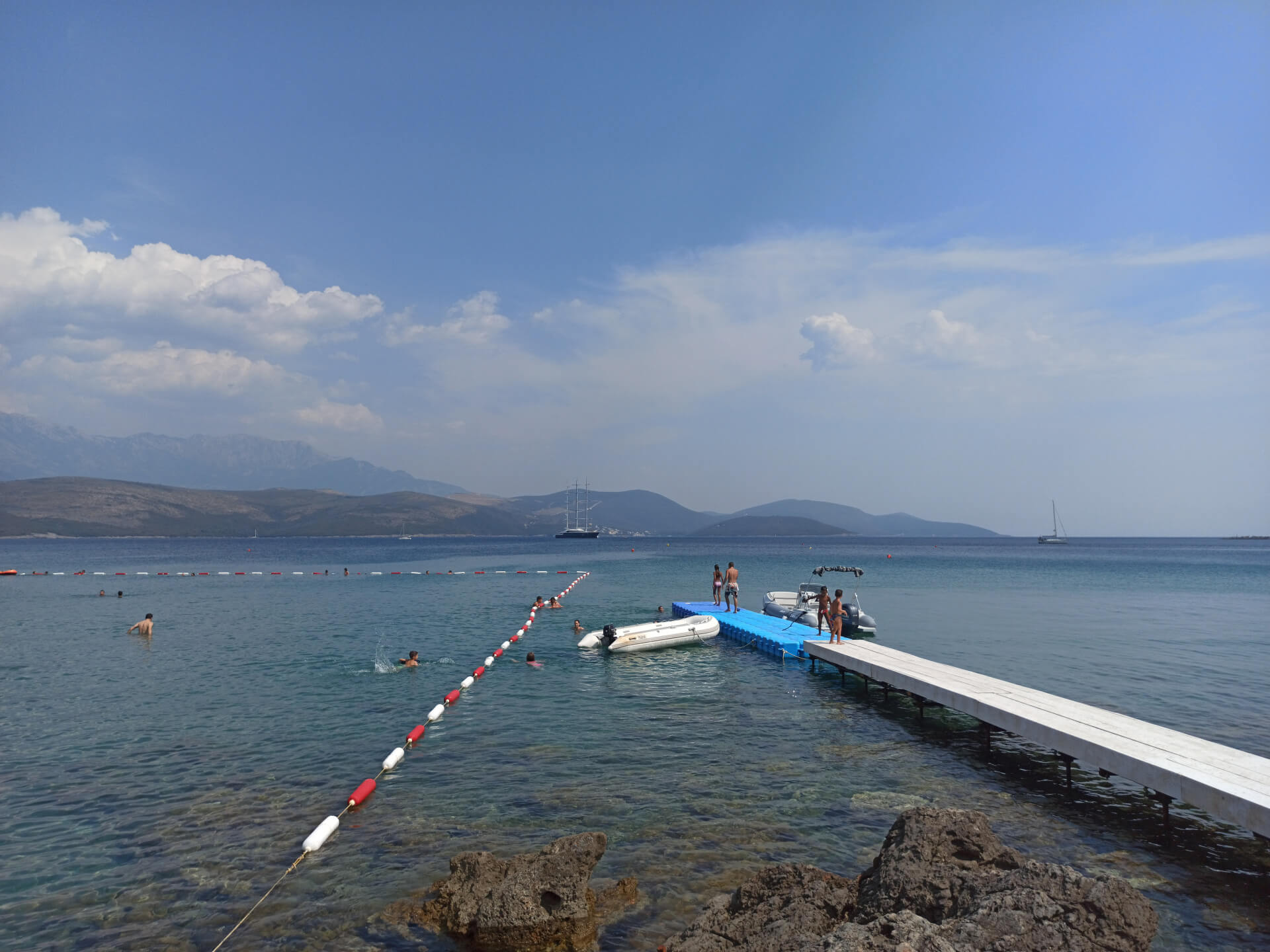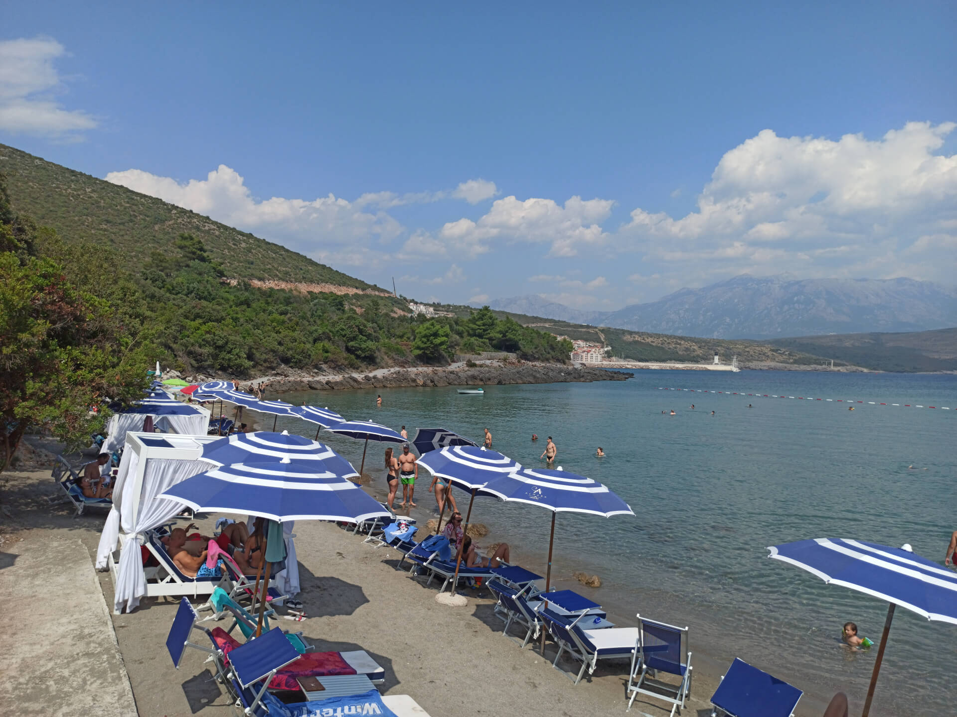 A long pier goes into the sea allowing take a good walk and explore the sea world. There is everything needed for a perfect rest by the sea - changing rooms, toilets, private lounges and nice entrance into the sea. You can call to the club earlier and get your free parking space. In order case it will be pretty hard to find free parking space. The beach itself isn't big. It is located not very far from biggest cities - Budva, Kotor, Tivat but if you're not traveling by car, it will be pretty hard to reach it without any vehicle. But it is surrounded by pure nature and you can find even some privacy around.