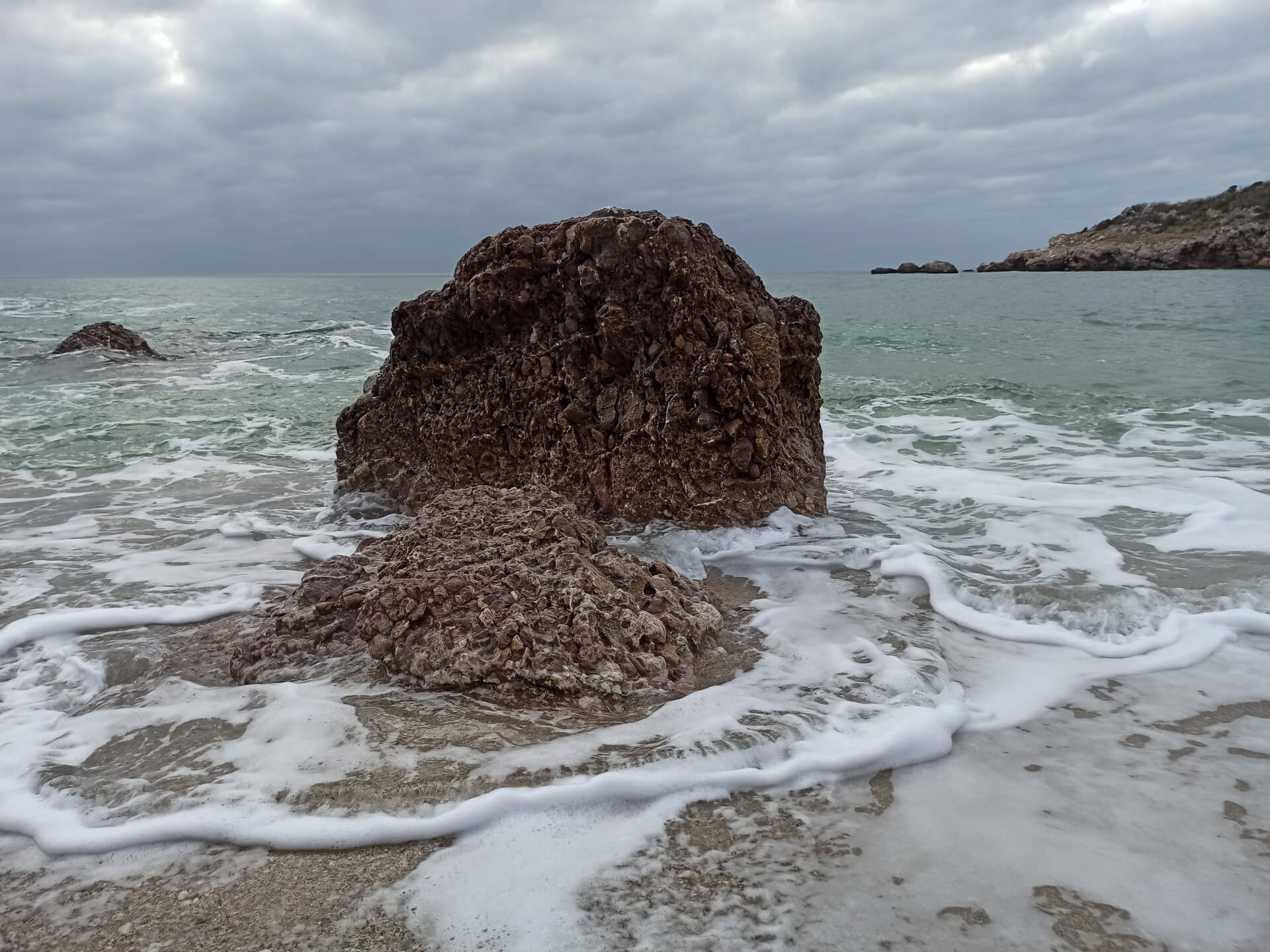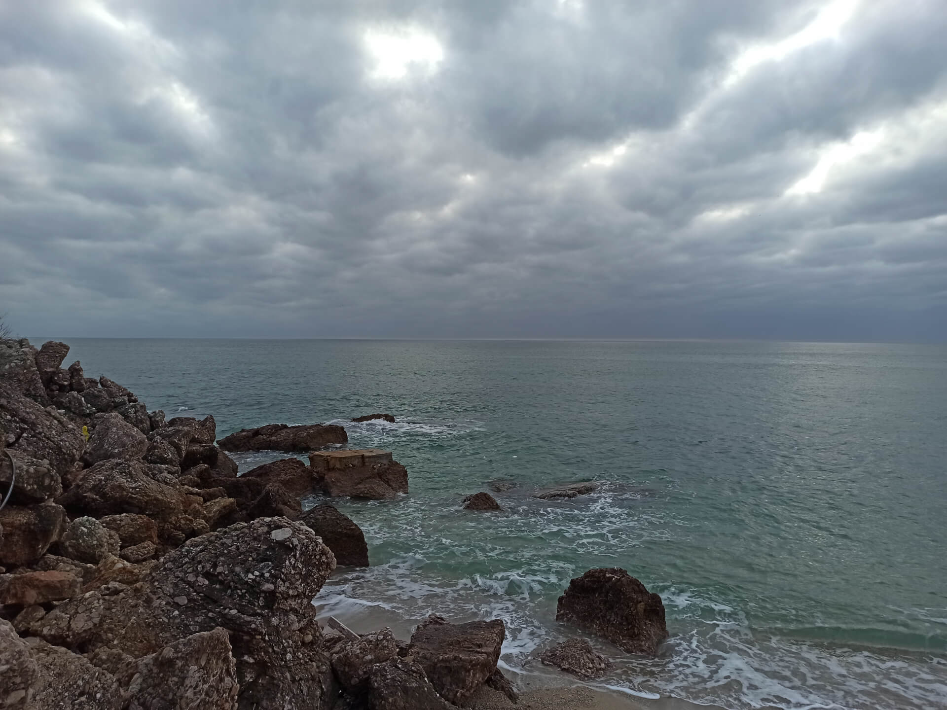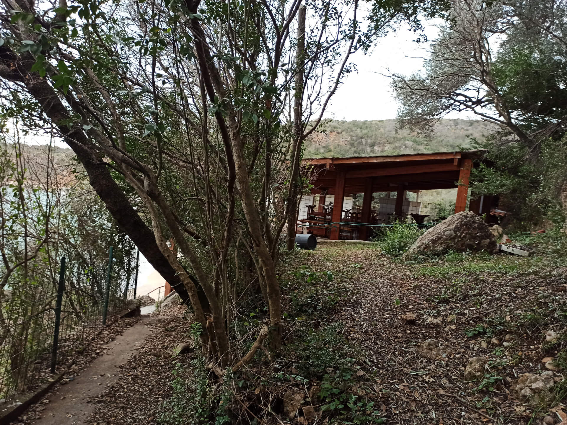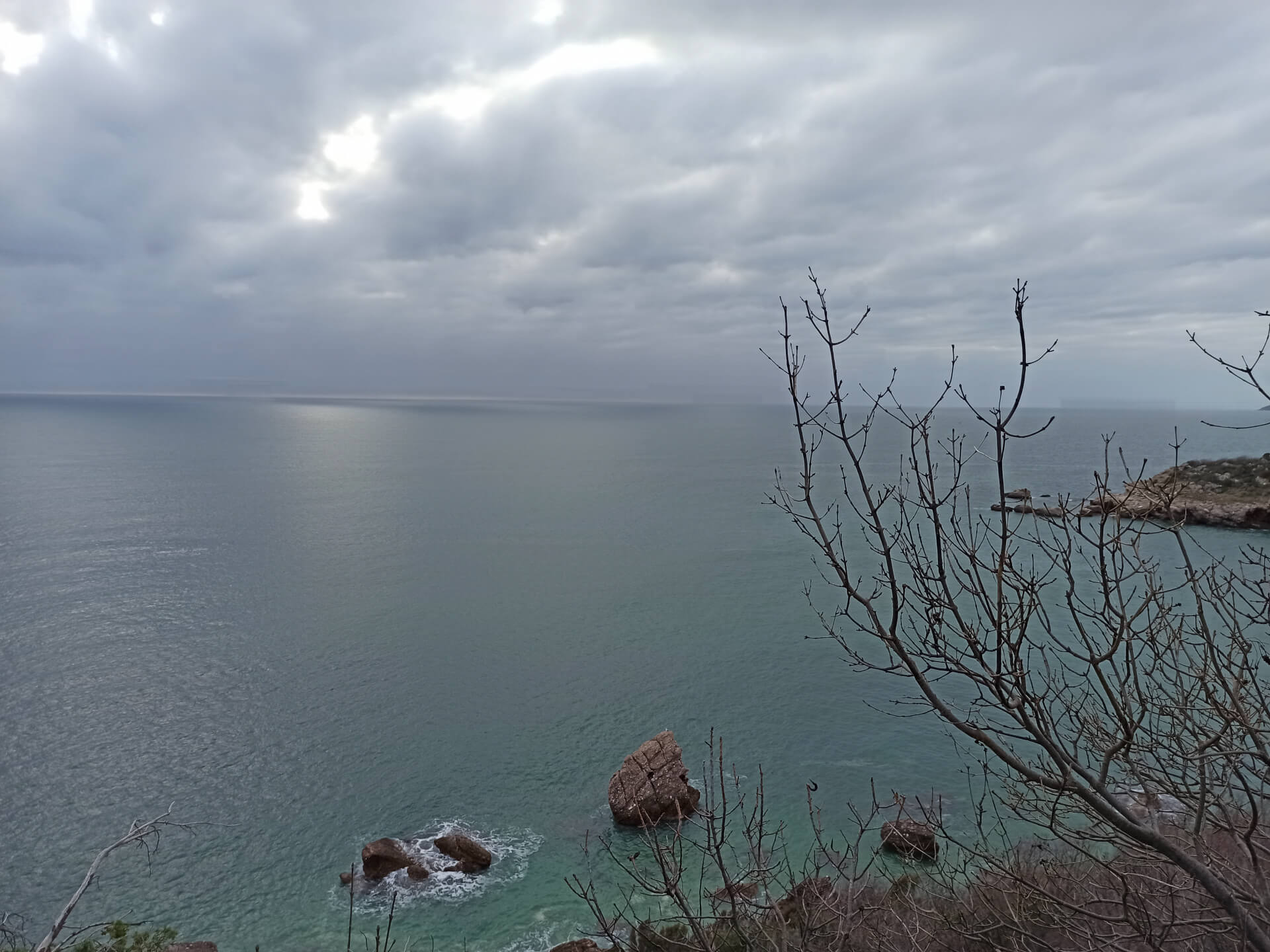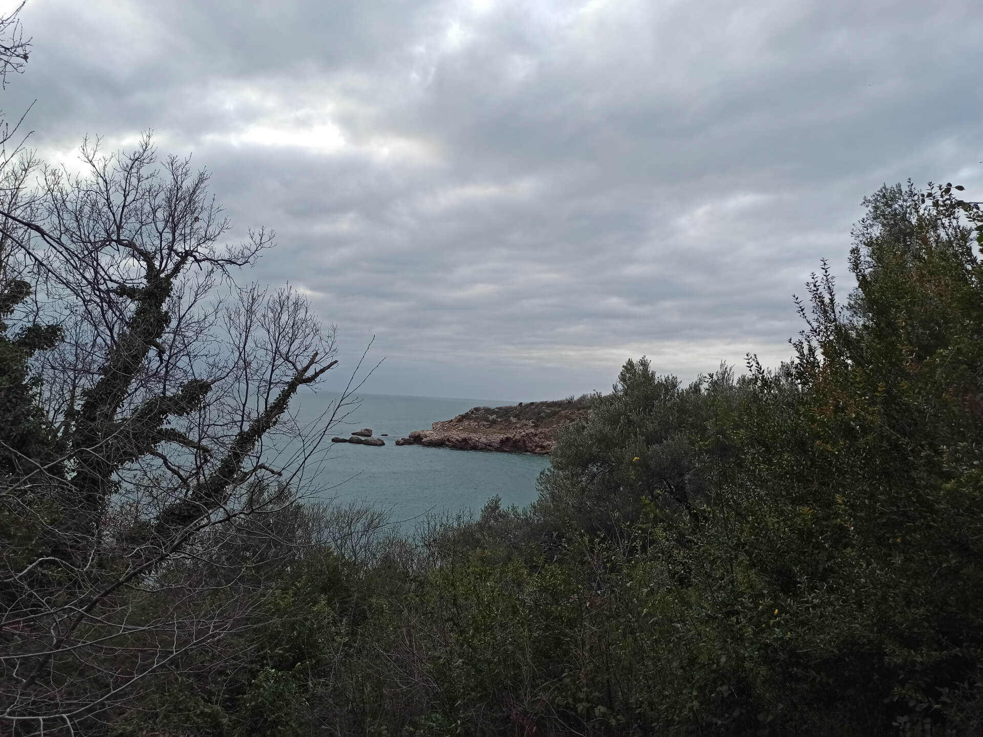 There is a restaurant and cafe that work in a high season. The beach has cascading entrance and own parking. You can see the beach from the hill and enjoy the view to the surrounding olive grove. At the season you can rent umbrellas and sunbeds as well as take your own sunbed with you.