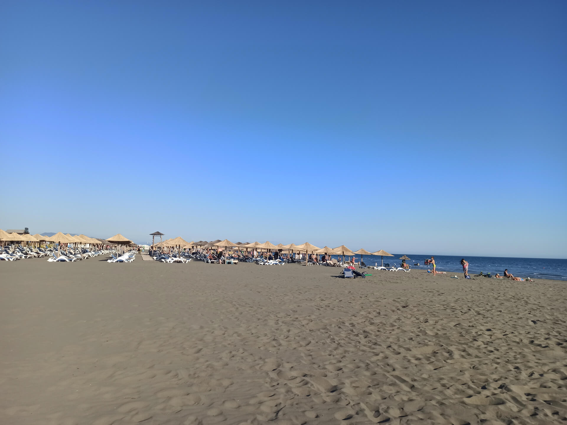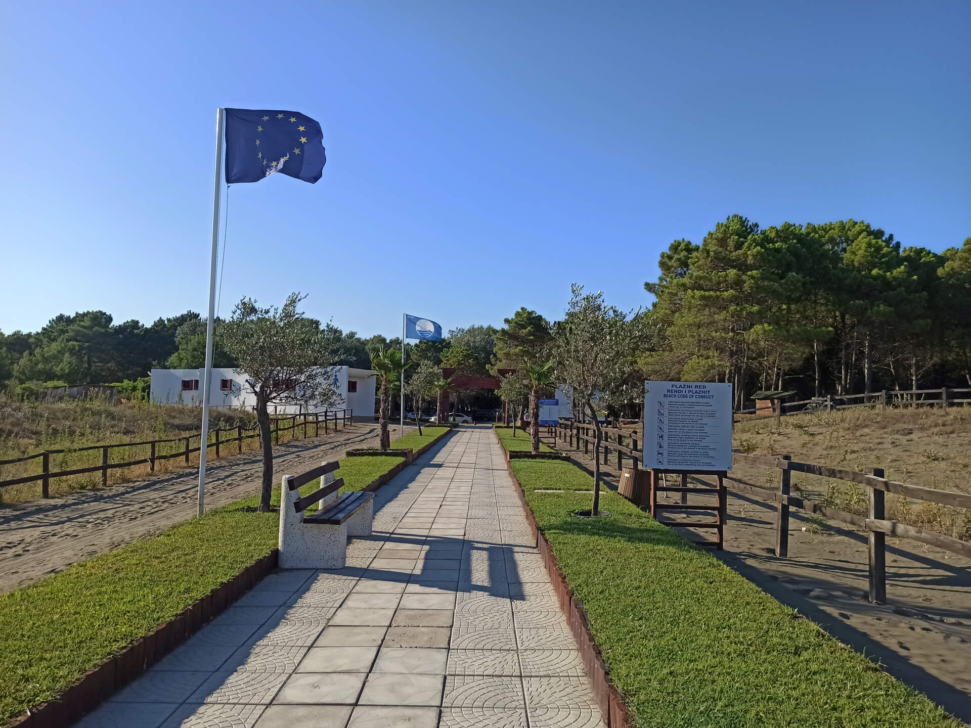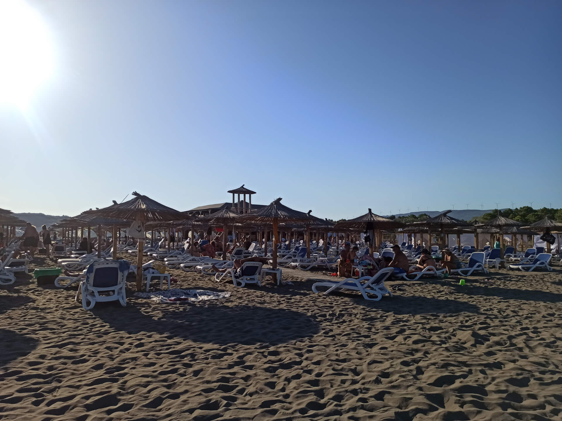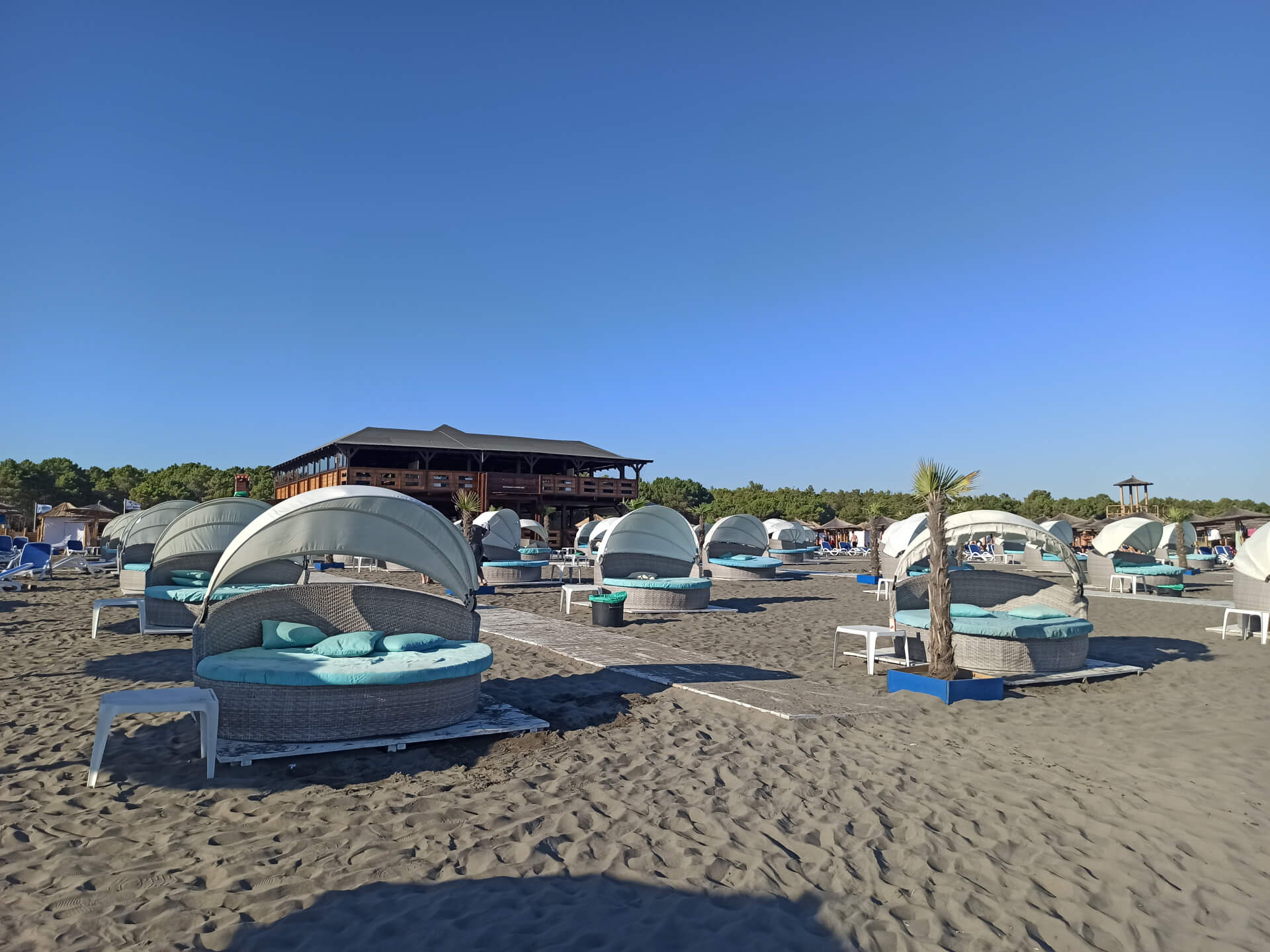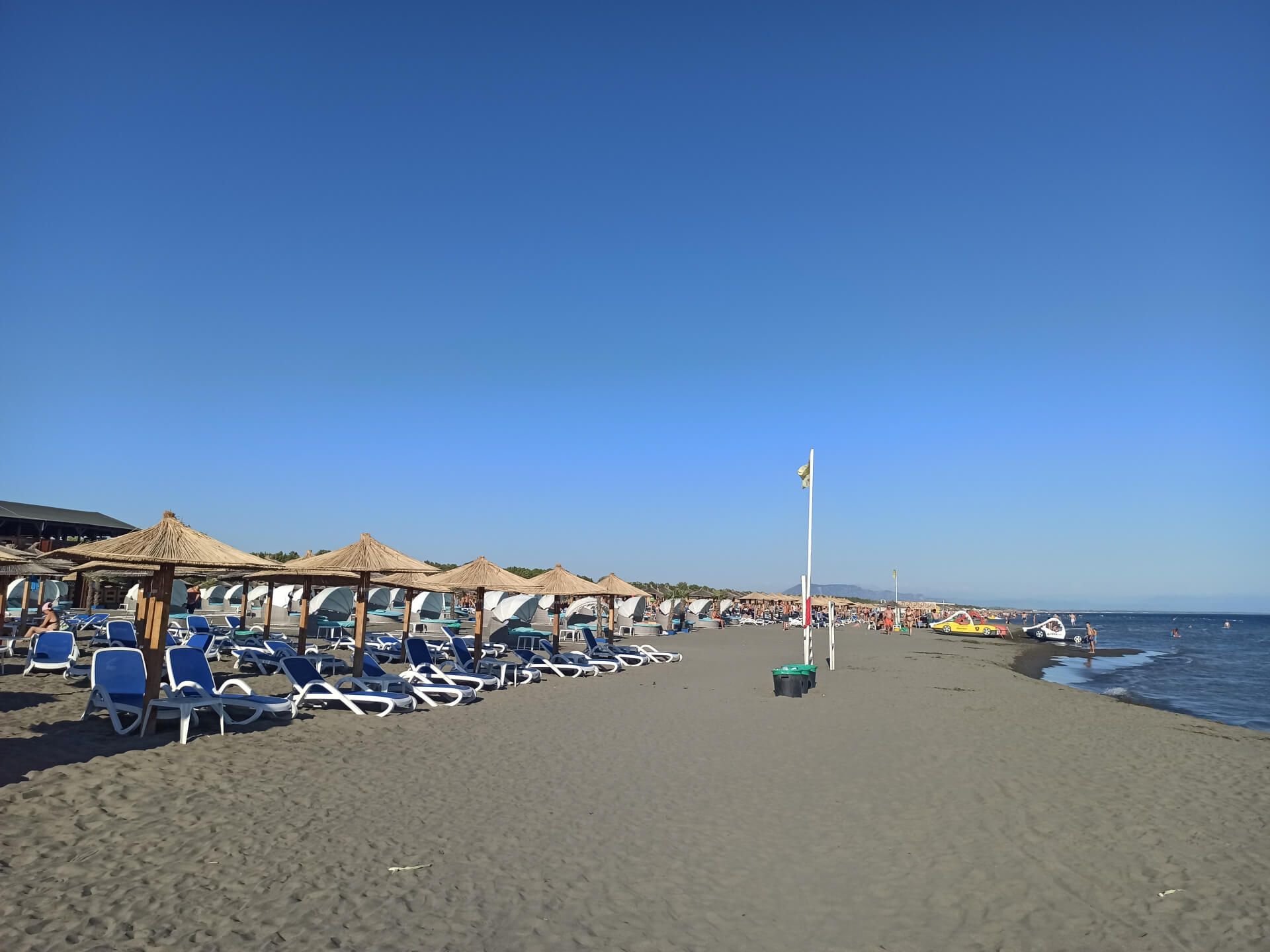 Blue Flag. This award is a sign of a great clean beach with great services. The beach has beautiful sunbeds, loungers with umbrellas and VIP beds that you can rent. There is all the needed for a great rest - showers, toilets, changing rooms. There is a lot of space for beach volley and other games on the sand, there is great playground for kids. The beach is decorated with beautiful flowers along the trails to the beach from the parking that they offer for free. Beach bar a lot of tasty dishes and drinks that you can order while chilling at the beach.