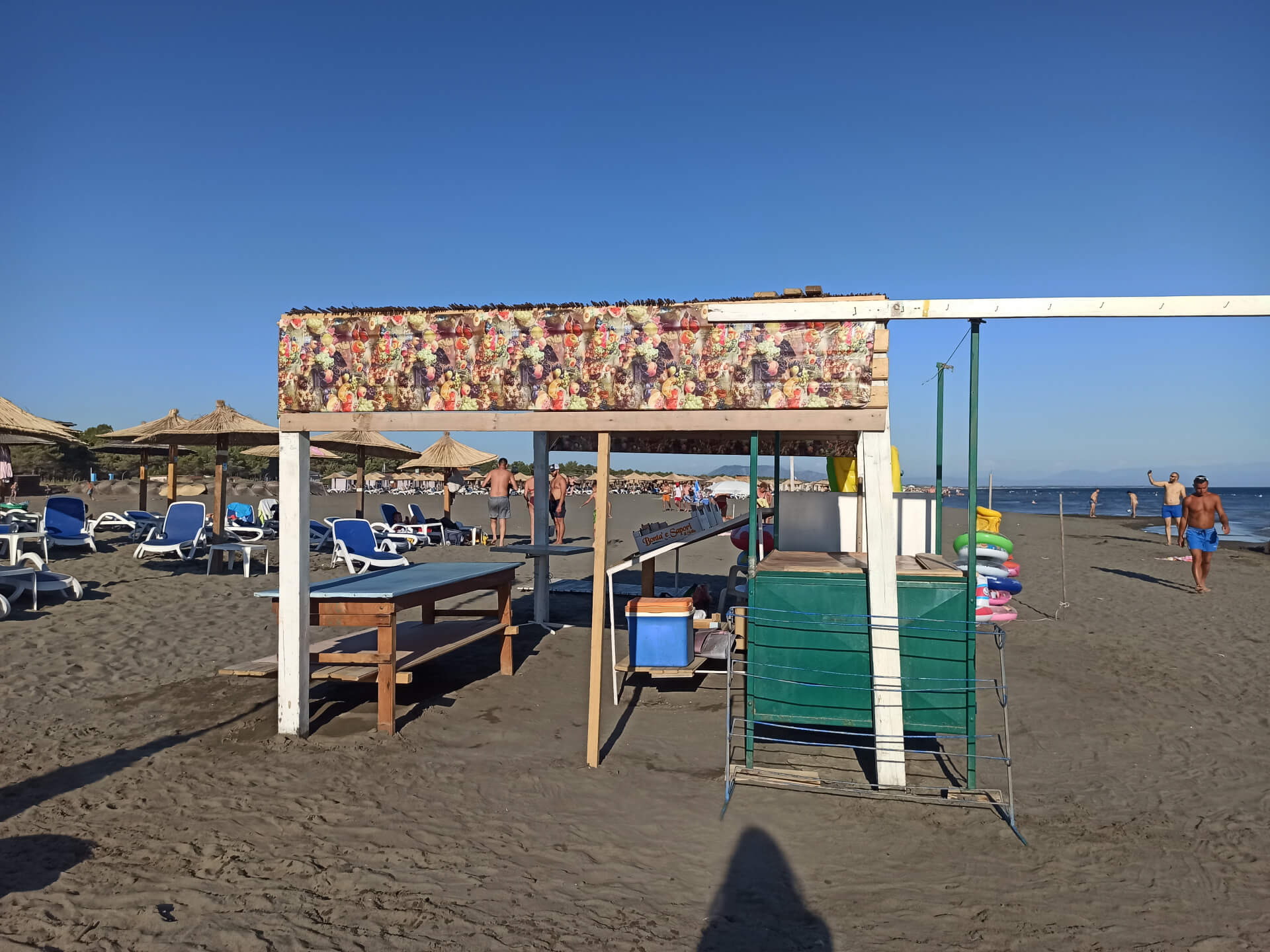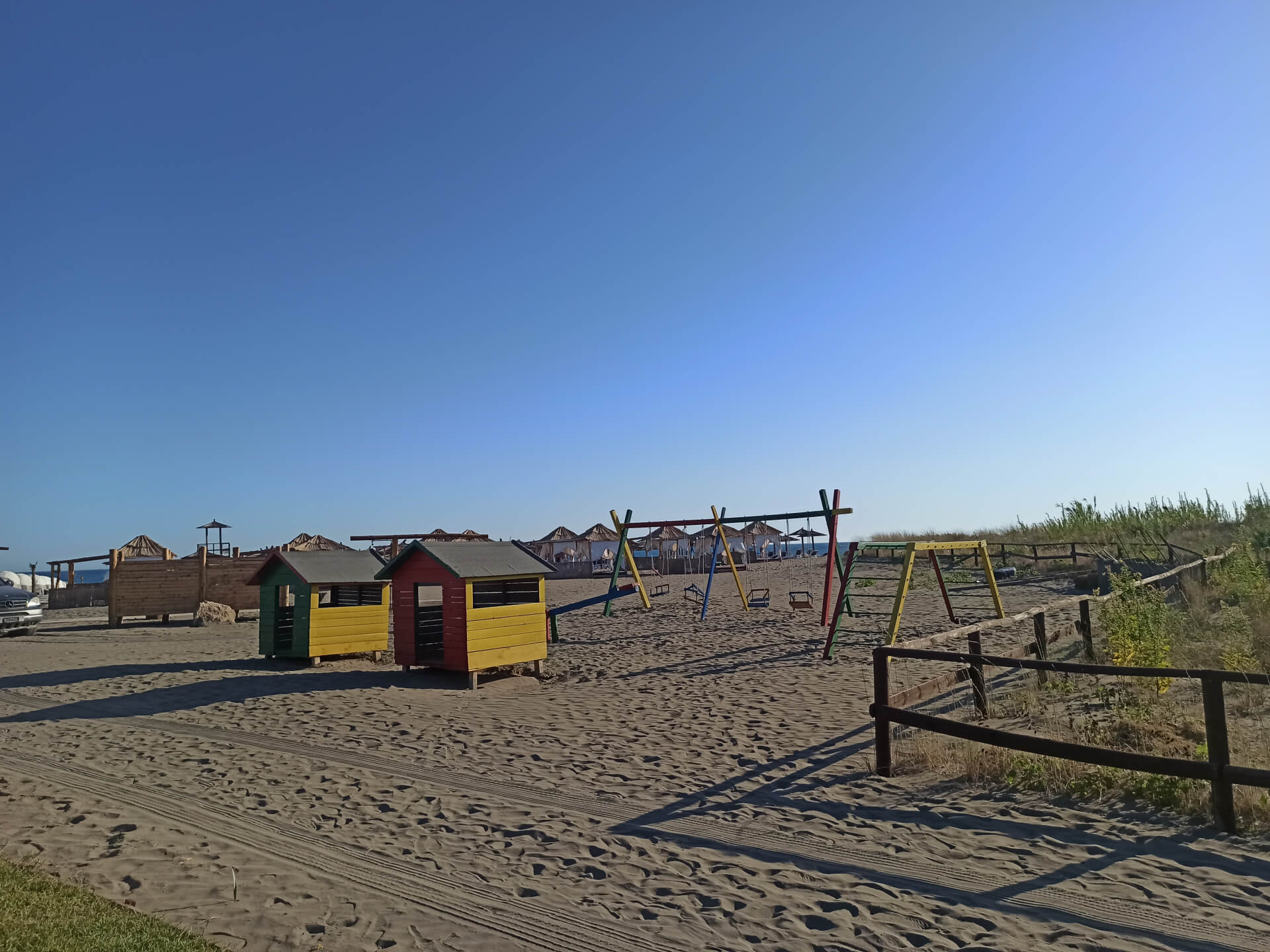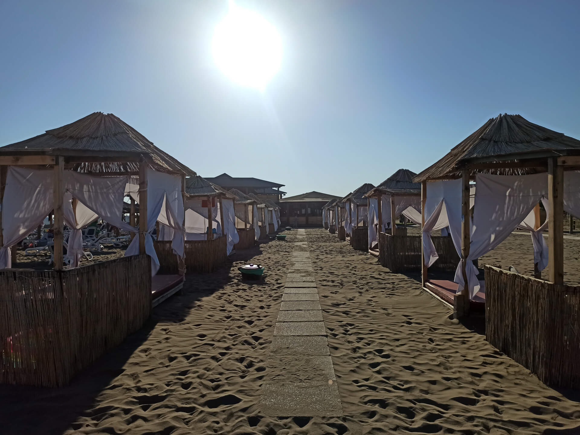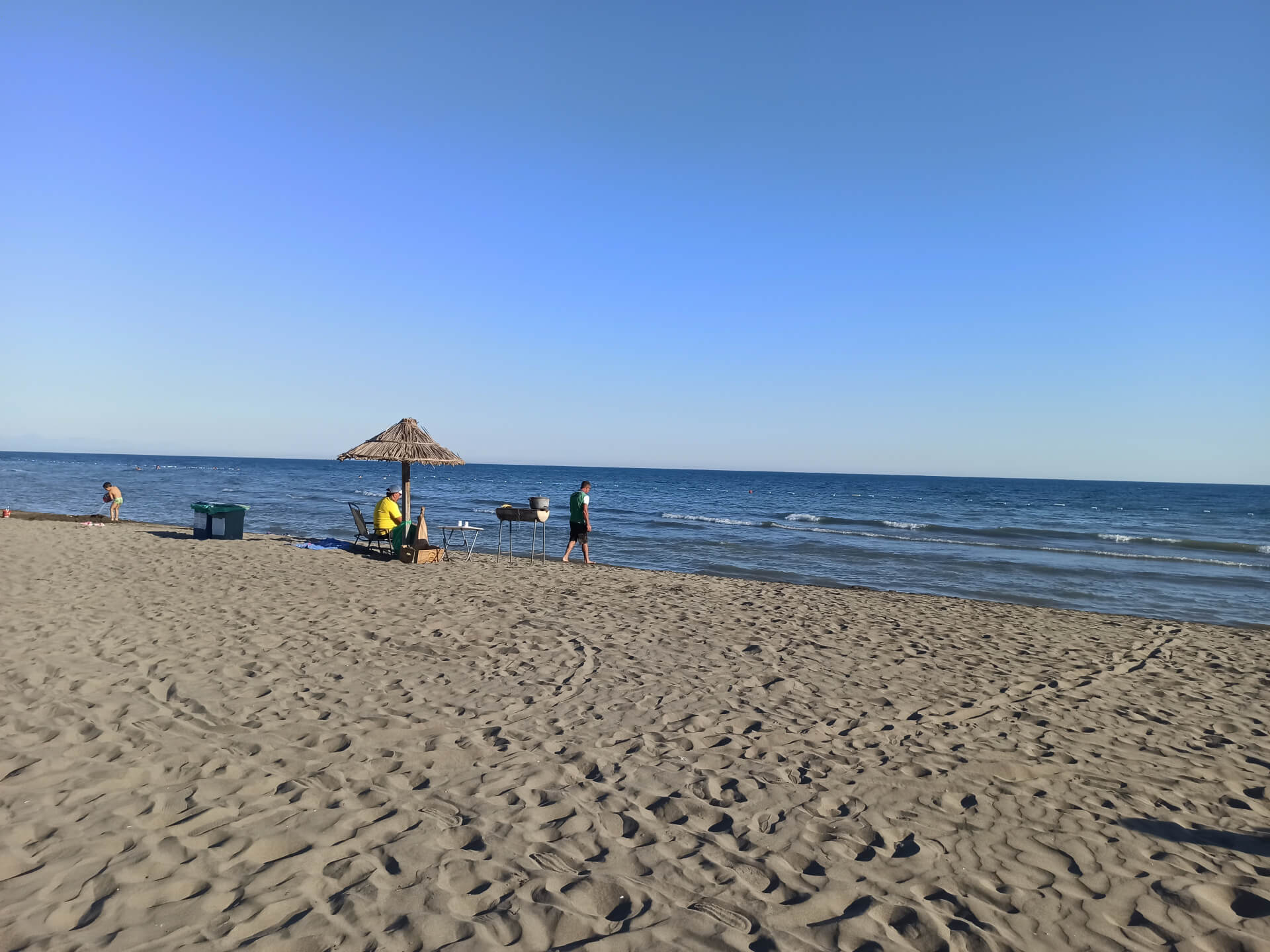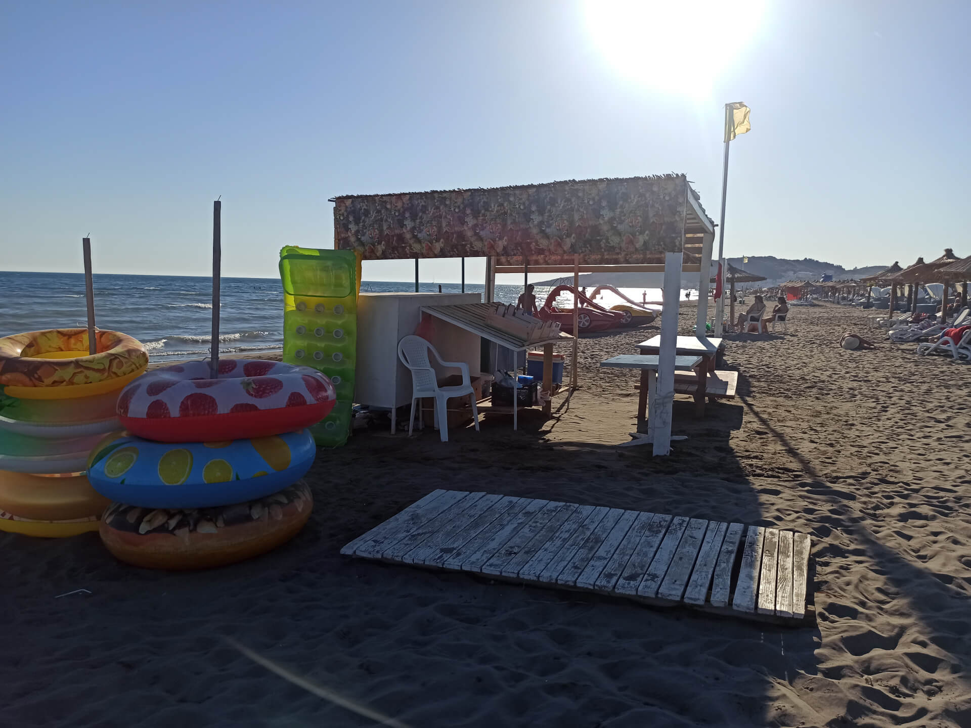 Blue Flag. This award is a sign of a great clean beach with great services. The beach has beautiful sunbeds, loungers with umbrellas and VIP beds that you can rent. There is all the needed for a great rest - showers, toilets, changing rooms. There is a lot of space for beach volley and other games on the sand, there is great playground for kids. The beach is decorated with beautiful flowers along the trails to the beach from the parking that they offer for free. Beach bar a lot of tasty dishes and drinks that you can order while chilling at the beach.