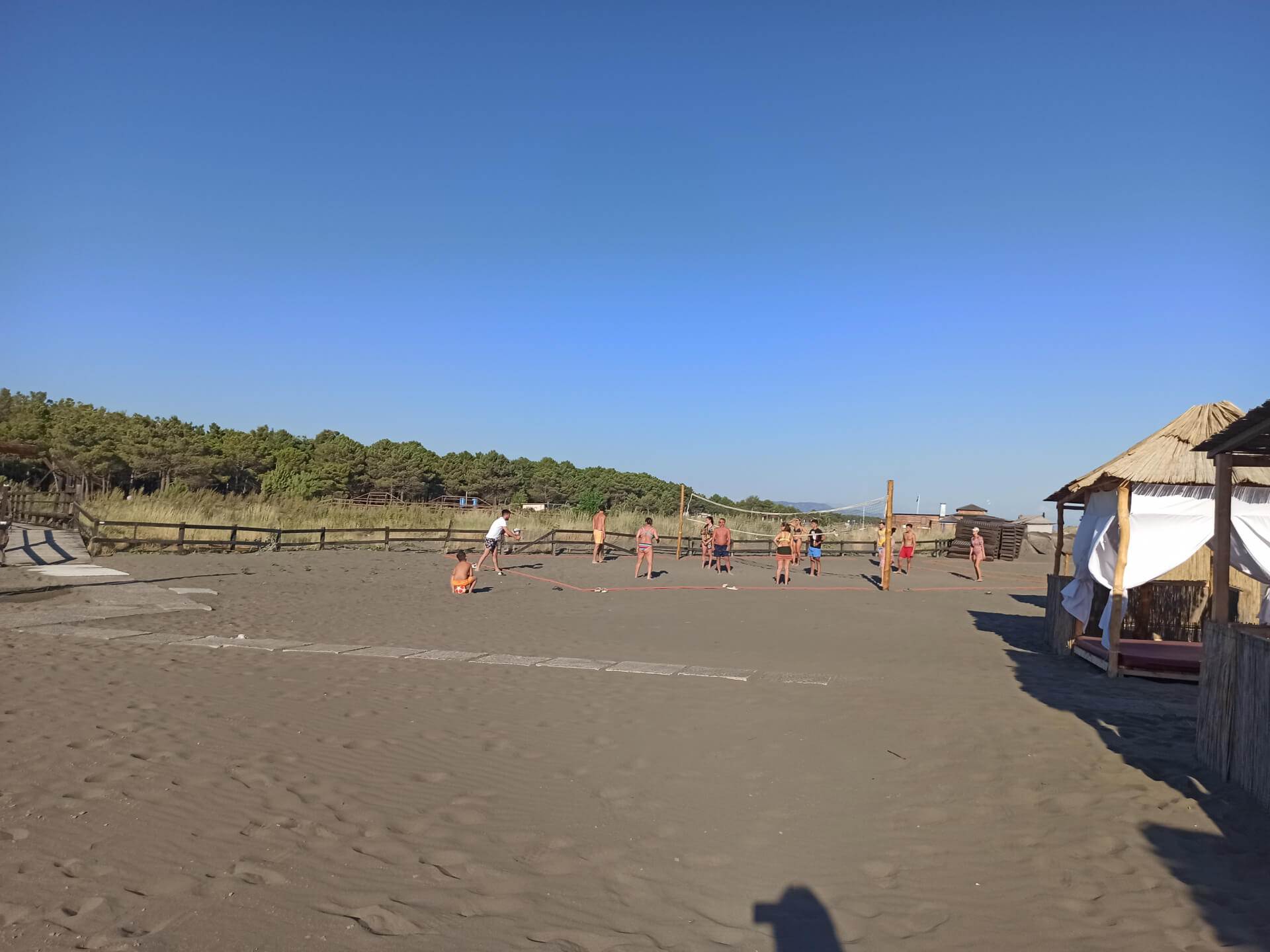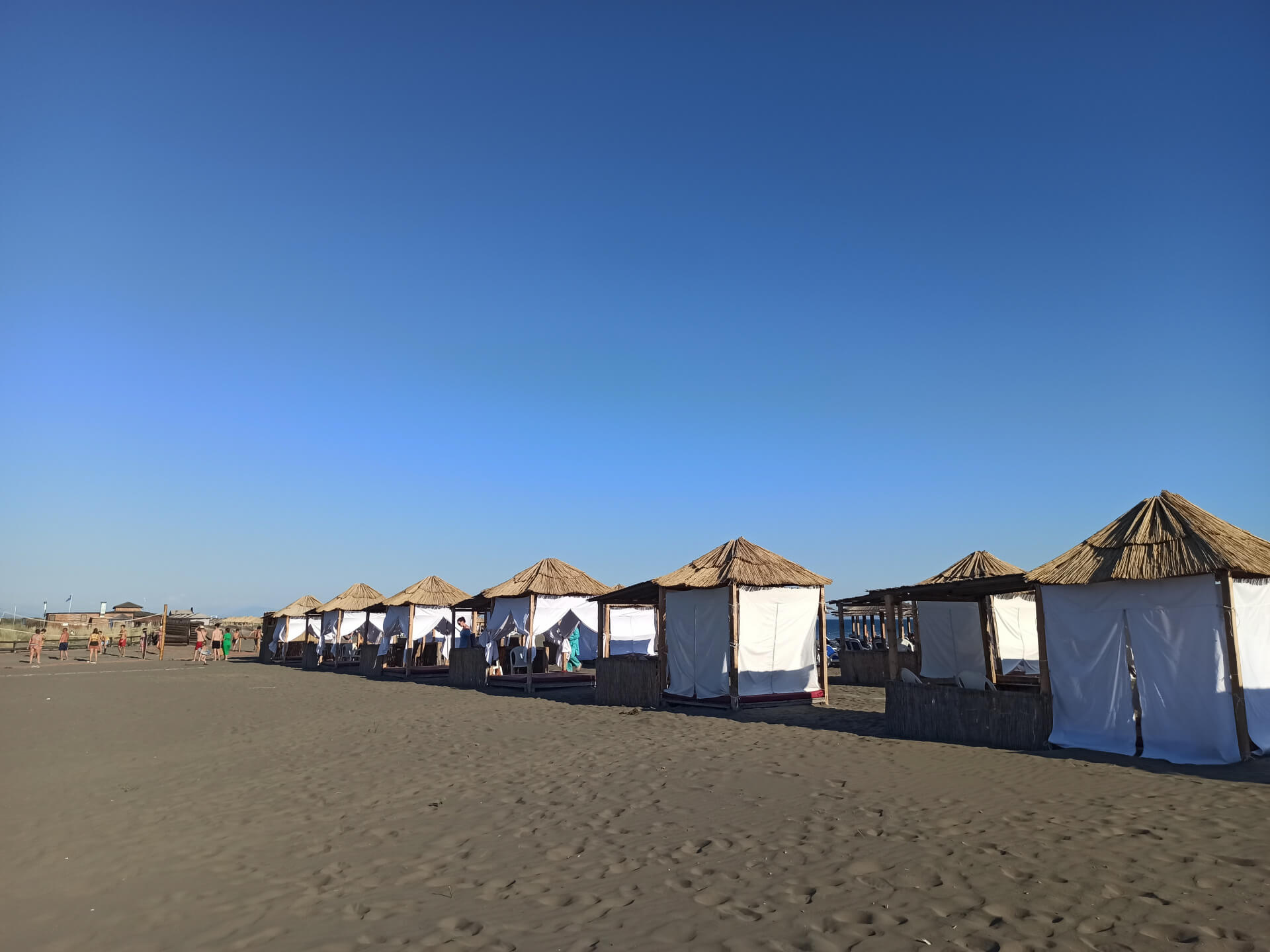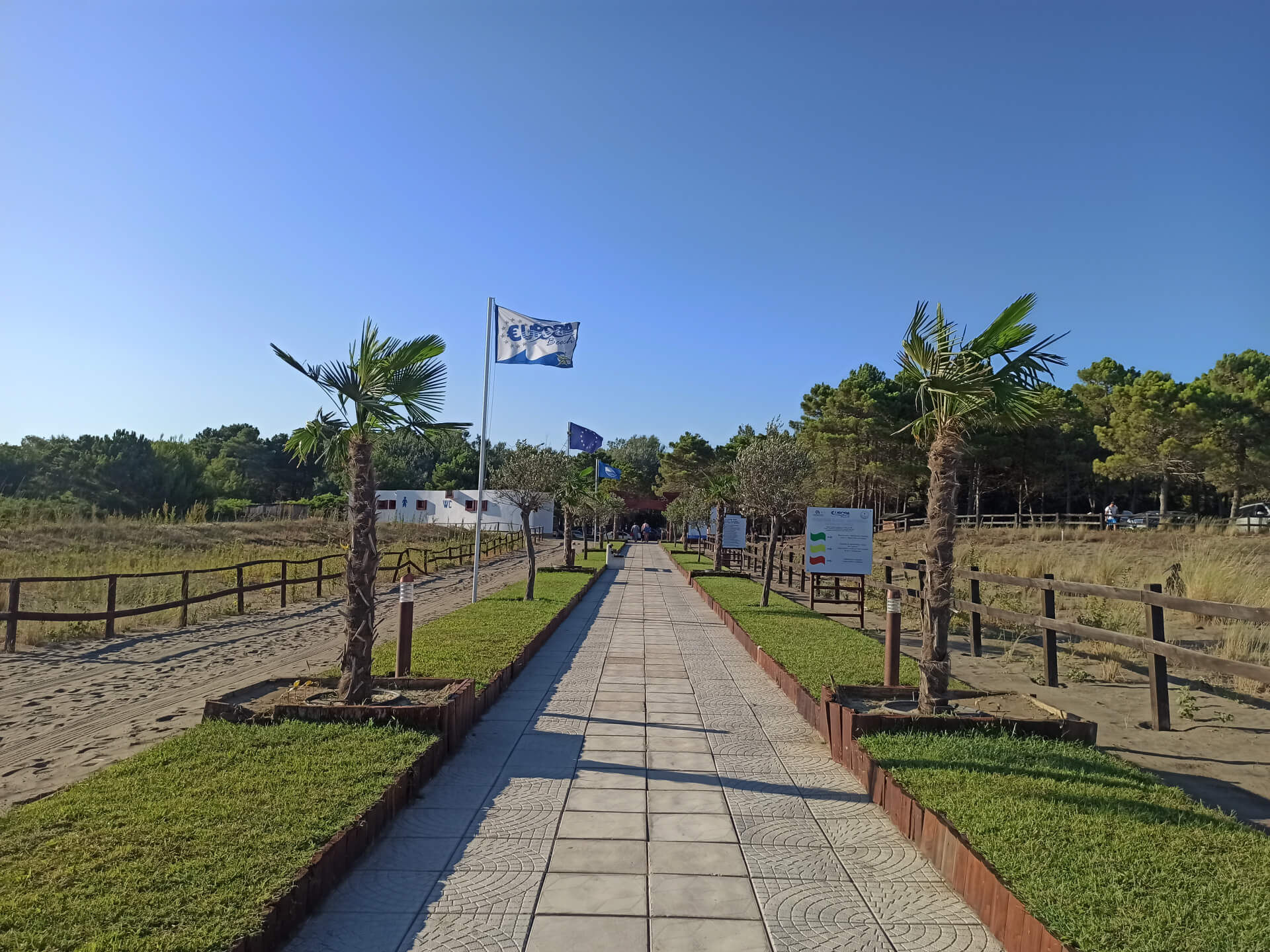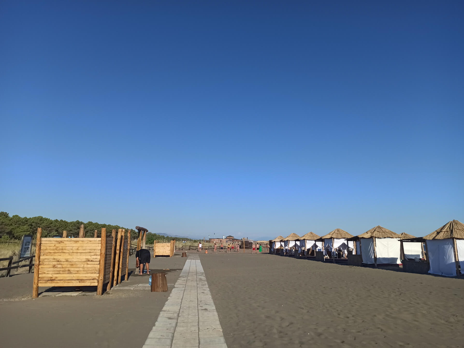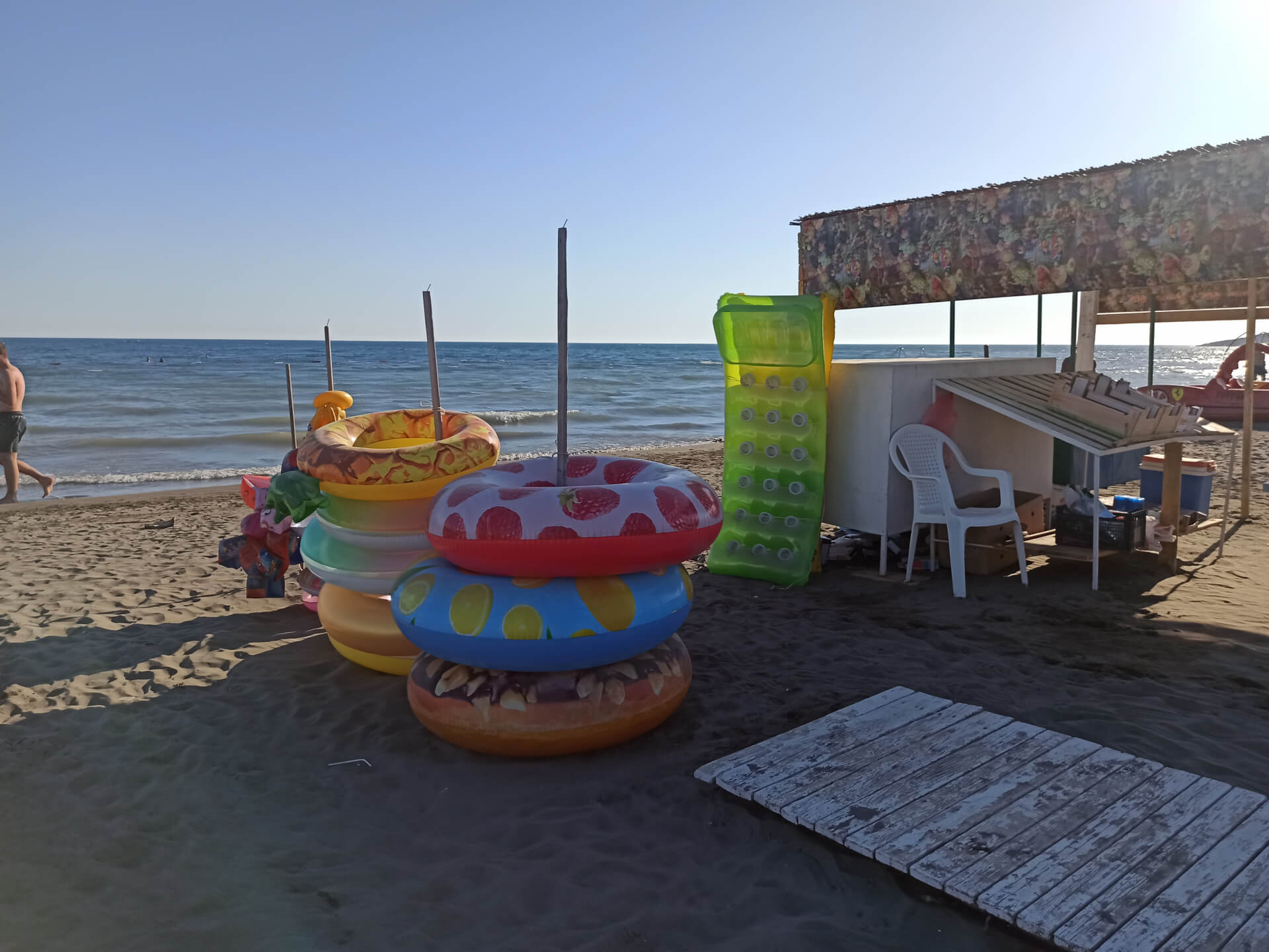 Blue Flag. This award is a sign of a great clean beach with great services. The beach has beautiful sunbeds, loungers with umbrellas and VIP beds that you can rent. There is all the needed for a great rest - showers, toilets, changing rooms. There is a lot of space for beach volley and other games on the sand, there is great playground for kids. The beach is decorated with beautiful flowers along the trails to the beach from the parking that they offer for free. Beach bar a lot of tasty dishes and drinks that you can order while chilling at the beach.