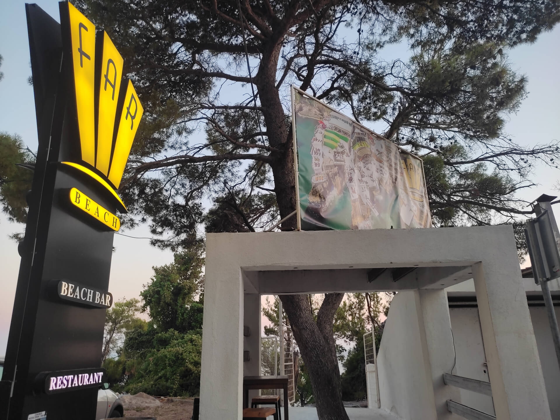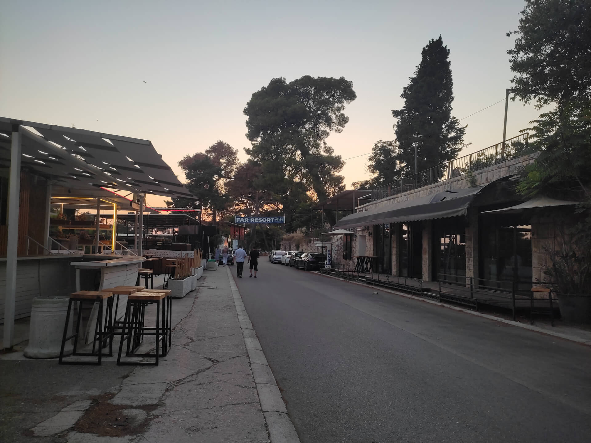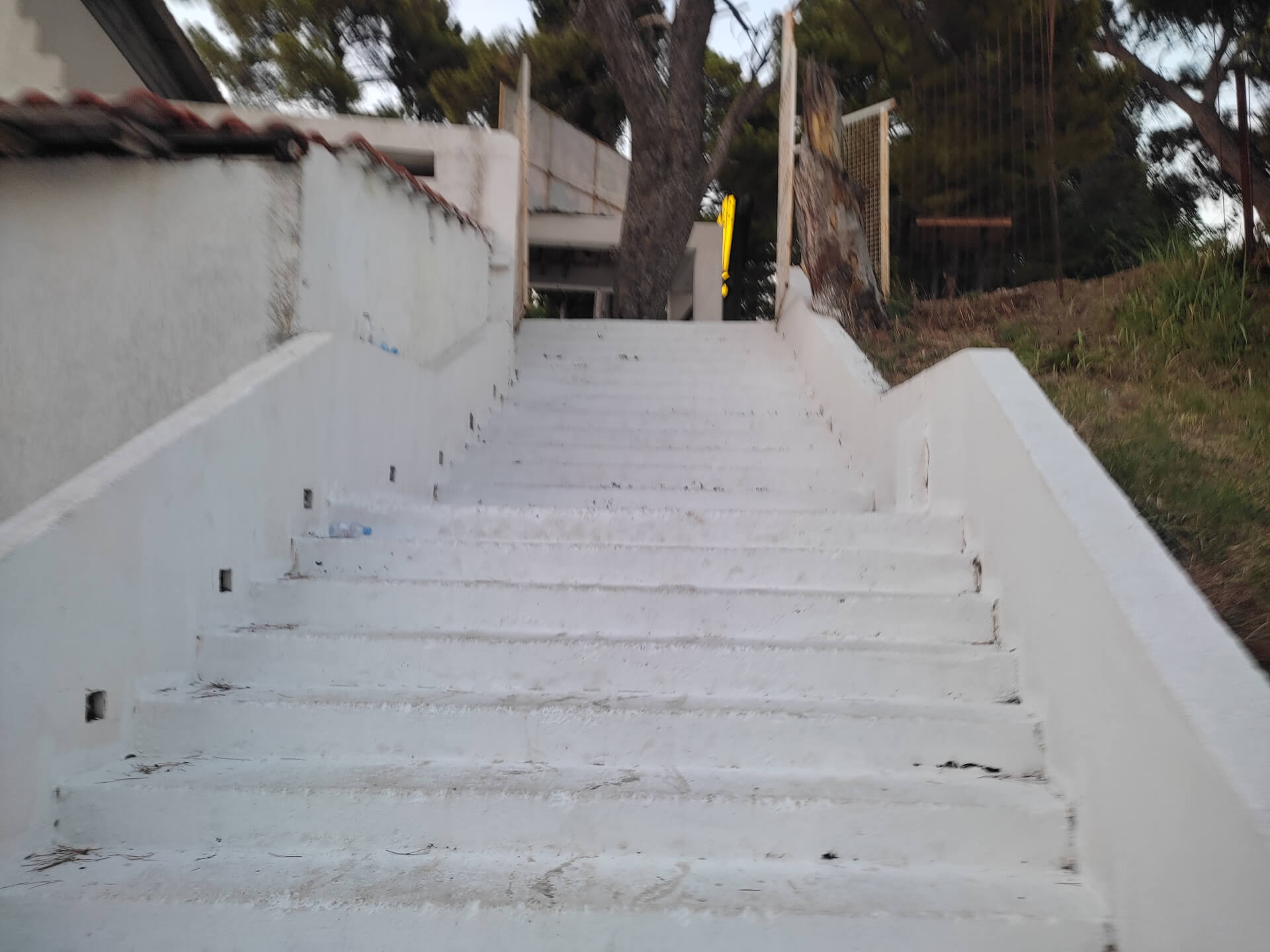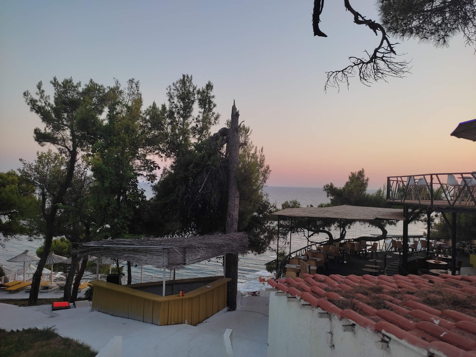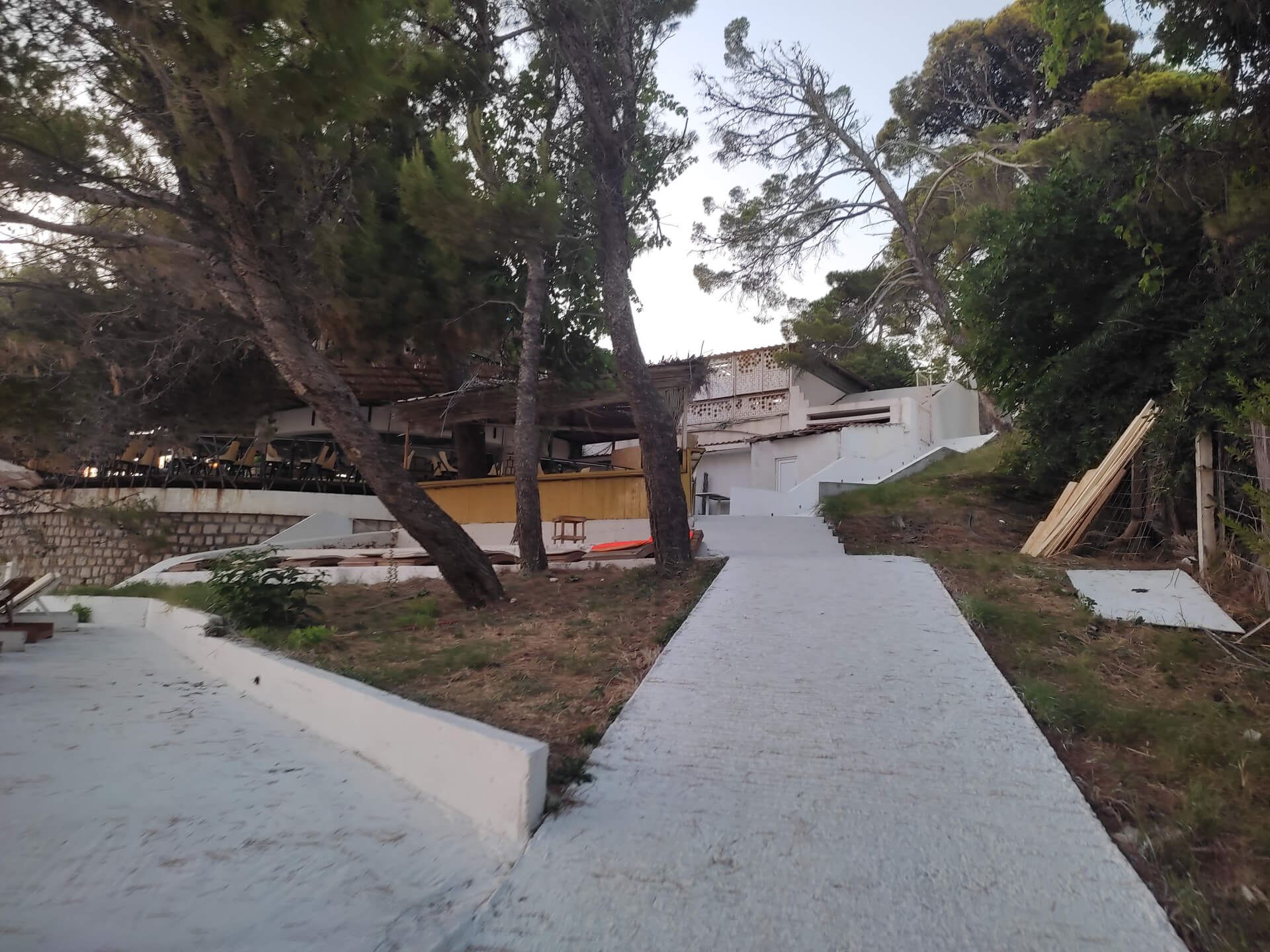 Ulcinj coast. The beach has a wonderful area on different levels. Great bar and restaurant cover its services providing with beach furniture - cozy loungers and romantic sunbeds by the sea. The entrance to the sea is rocky from the stairs. But the sea is clean and transparent, the coastline is beautiful.