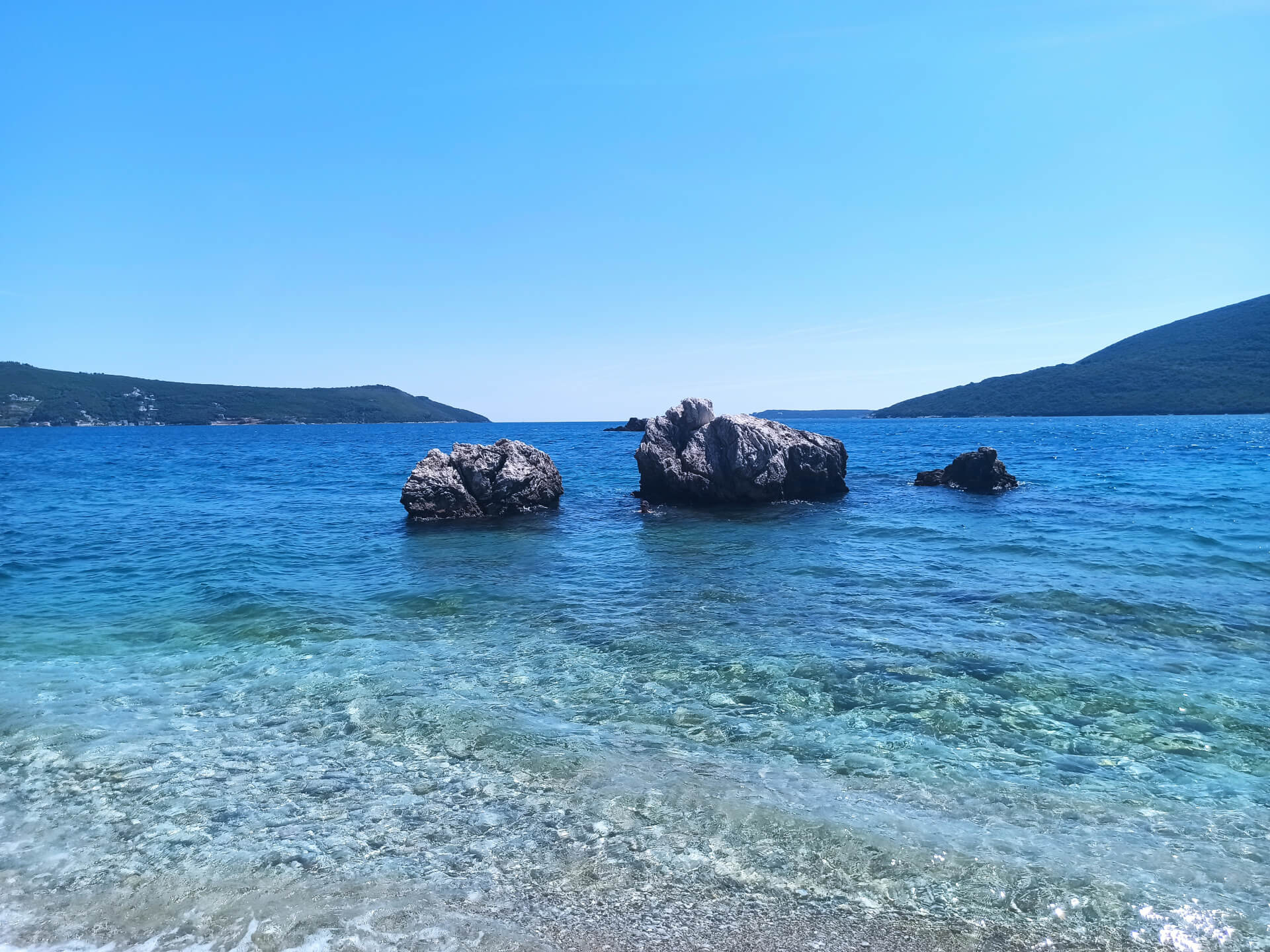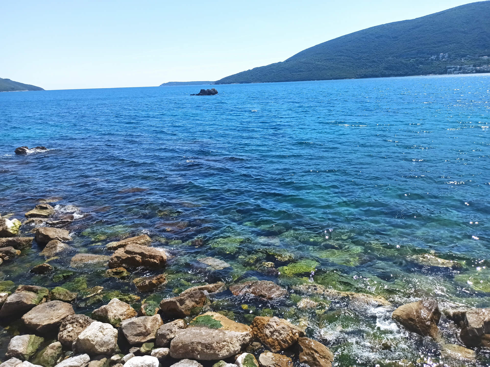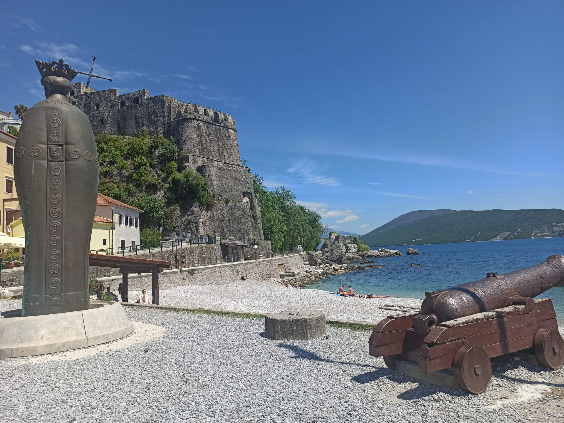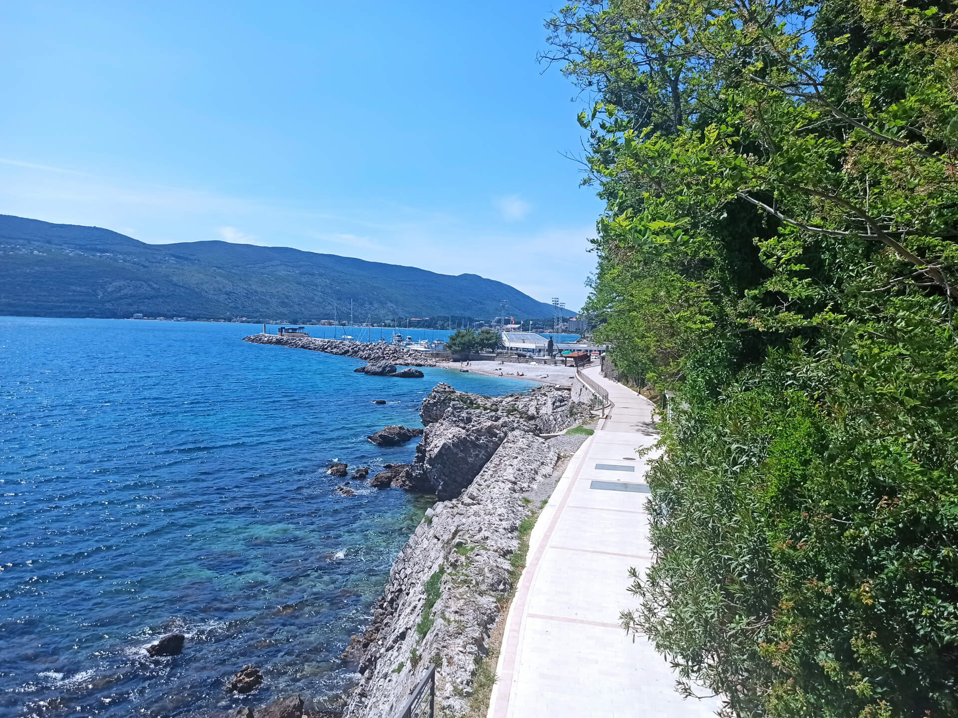 Herceg Novi Beach is a city main beach. It's a very small narrow stony beach located between main attractions of the city - old town's fortress and the king's statue. The location of the beach is perfect - the beach is located in the center of the city, near the port and main promenade. The beach is separated from the port with the long pier that ends with the lighthouse, that's why the water is very clear and clean.