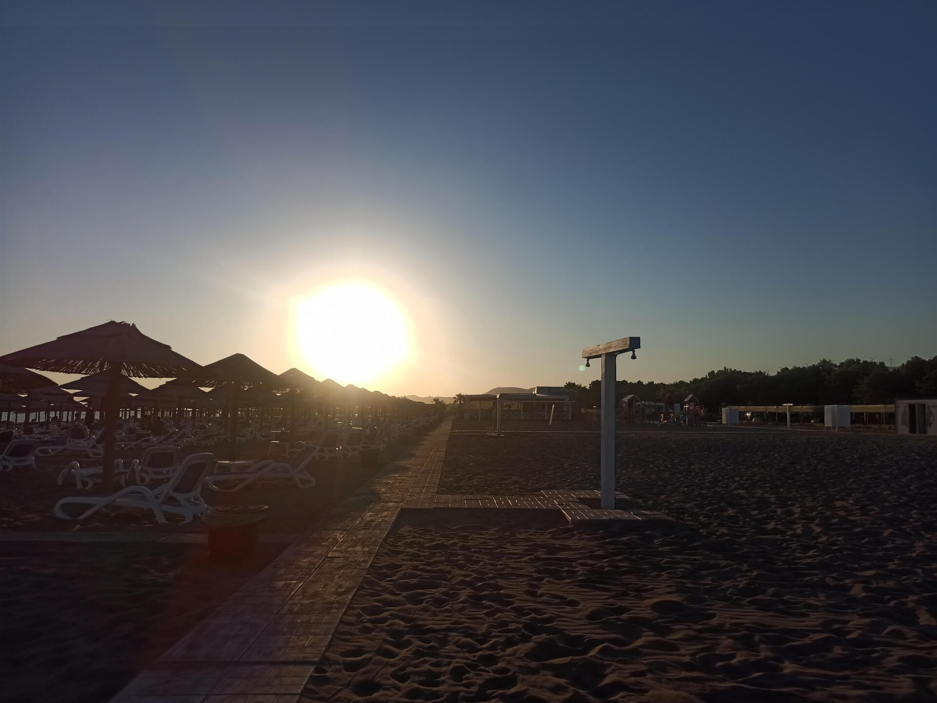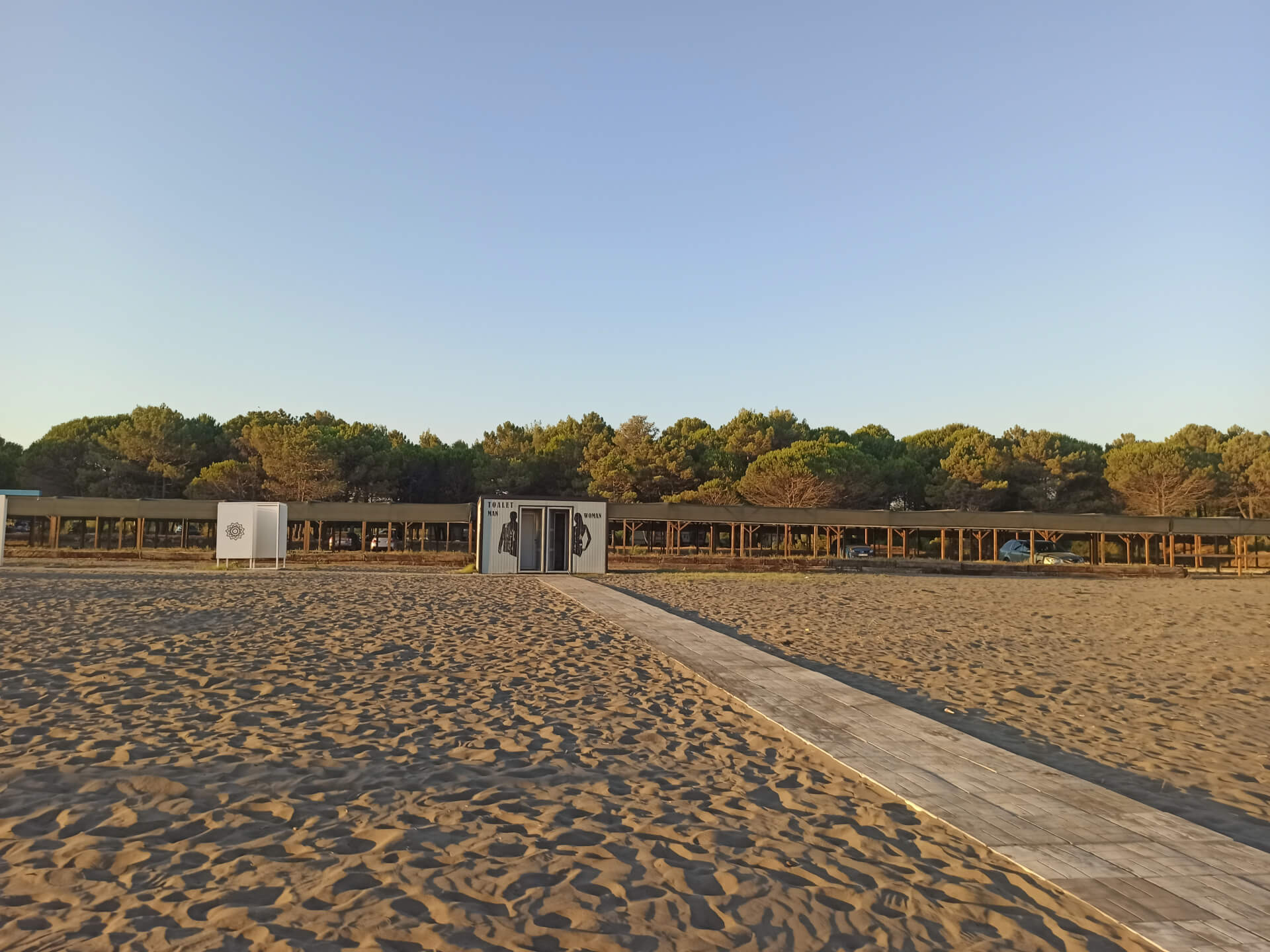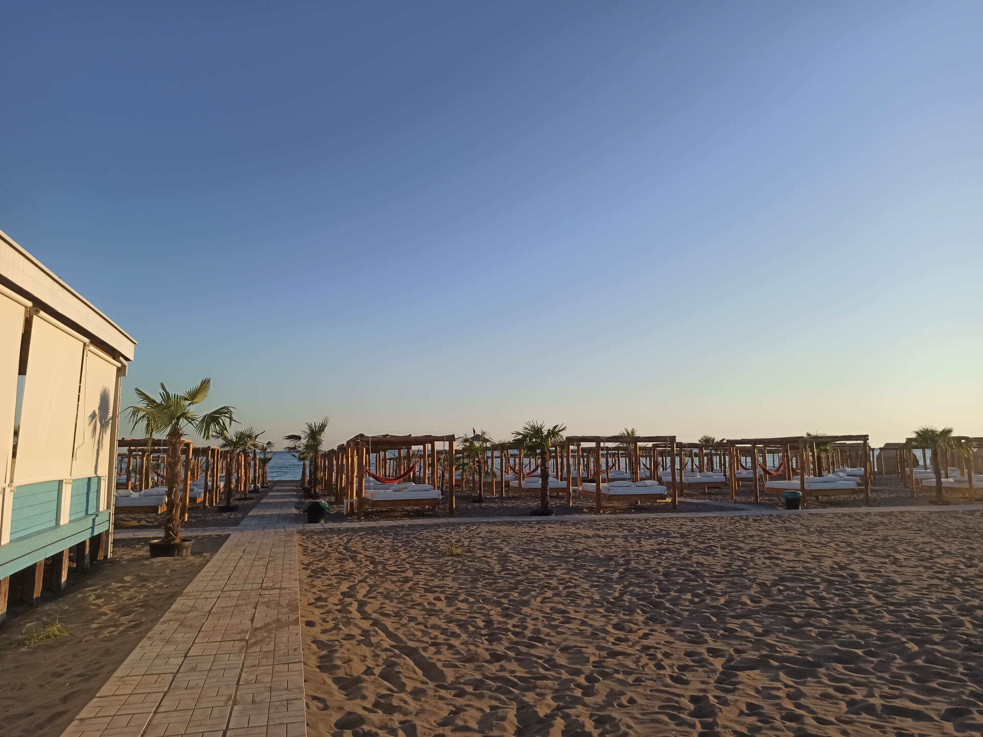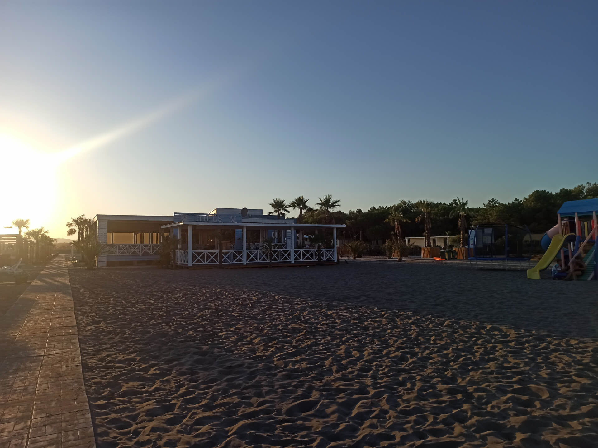 As other beaches along the long beach, there is big comfortable free parking and all the needed facilities - changing rooms, showers, sunbeds, loungers, swings, umbrellas. For families with kids there is a nice playground. Beach bar offers numerous drinks and dishes. There beach is clean and cozy. The territory is well-groomed.