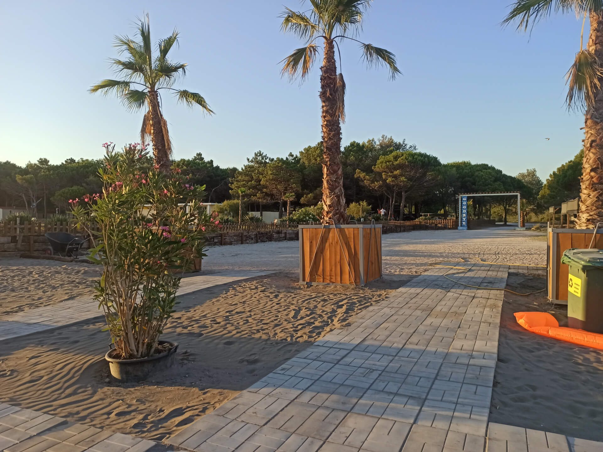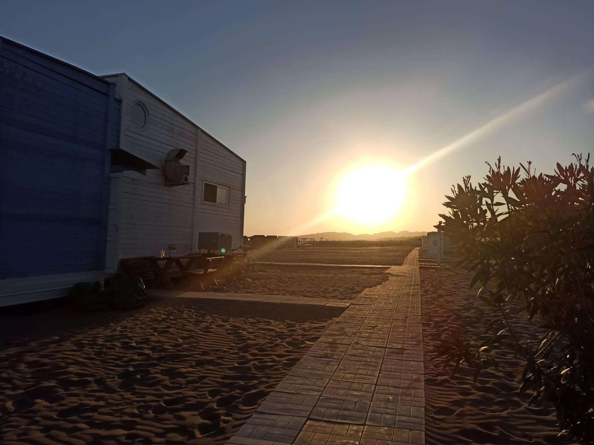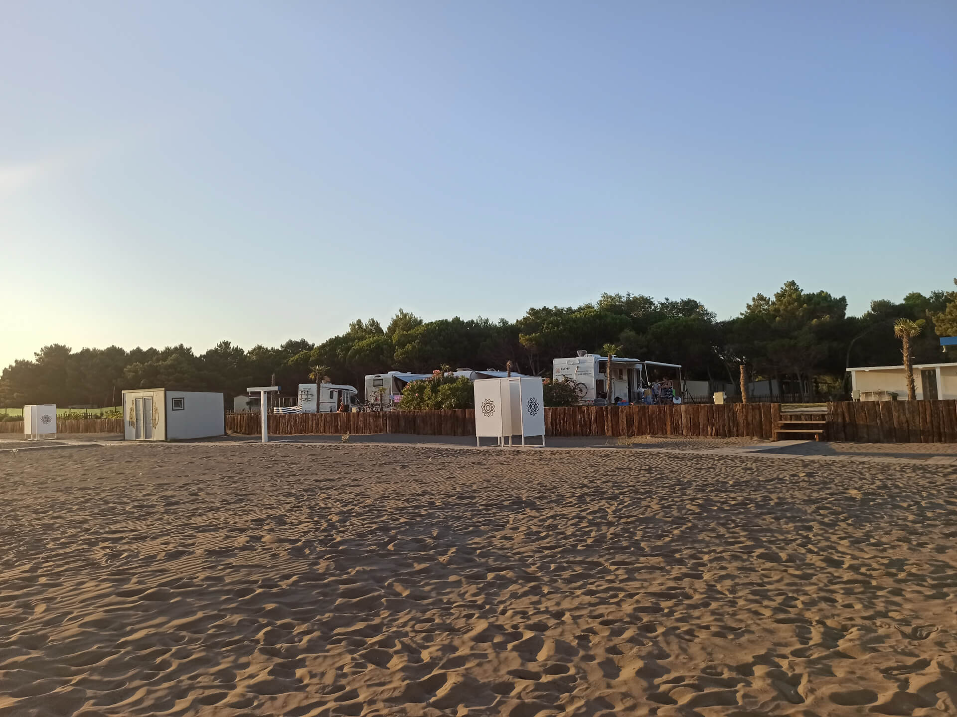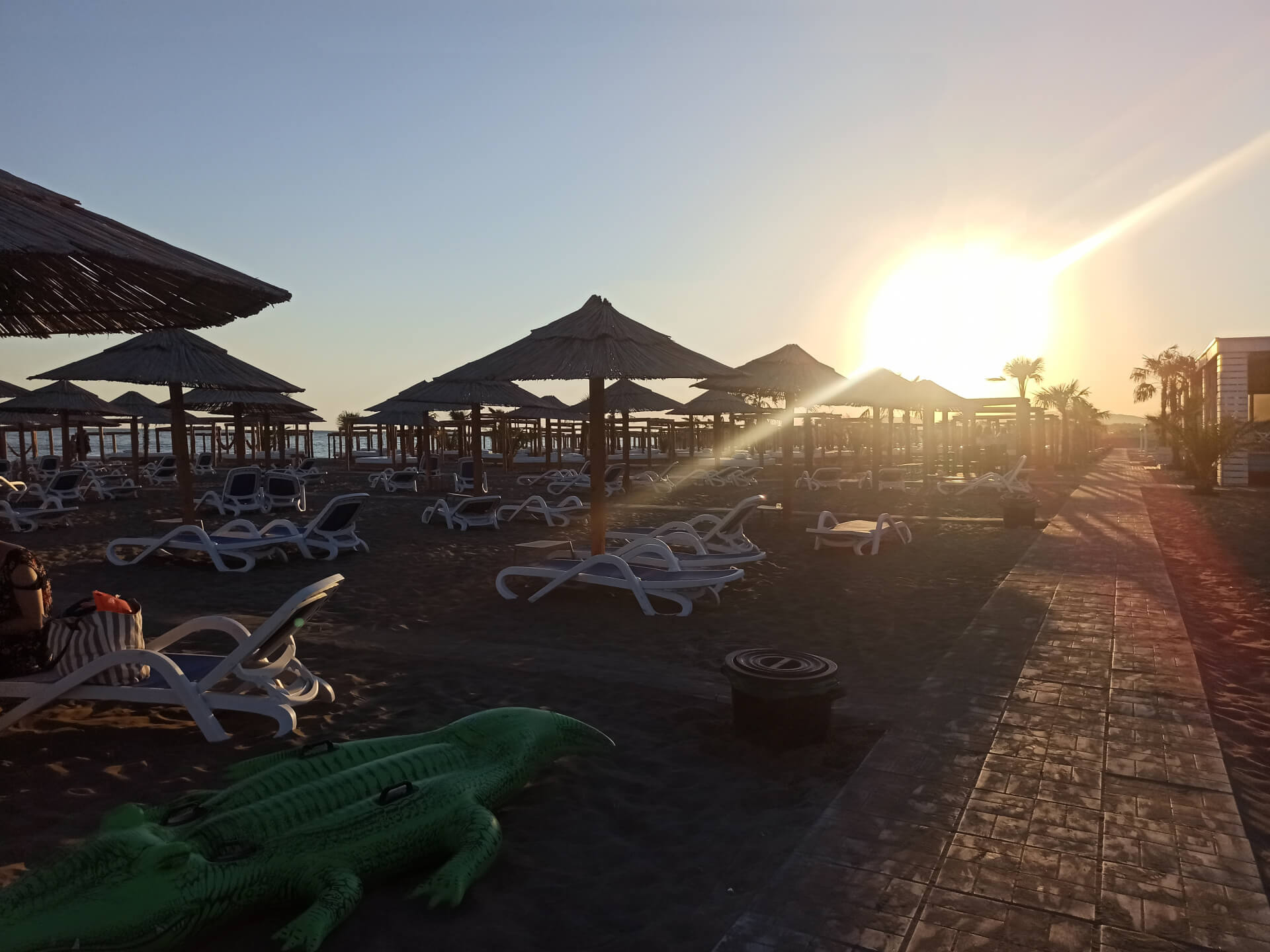 As other beaches along the long beach, there is big comfortable free parking and all the needed facilities - changing rooms, showers, sunbeds, loungers, swings, umbrellas. For families with kids there is a nice playground. Beach bar offers numerous drinks and dishes. There beach is clean and cozy. The territory is well-groomed.