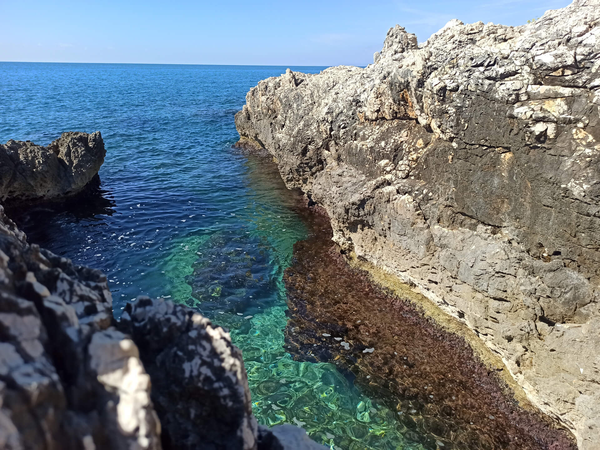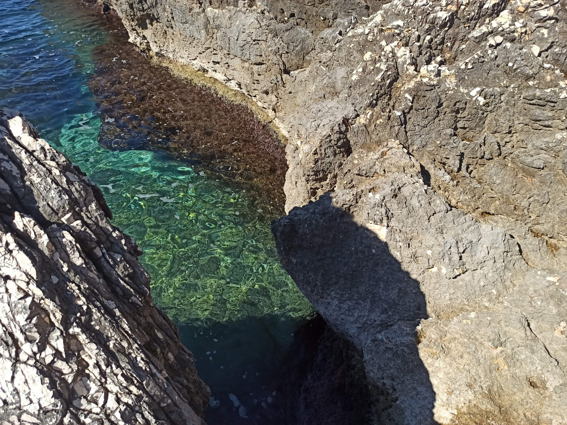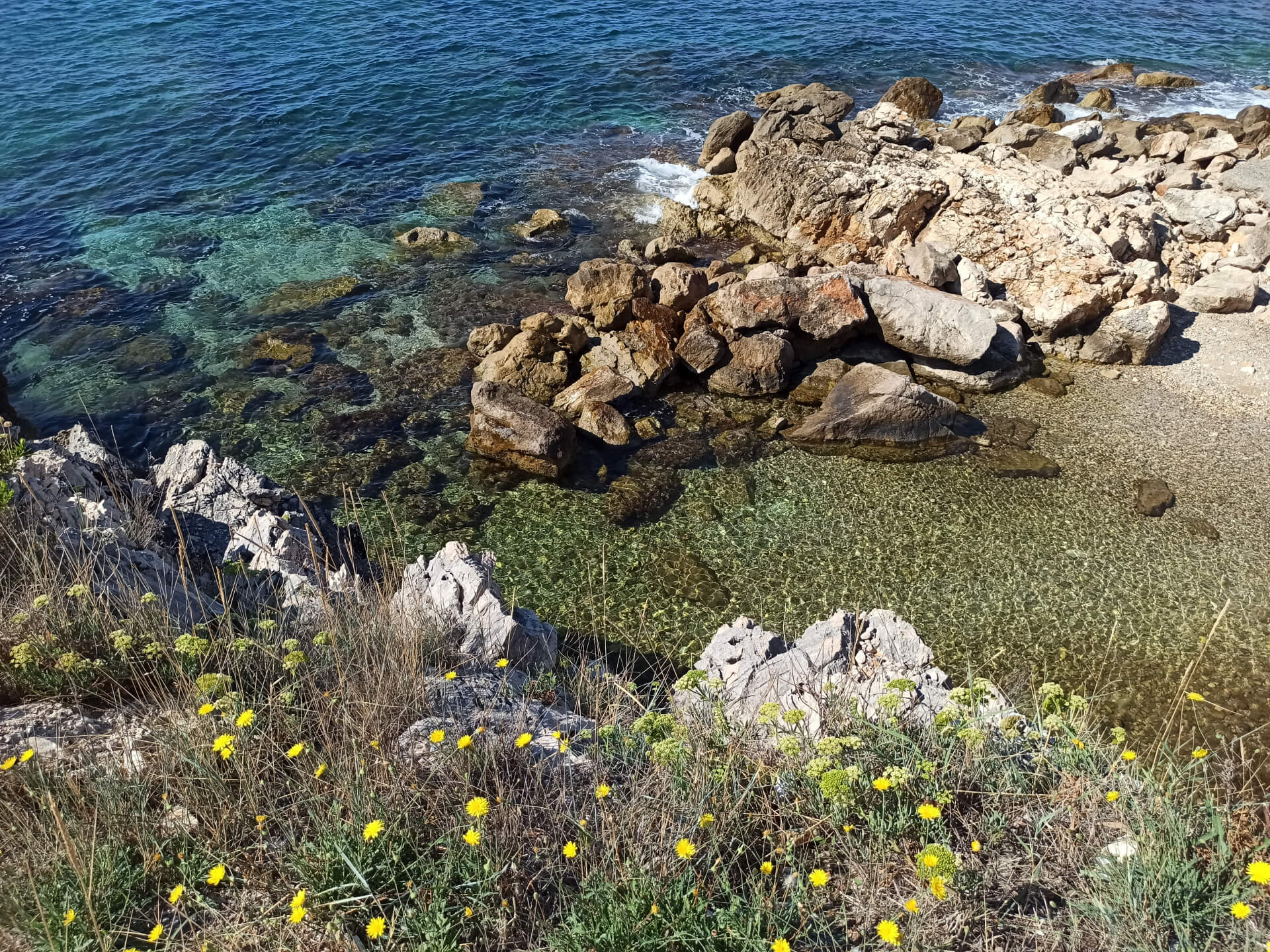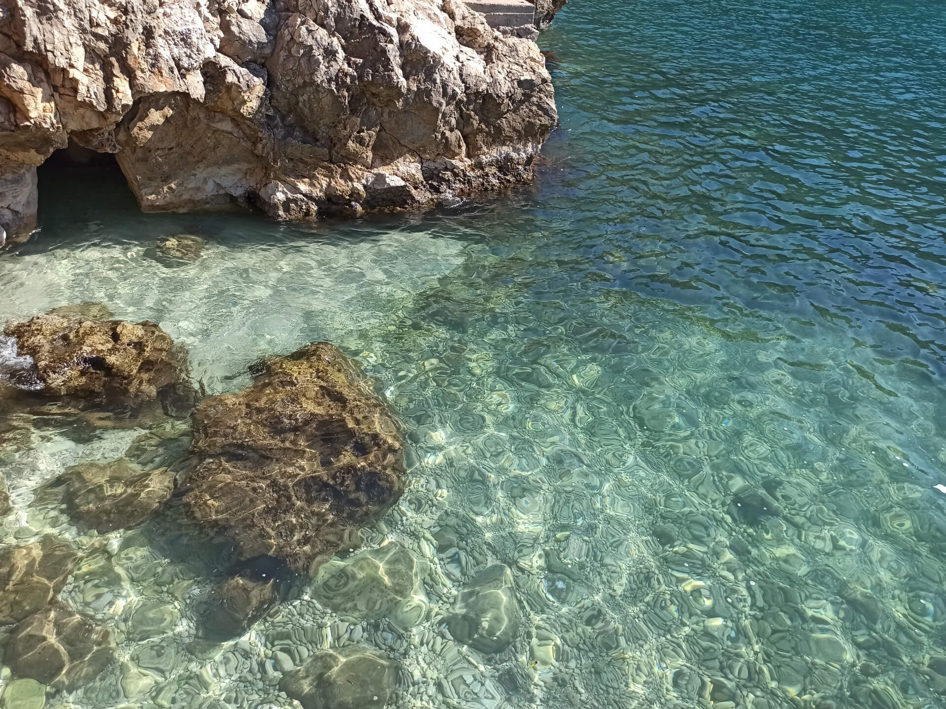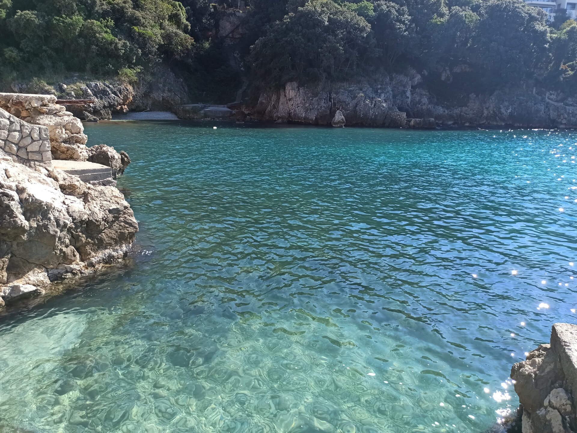 Hladna Uvala is a stony territory that is pretty specific and doesn't fit well for families with little kids, unless parents consciously train kids and choose this location. The area is really very picturesque - there are a tiny islets in front of the bay. The bay itself has beautiful stony hills so the entrance to the sea is from the stairs. It's better to swim wearing swimming shoes. The water is perfectly clear, transparent, turquoise and blue - the color changes across the sea. It looks really amazing!