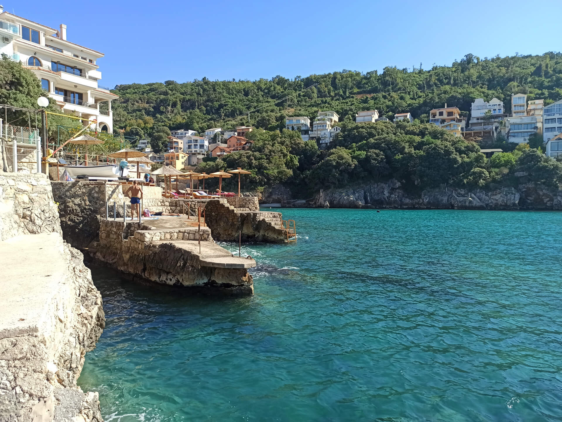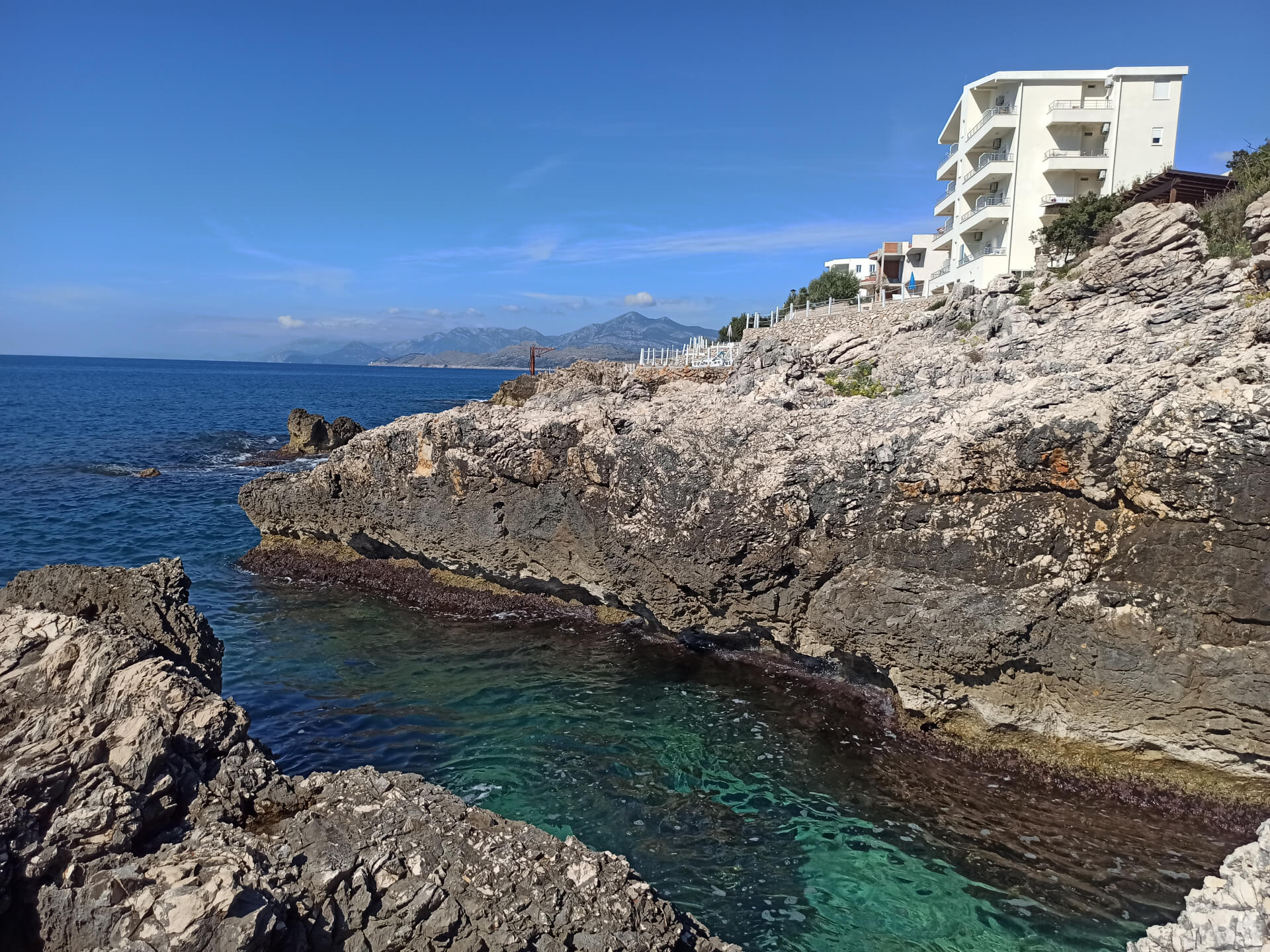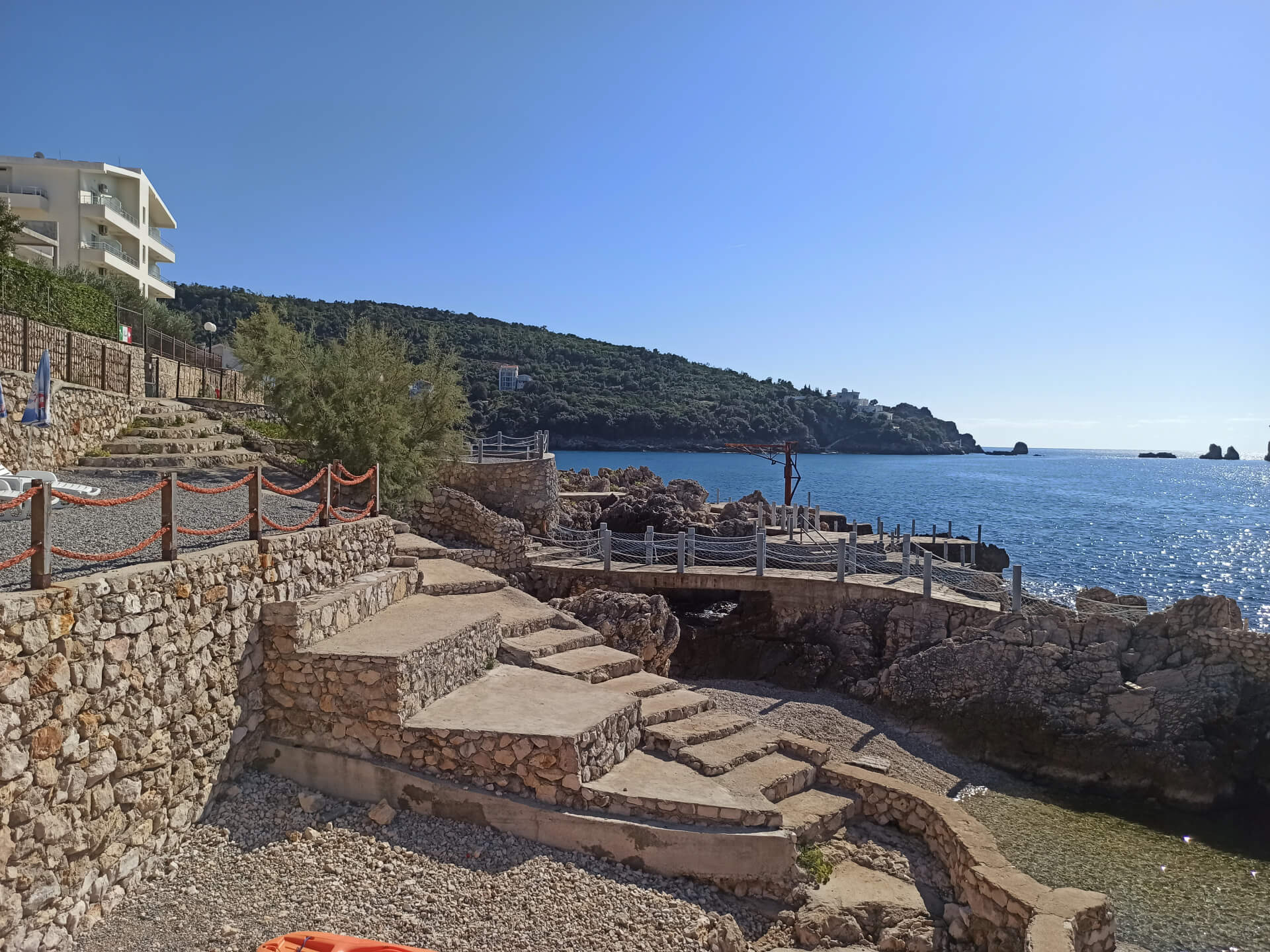 Swimming in the sea in Hladna Uvala could be tricky especially if there are waves but for experienced travellers it's a great experience. The promenade has a lot of beautiful flowers, palms and trees. There is a restaurant there, you can find a good accommodation with own entrance to the sea. This area is located at the end of Bar region, closer to Ulcinj. Hladna Uvala would be the best choice for wild rest and if you travel by car without kids, if you want to stay far from the biggest cities and crowd.