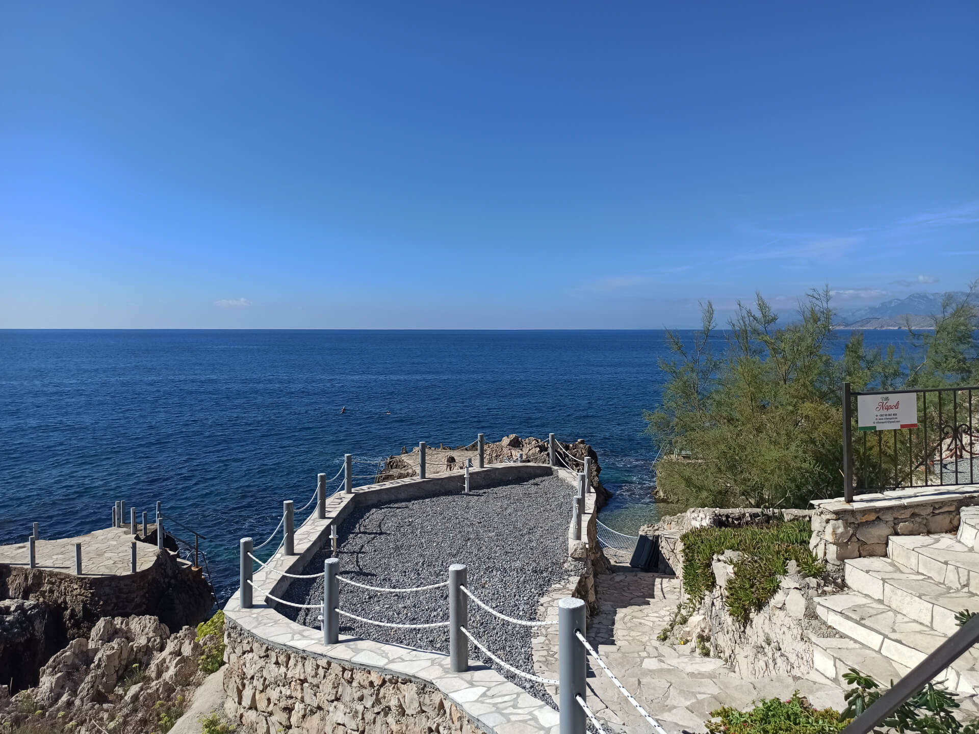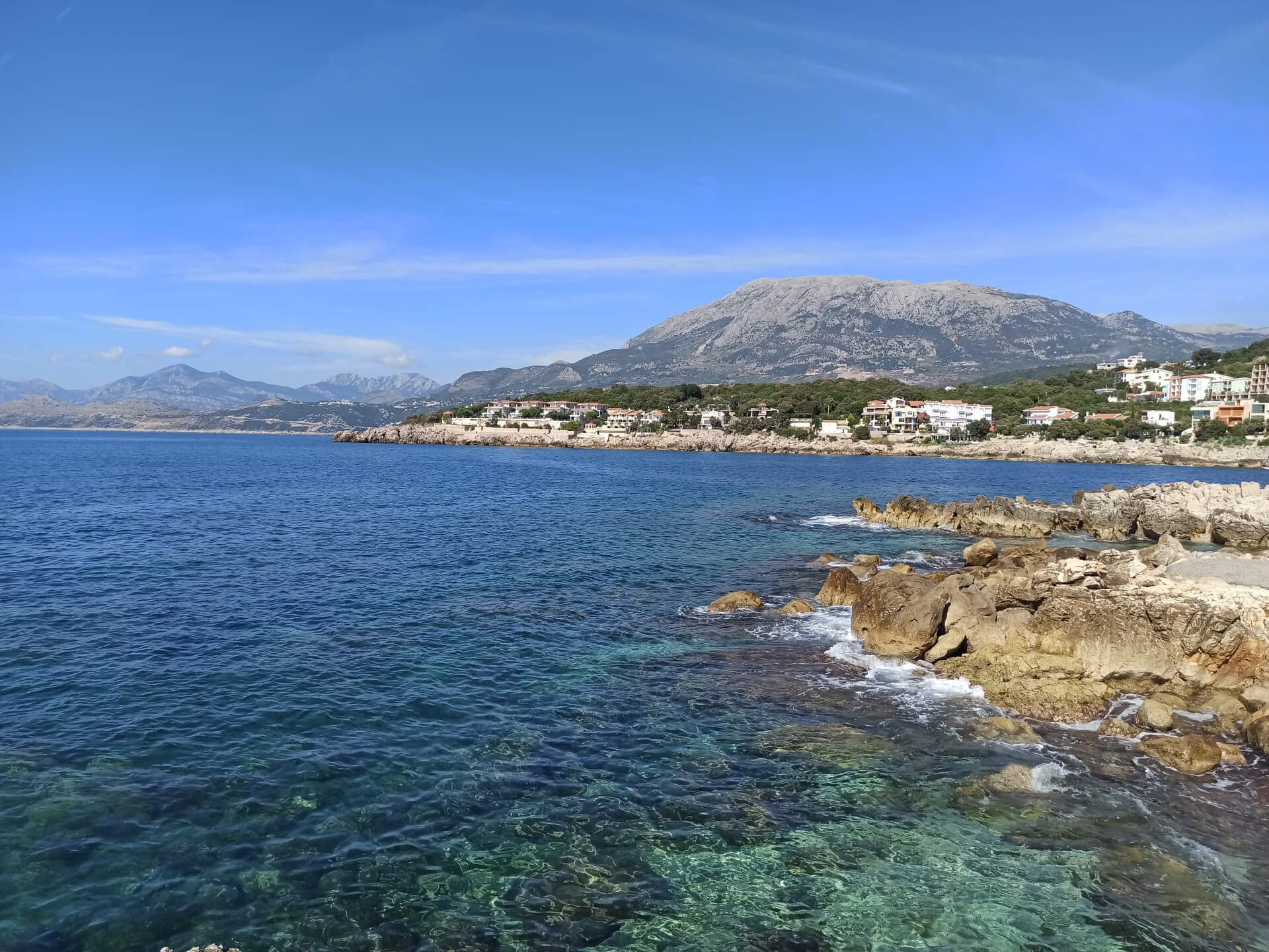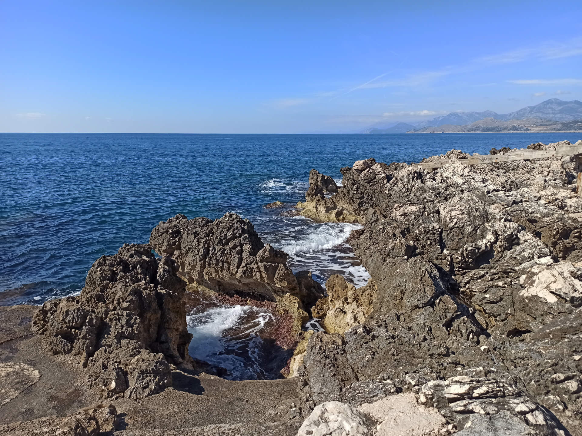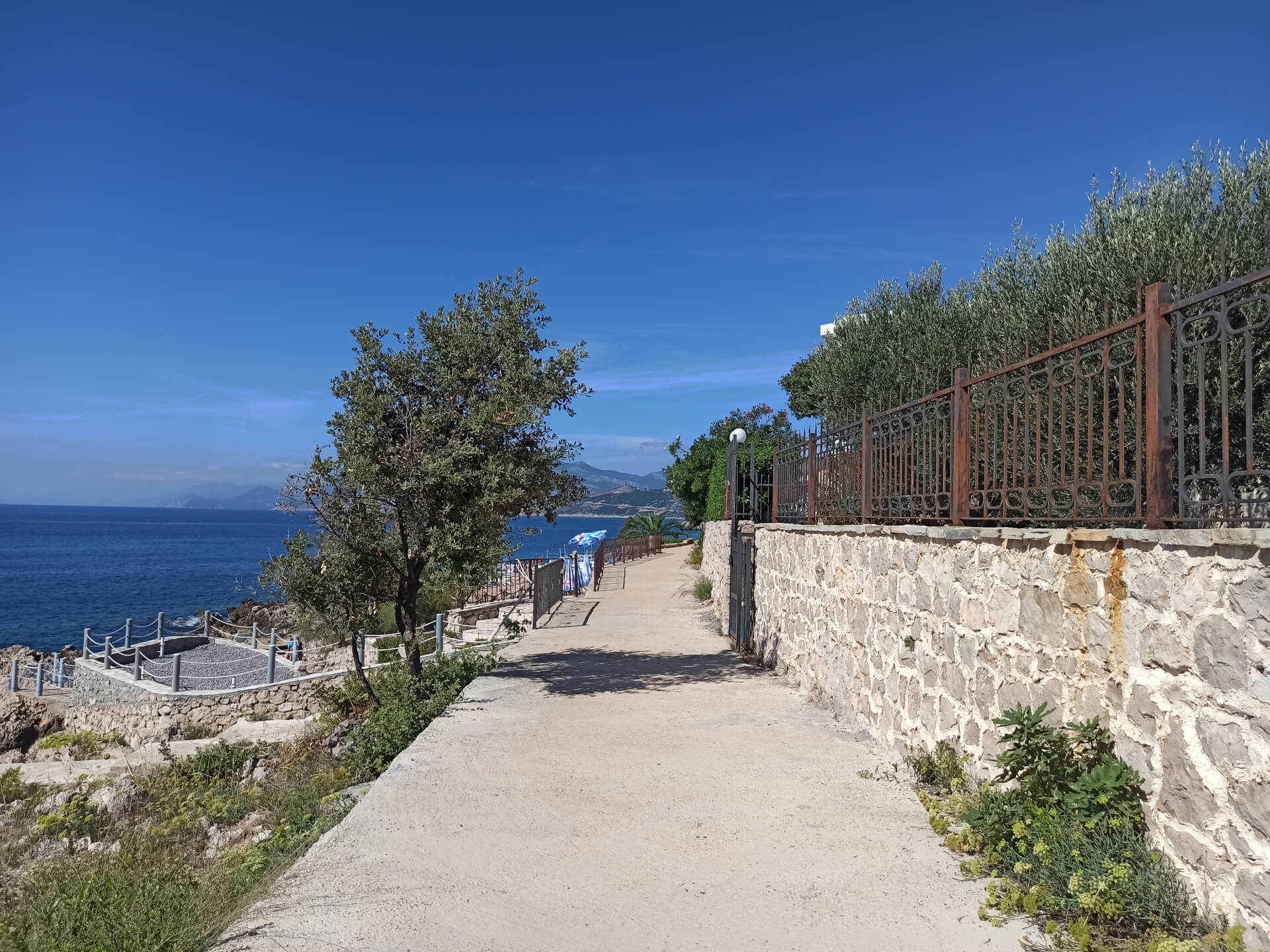 Swimming in the sea in Hladna Uvala could be tricky especially if there are waves but for experienced travellers it's a great experience. The promenade has a lot of beautiful flowers, palms and trees. There is a restaurant there, you can find a good accommodation with own entrance to the sea. This area is located at the end of Bar region, closer to Ulcinj. Hladna Uvala would be the best choice for wild rest and if you travel by car without kids, if you want to stay far from the biggest cities and crowd.