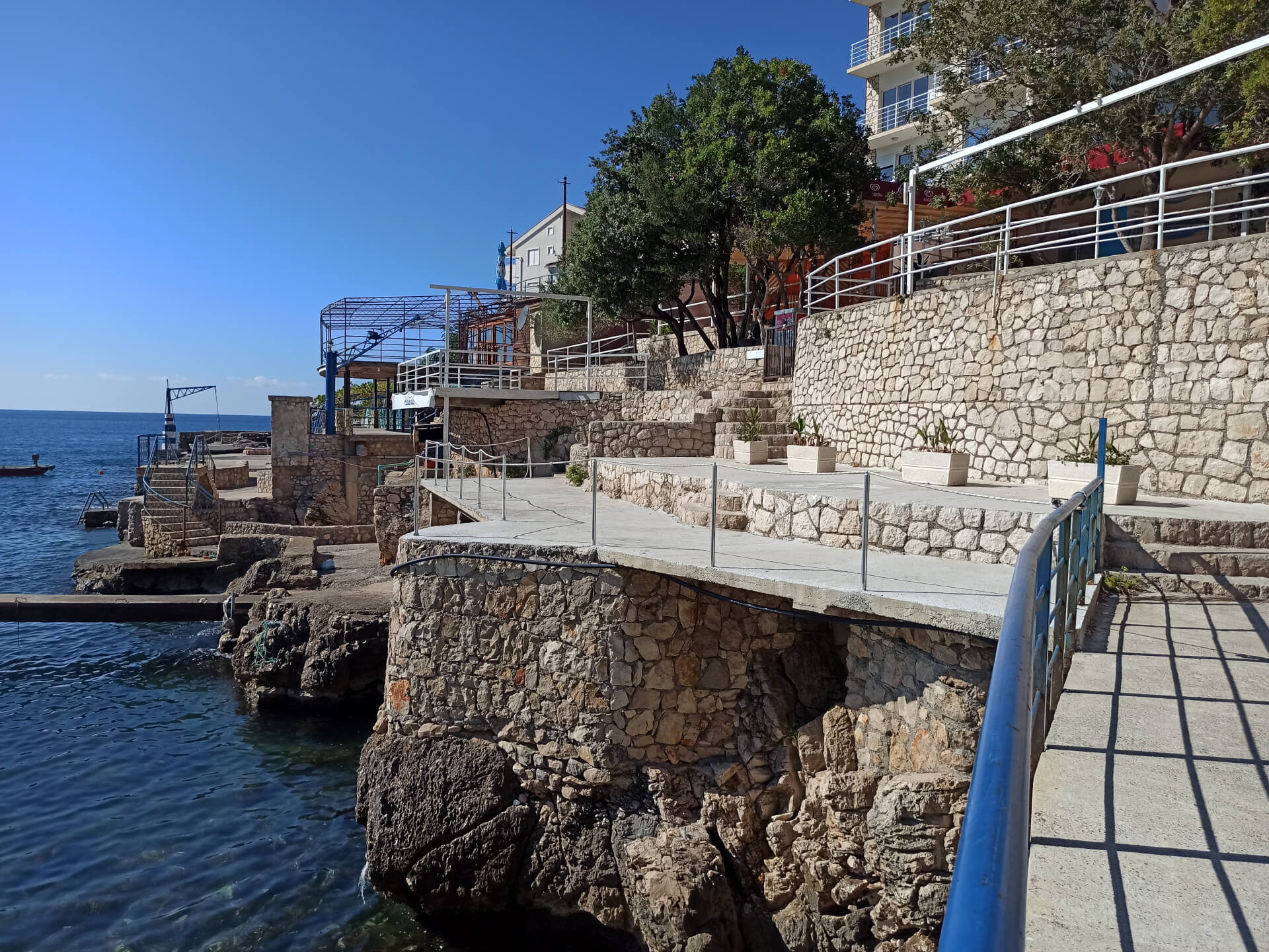 Hladna Uvala isn't just a beach, it's the whole bay of Barska Riviera. Hladna Uvala is also an attraction: there is a long narrow trail - promenade along the sea, where you can walk and enjoy incredible views. There are beautiful villas located on the first line of the sea that offer apartments as well as there are some lovely hotels, with pools, barbecue zone and little playgrounds for kids.