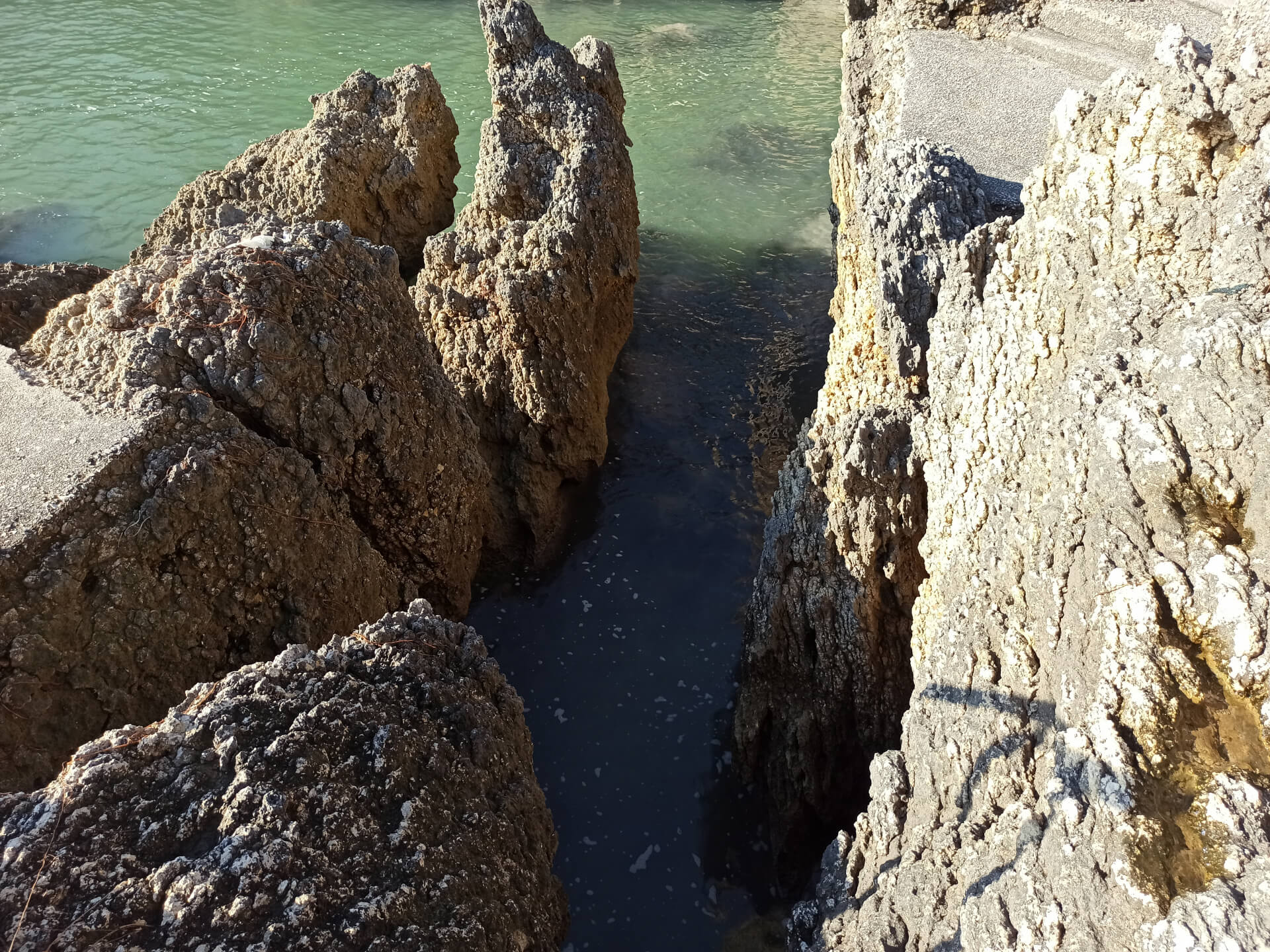 • The water filled with sulfur on ladies beach