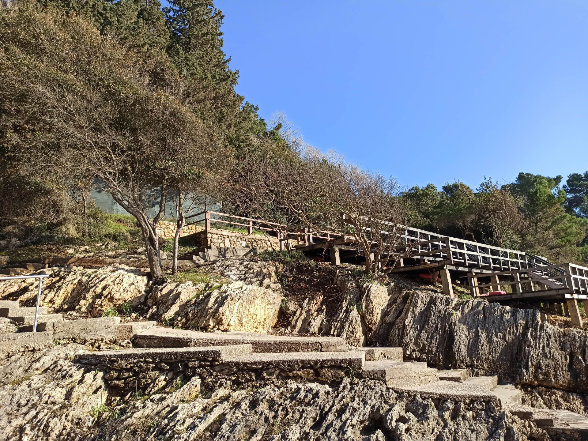 • Stony stairs on ladies beach