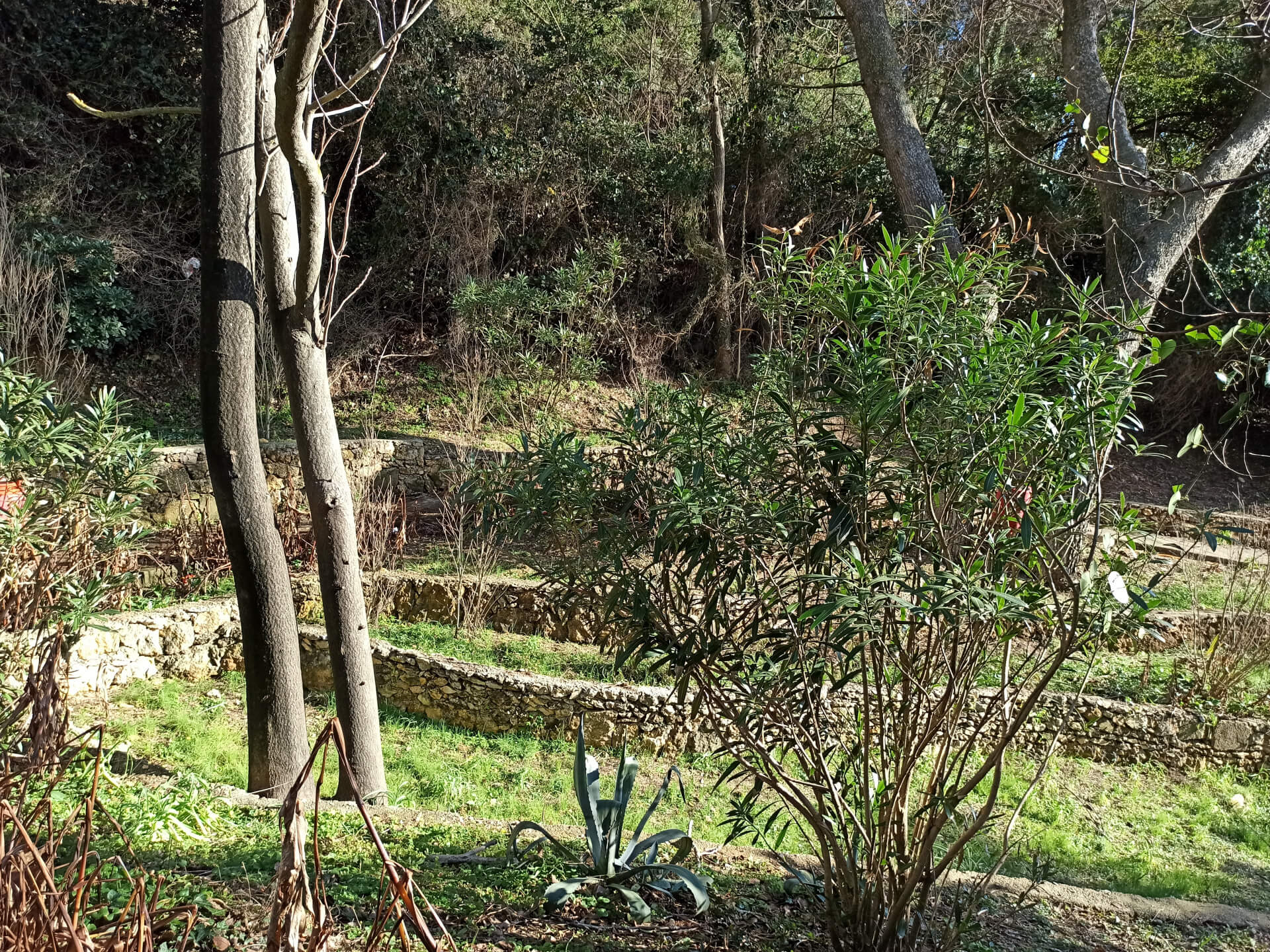 • Stony wall covered with trees on ladies beach