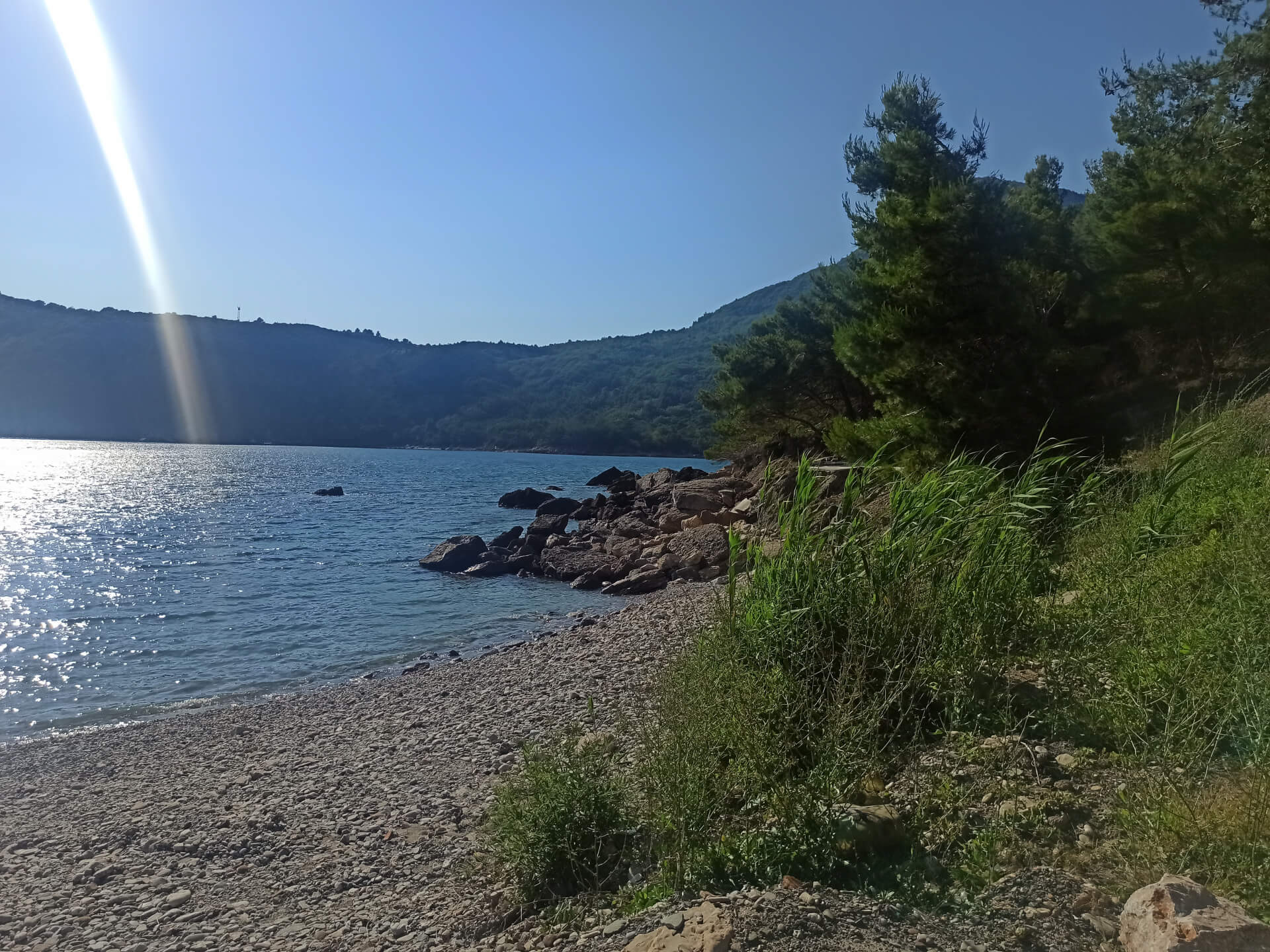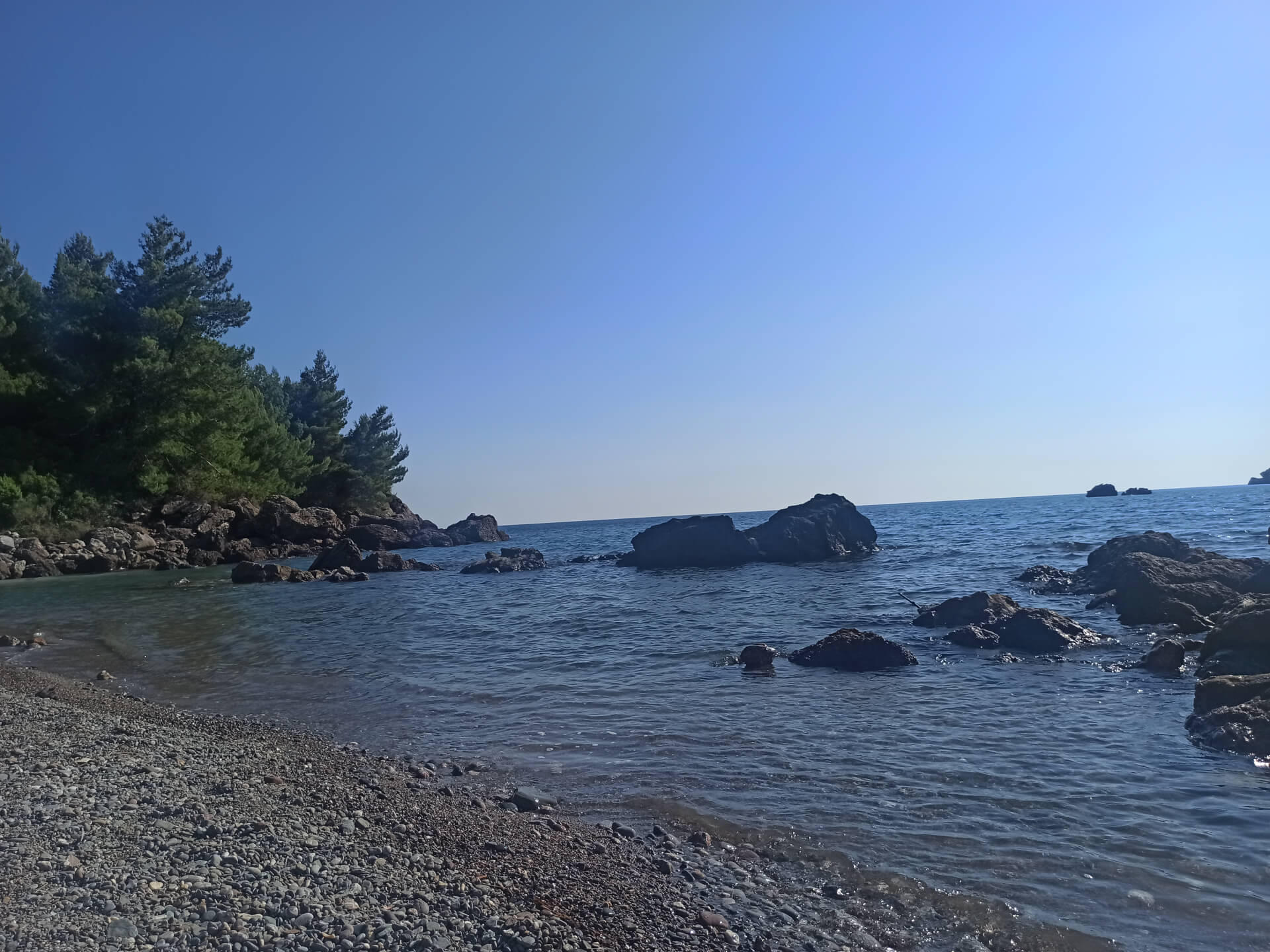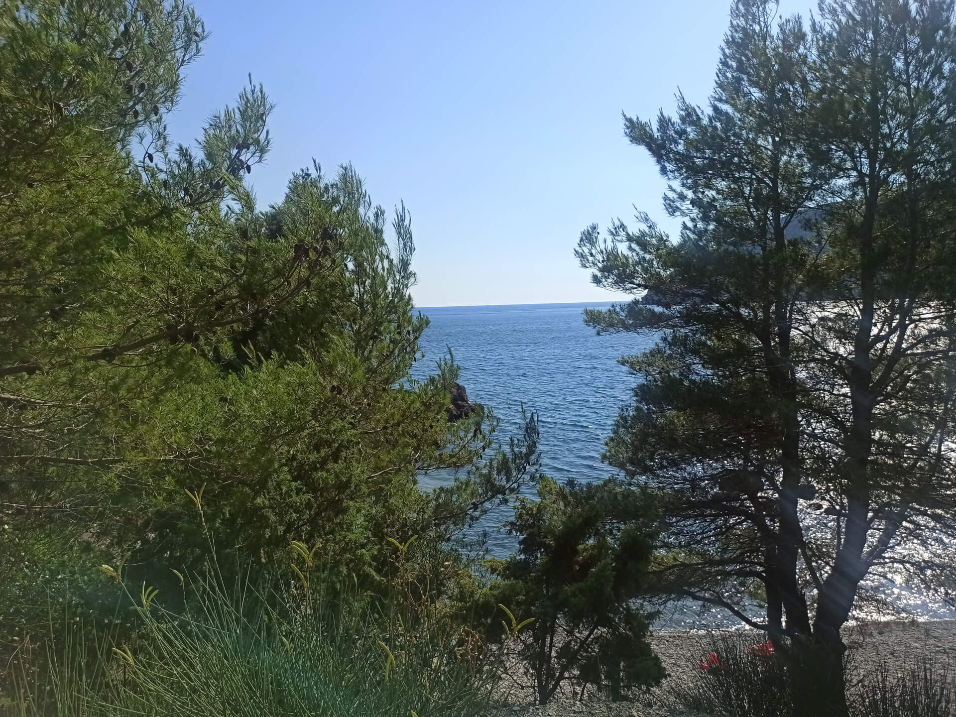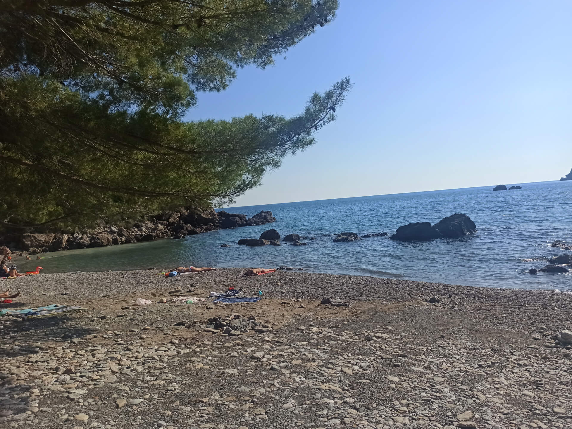 Walking through deep shadow of the forest is very refreshing at a hot summer day and balancing for nervous system. It's better to have swimming shoes swimming in the sea as the beach is rocky and there could be urchins. The beach itself isn't very big and not the most incredible - there is pebble and stones all around. But swimming and breathing fresh pine air is very healthy and inspiring. Because of its location there won't be any people even at a high season that's why it's a big adventure to escape from the crowds.