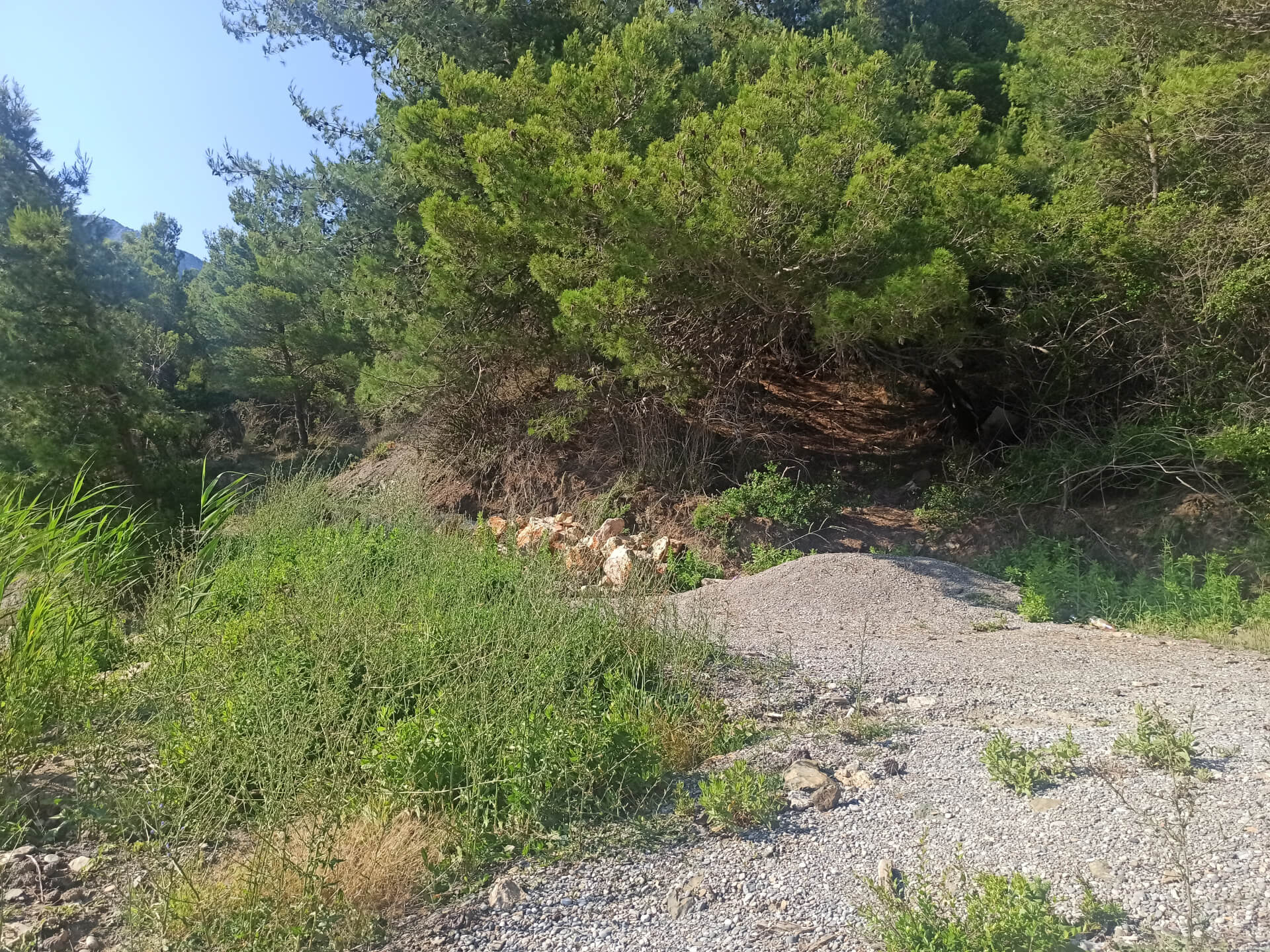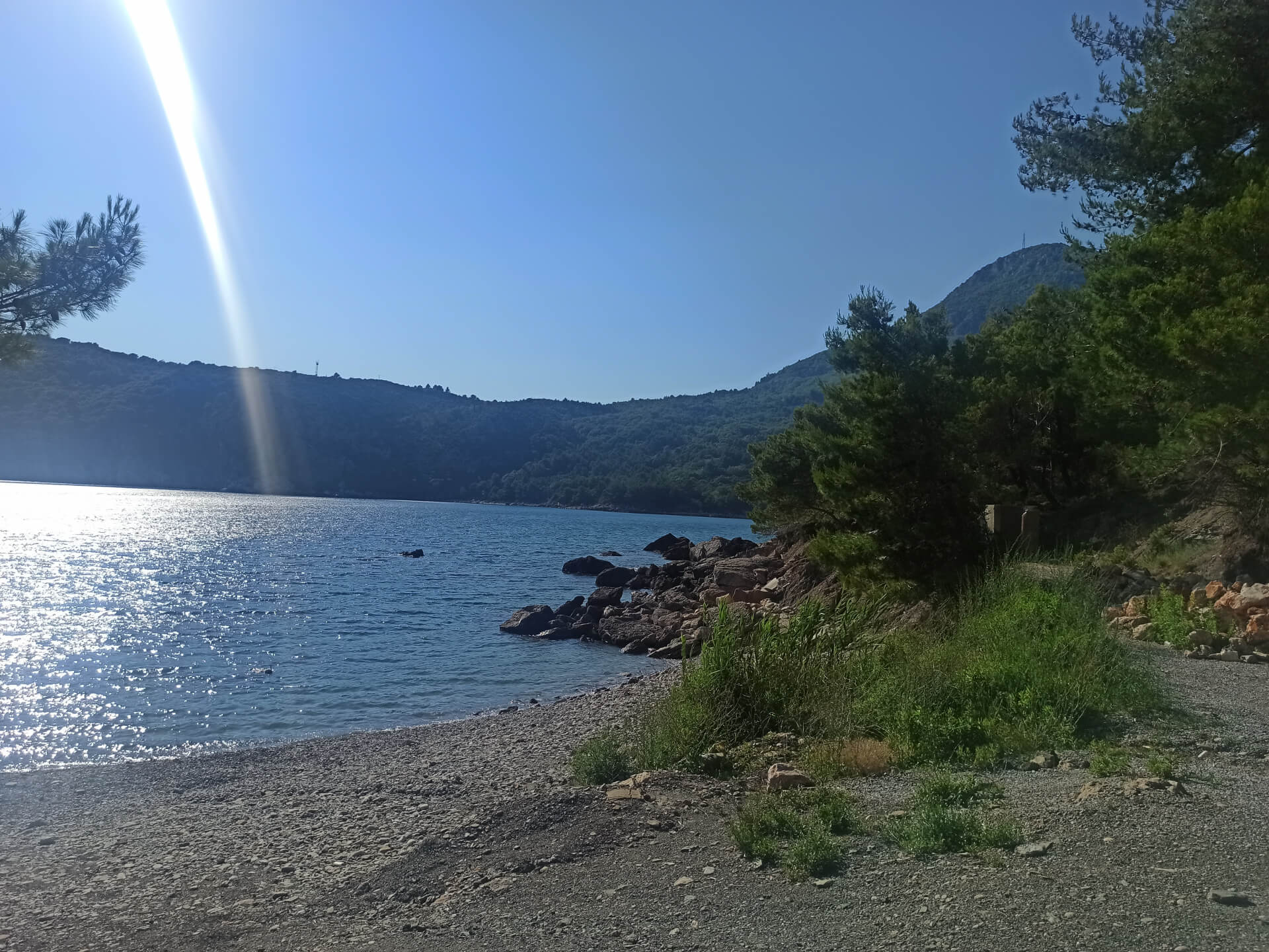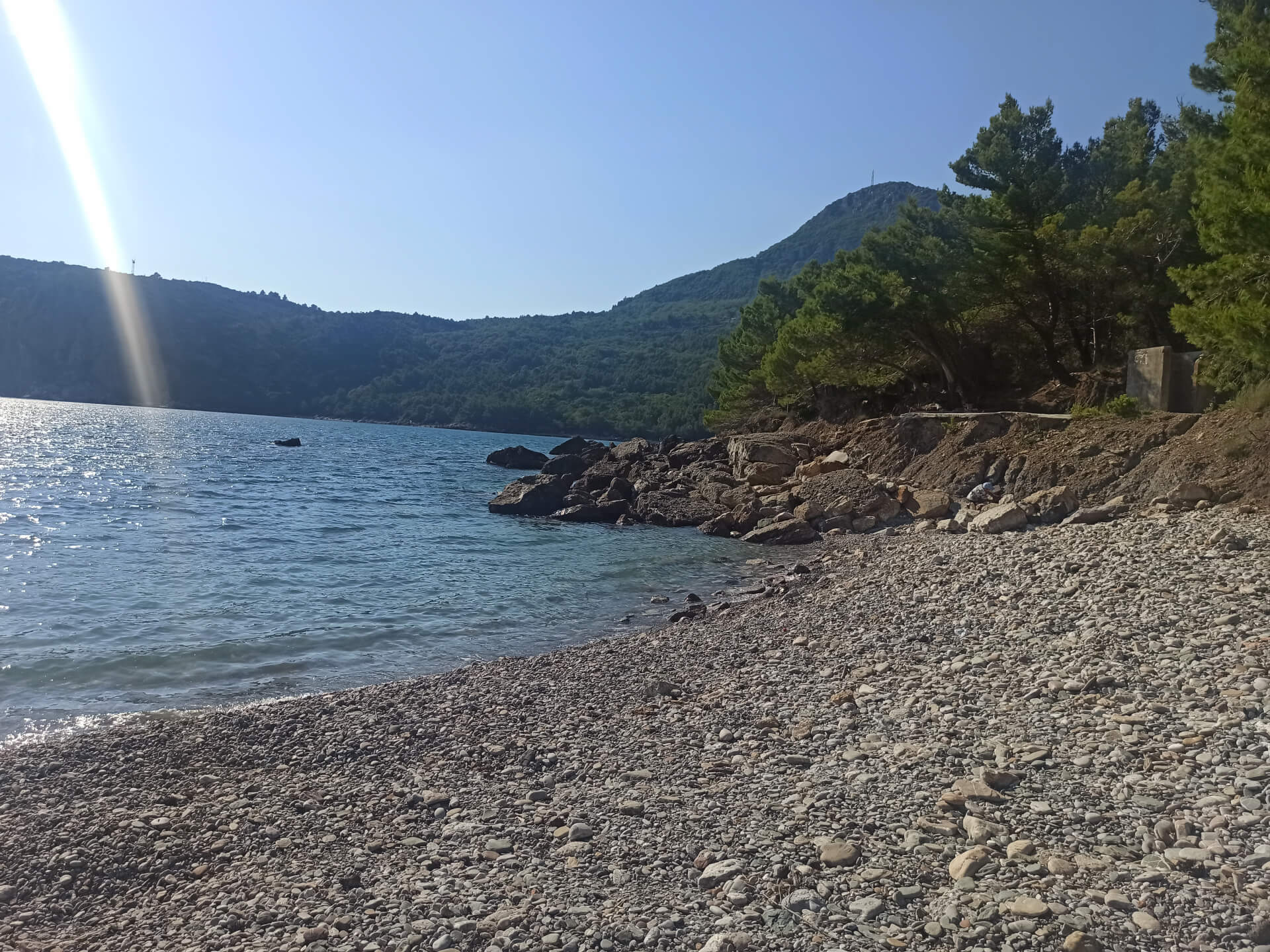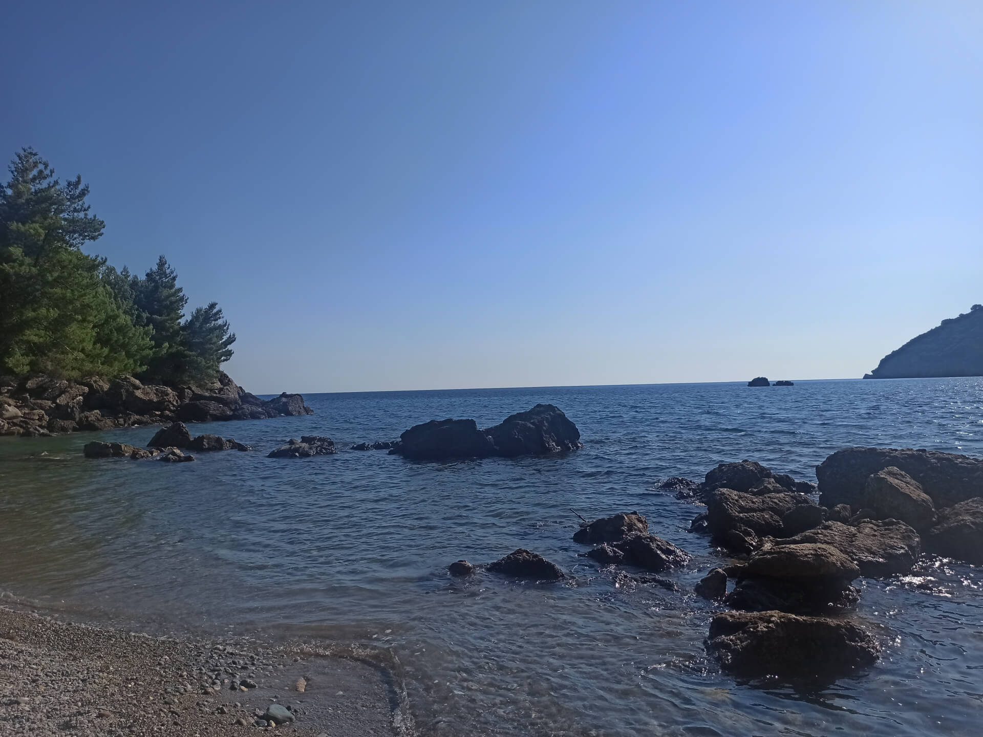 Walking through deep shadow of the forest is very refreshing at a hot summer day and balancing for nervous system. It's better to have swimming shoes swimming in the sea as the beach is rocky and there could be urchins. The beach itself isn't very big and not the most incredible - there is pebble and stones all around. But swimming and breathing fresh pine air is very healthy and inspiring. Because of its location there won't be any people even at a high season that's why it's a big adventure to escape from the crowds.
