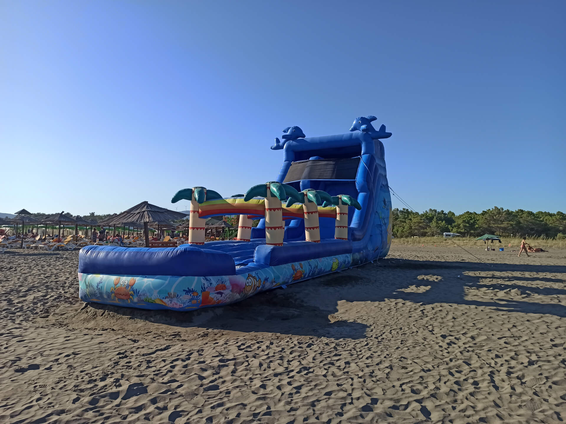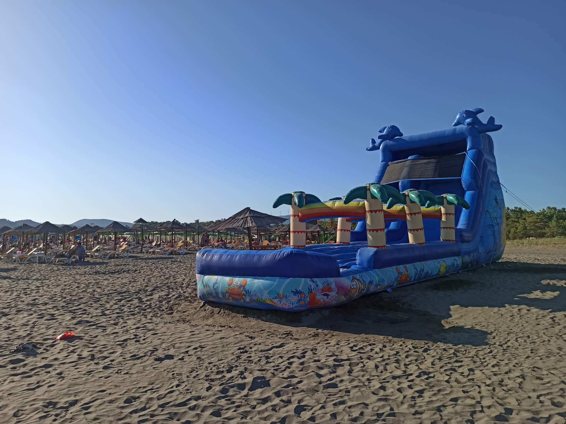 Blue Flag award. The beach offers also to rent apartments and there is auto camp. Blue Flag always guarantee great services as well as clean and high quality beach. The beach has a large area for activities on the sand as well as a good playground for kids.