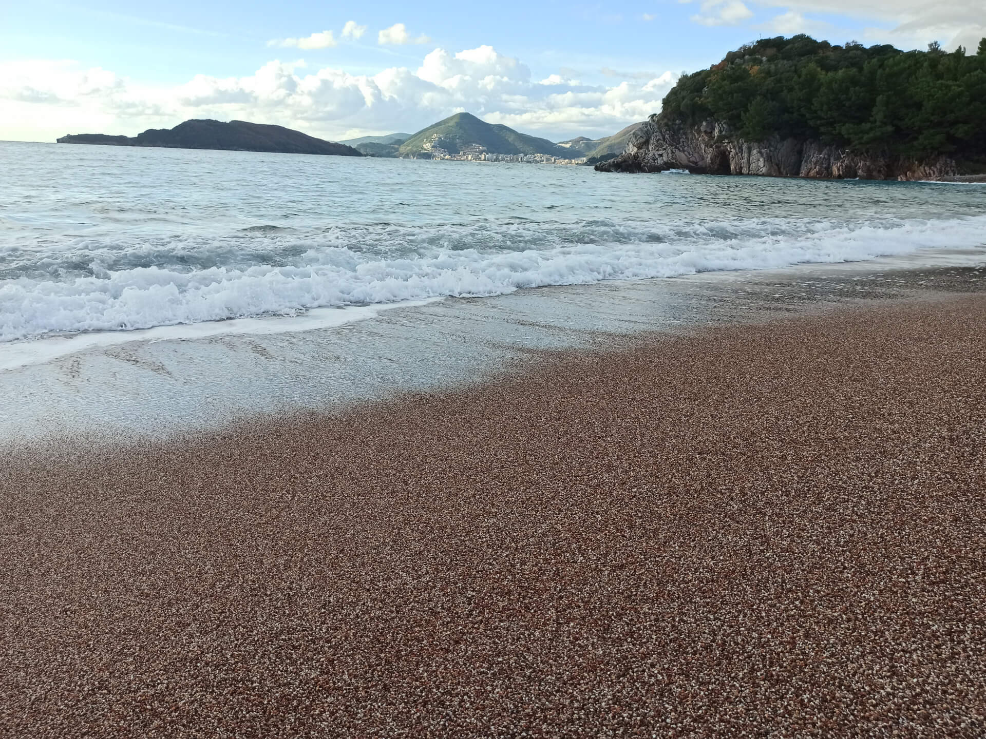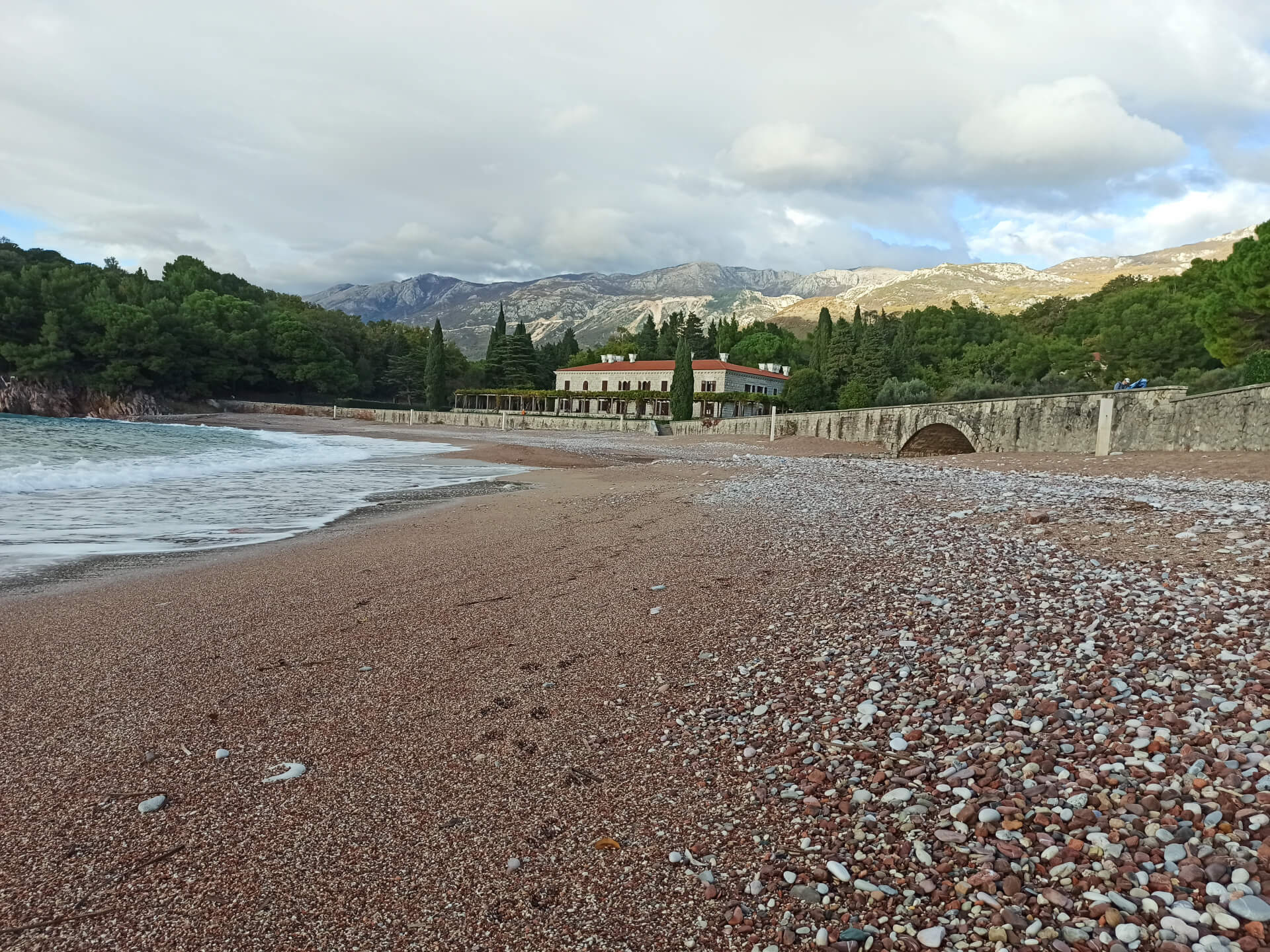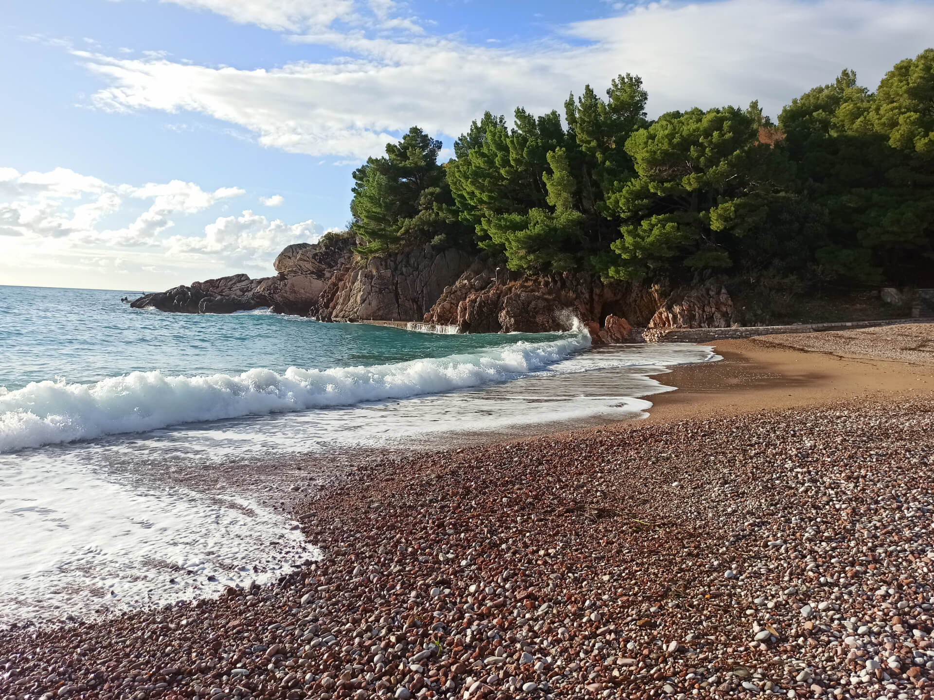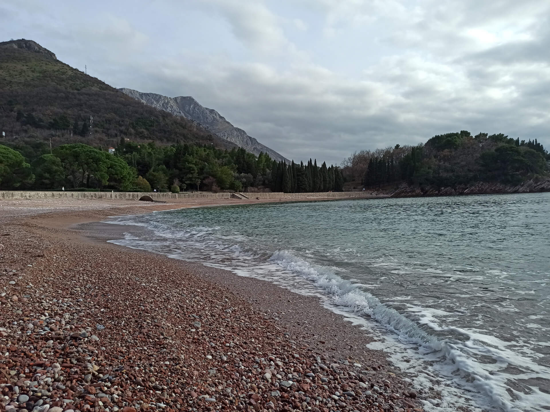There is a small stony cave from the one side of the beach that leads to a tiny berth where small boats can park to get to the beach. There is a fantastic view to Sveti Stefan island from the berth. The beach has an incredible red pebble - from small to bigger stones. This is a truly king's place where anyone can feel as royalty.