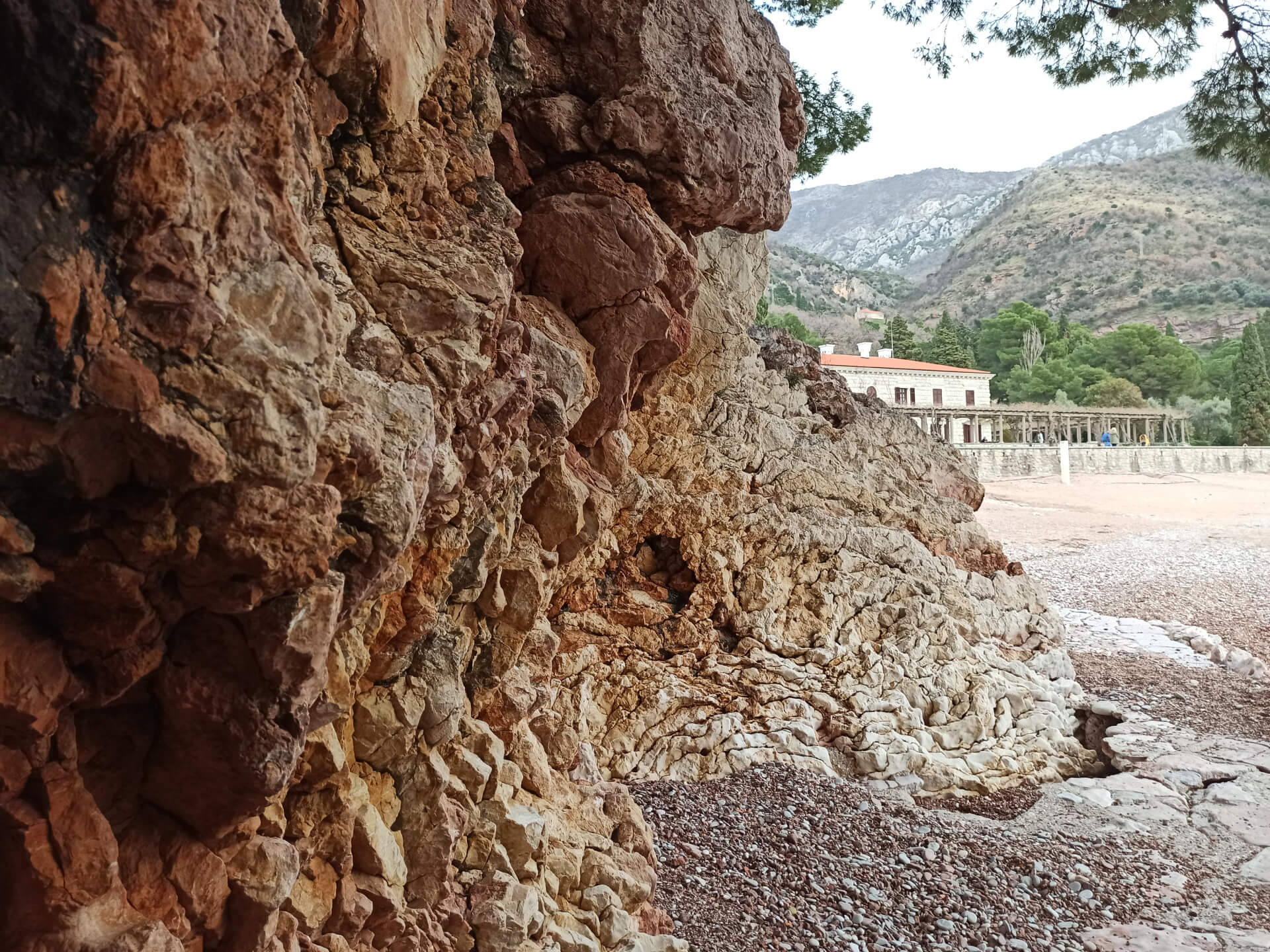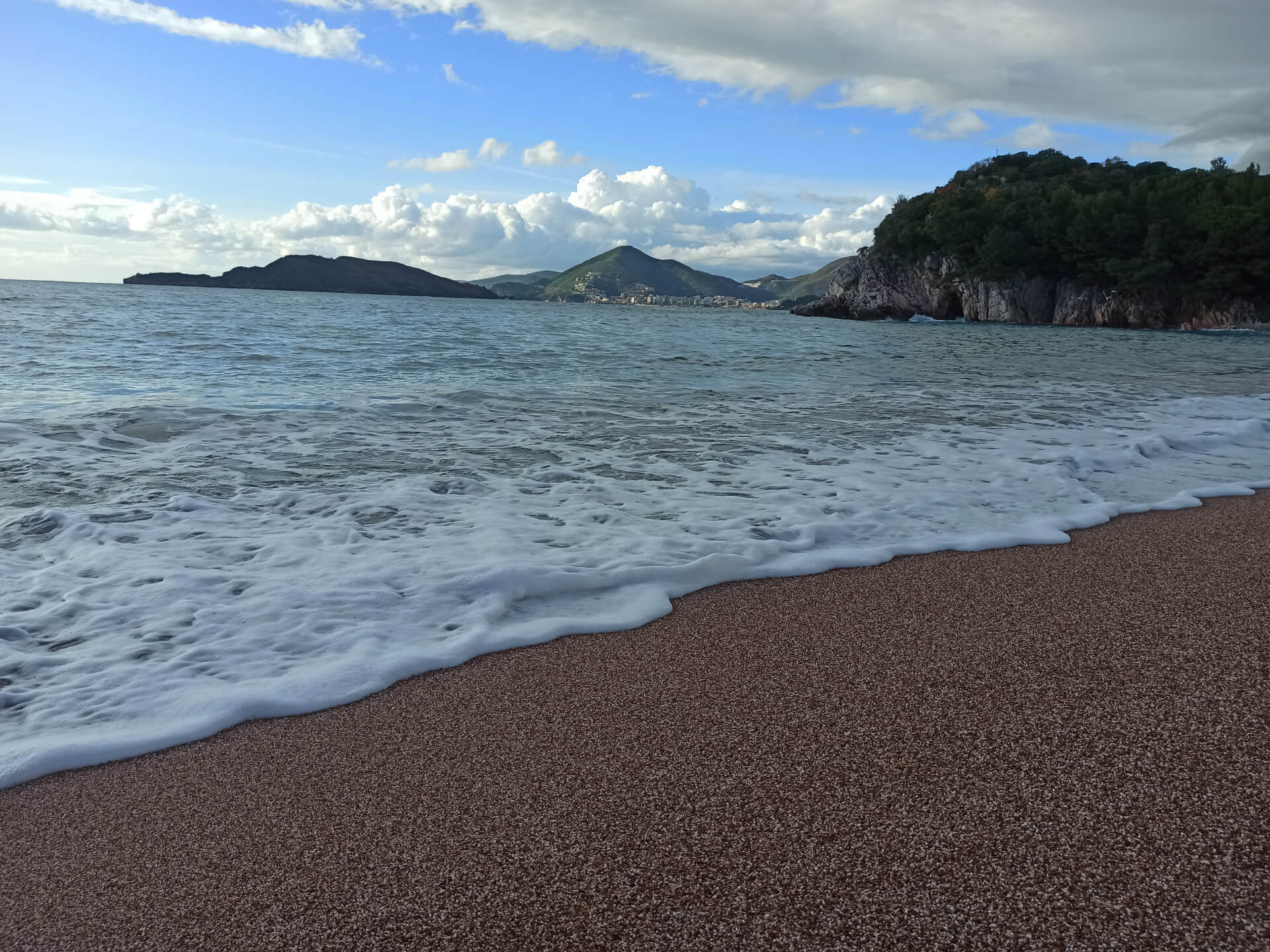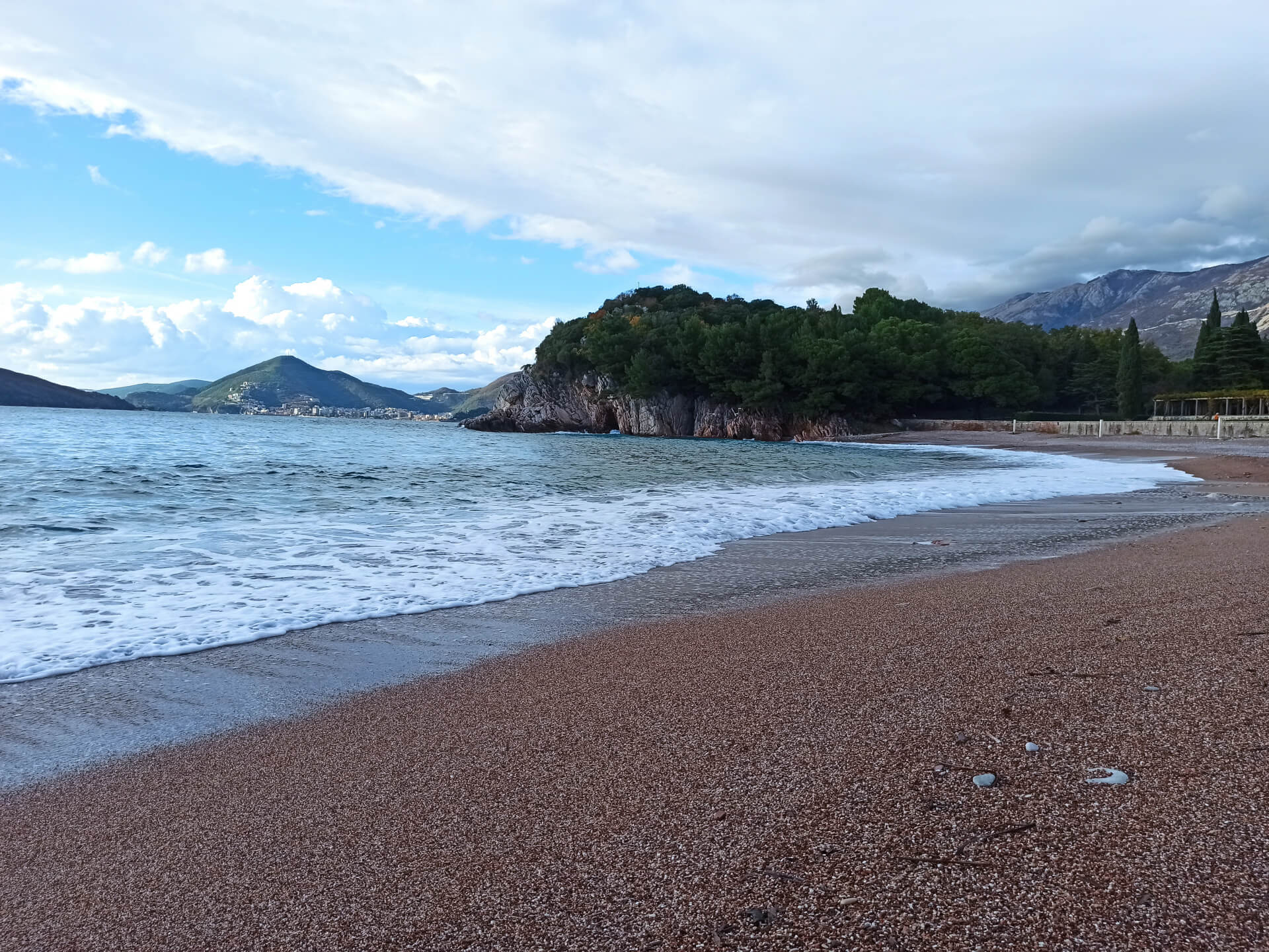 There is a small stony cave from the one side of the beach that leads to a tiny berth where small boats can park to get to the beach. There is a fantastic view to Sveti Stefan island from the berth. The beach has an incredible red pebble - from small to bigger stones. This is a truly king's place where anyone can feel as royalty.