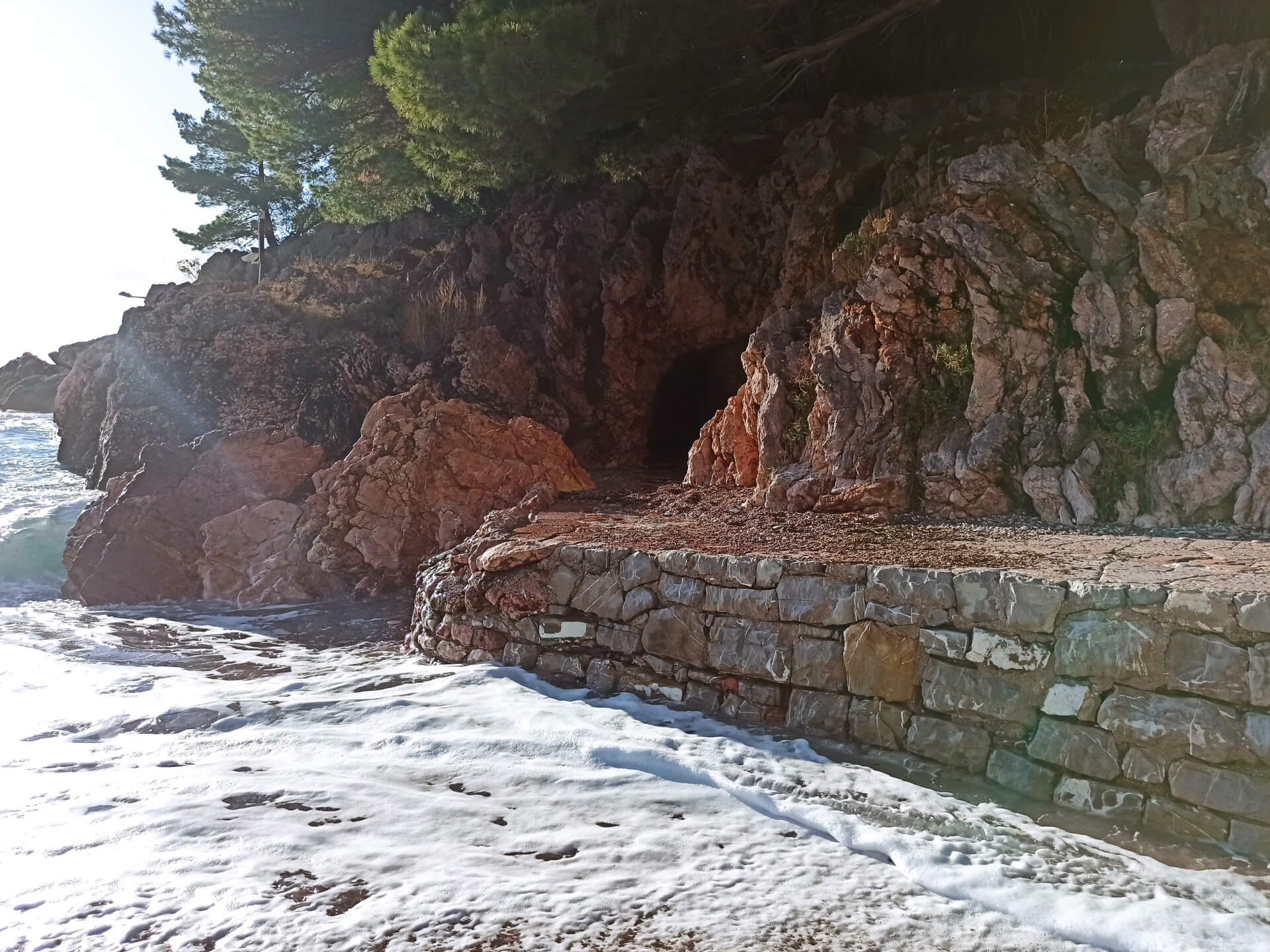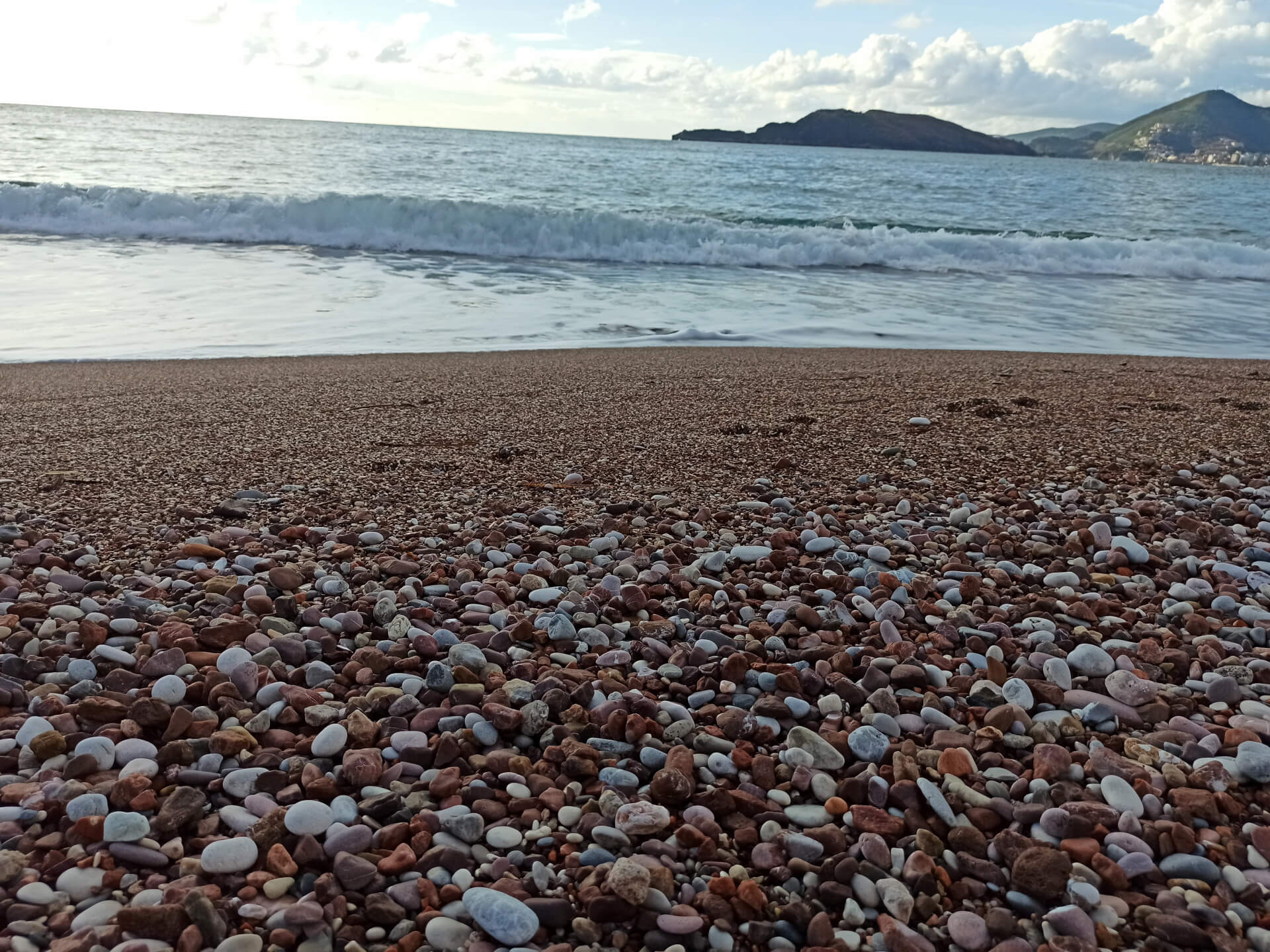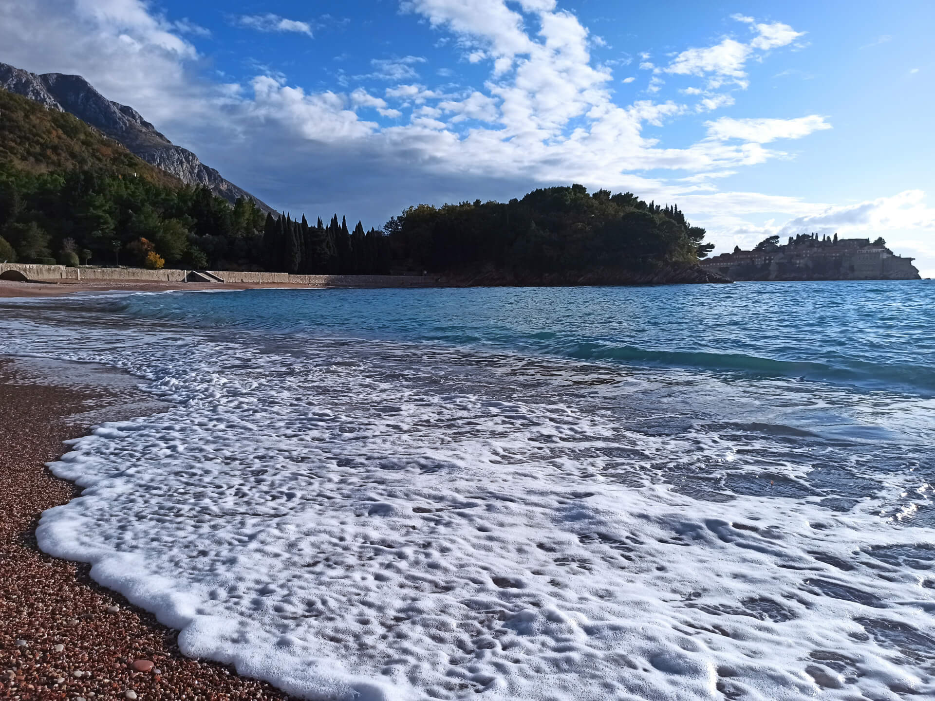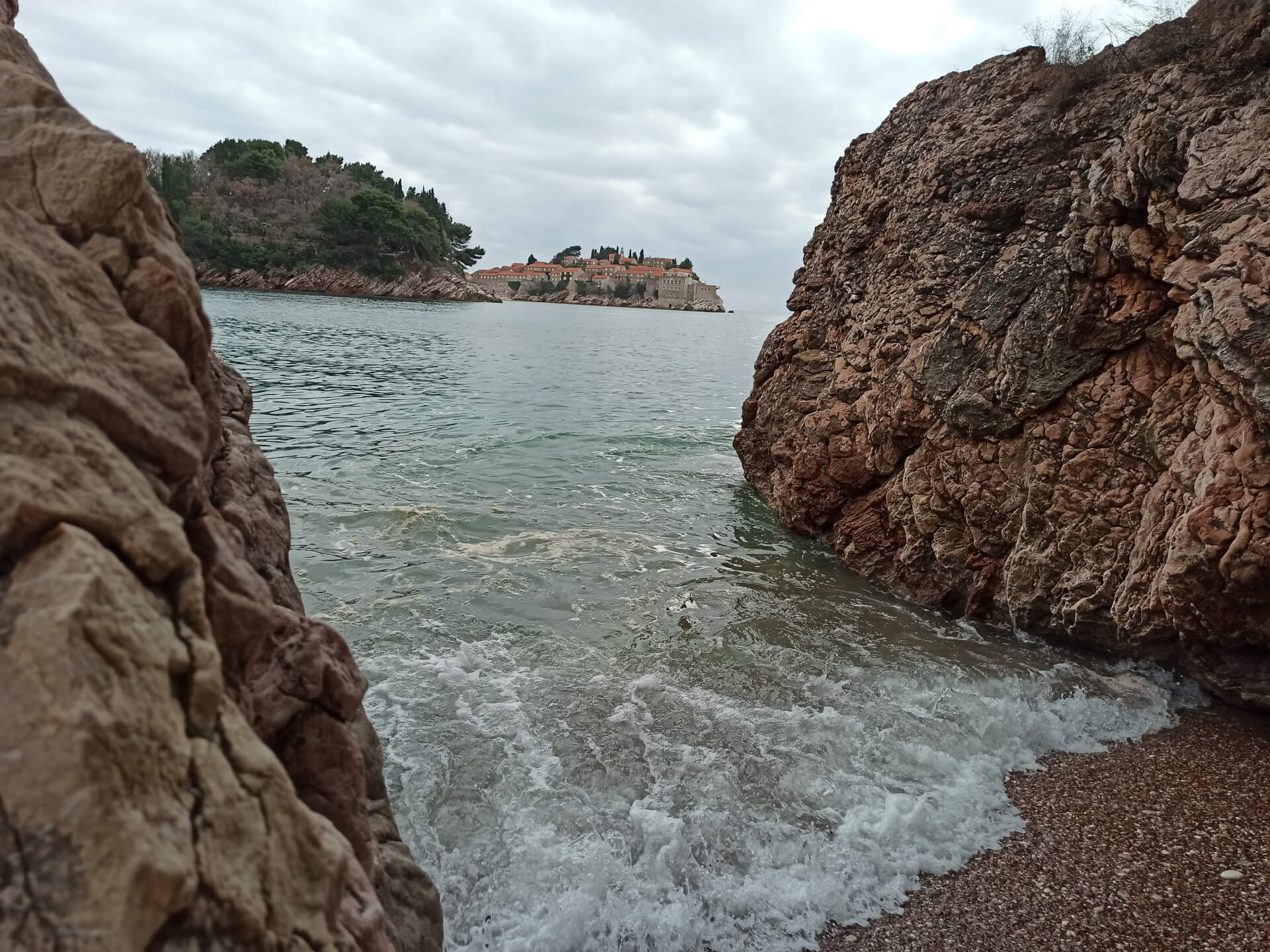 There is a small stony cave from the one side of the beach that leads to a tiny berth where small boats can park to get to the beach. There is a fantastic view to Sveti Stefan island from the berth. The beach has an incredible red pebble - from small to bigger stones. This is a truly king's place where anyone can feel as royalty.