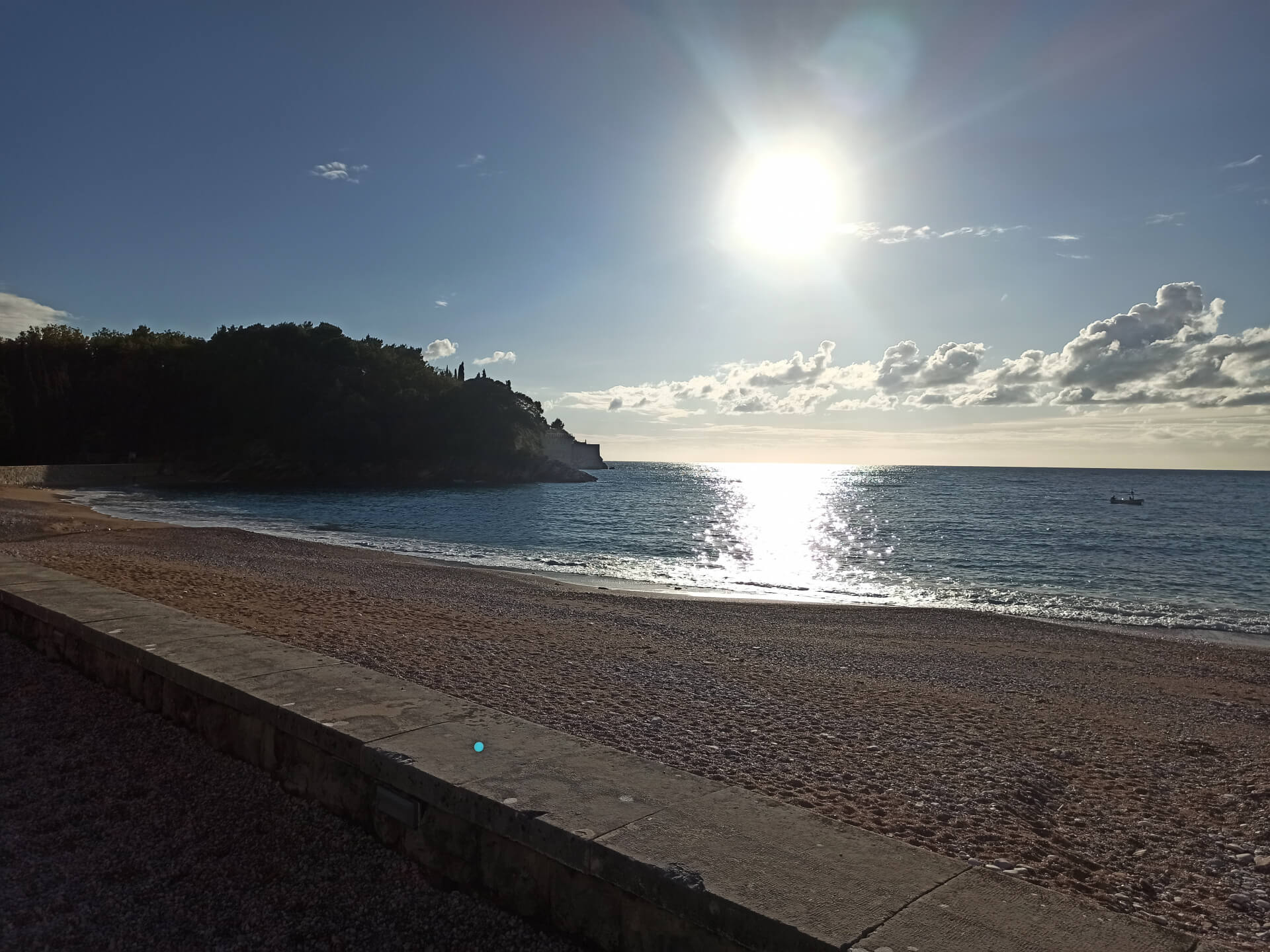 Because of its specific location, to get to the beach, you will need to walk a bit from the parking since it's not very close to the beach. But that's why the beach is always clean and has an incredible smell. At the cold time of the year, you can walk and rest there for free. The territory of the beach from autumn to spring is open and everyone has an opportunity to enjoy the most amazing beach, views and nature. It is located not very far from Budva city and there are a lot of amazing touristic attractions in this region.