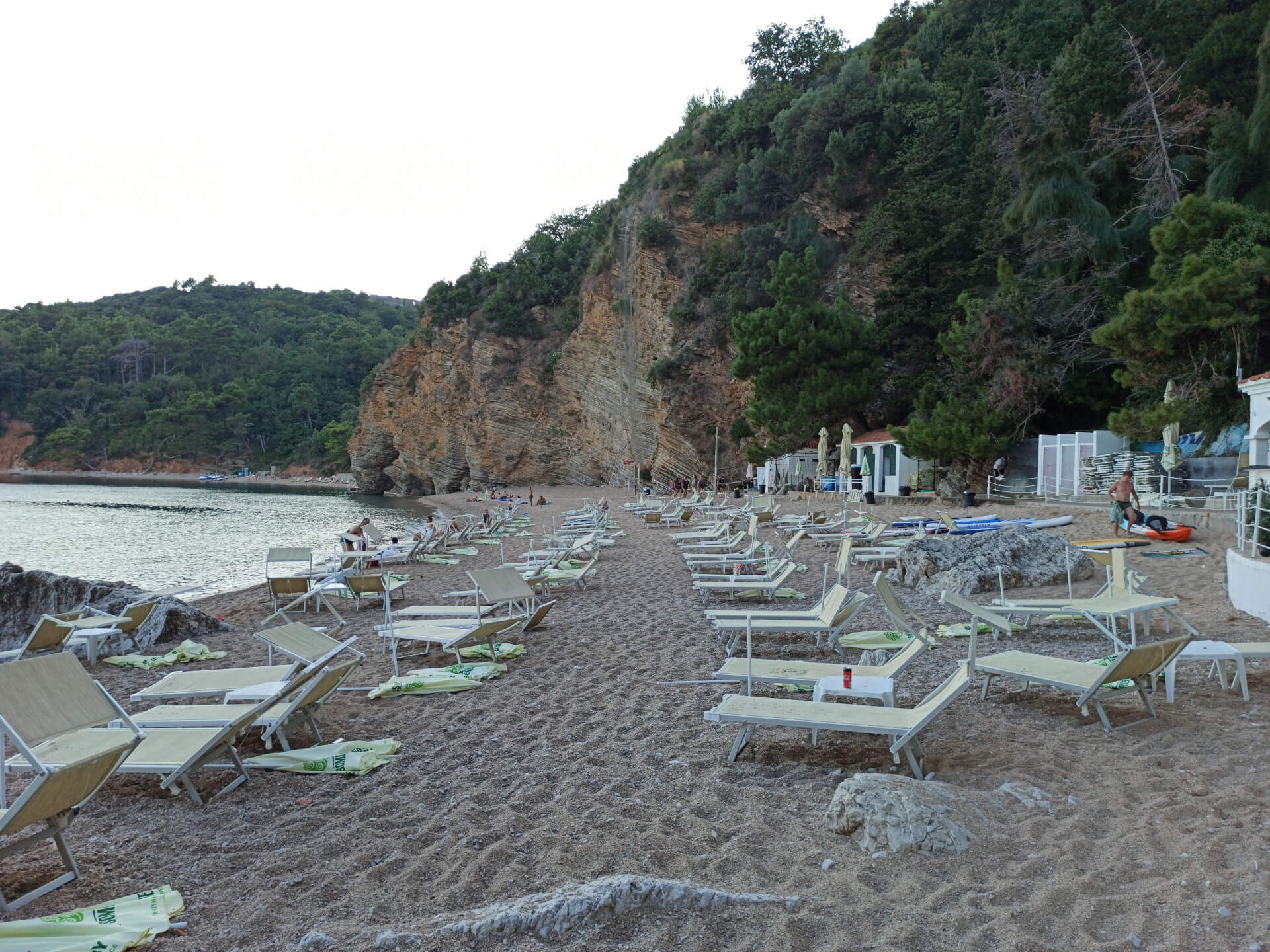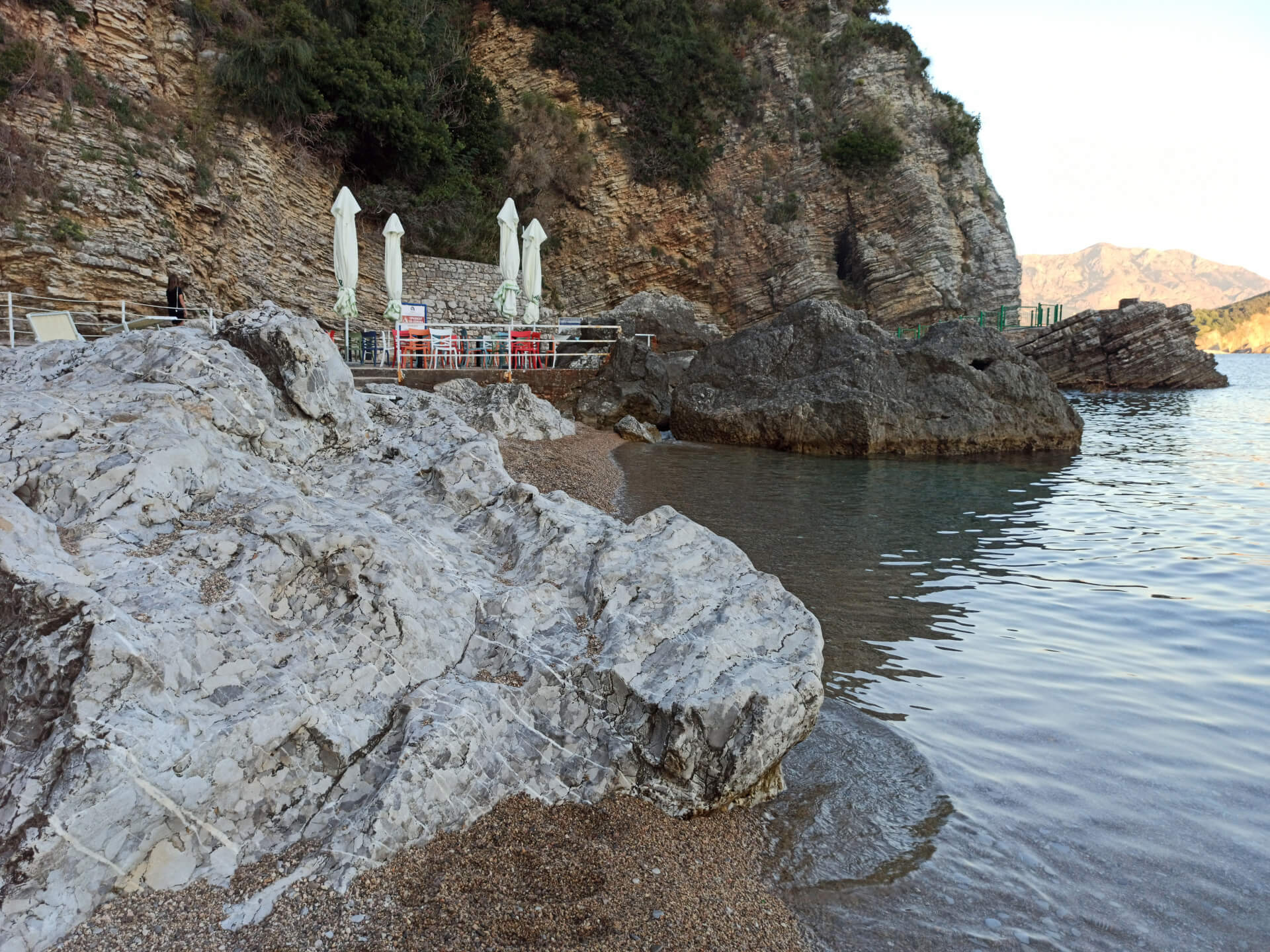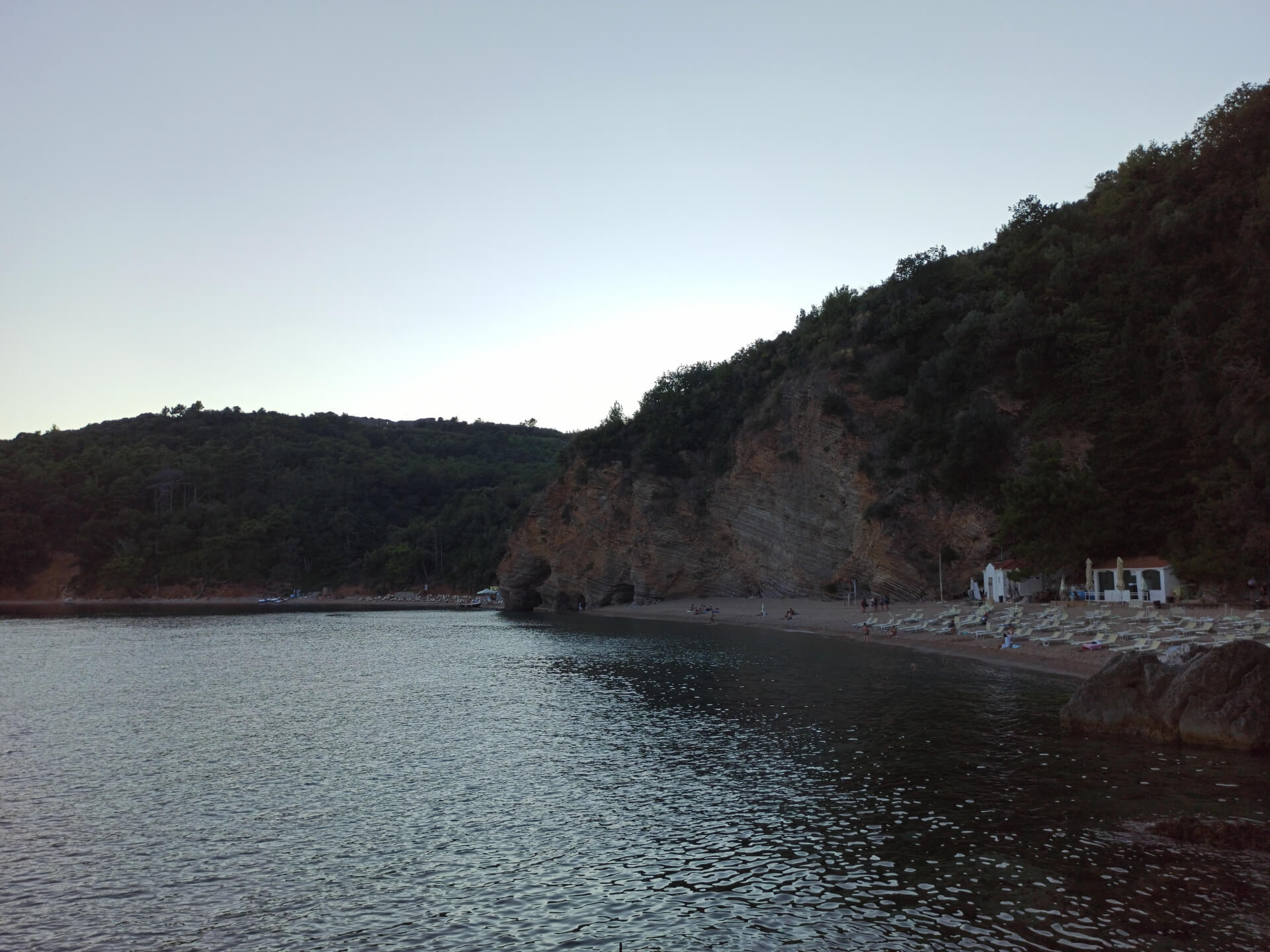 The beach isn't very long but it's mostly stony. Located in a small bay, it makes the water very clean and clear. There are beautiful mountains behind the beach that protect it from wind and crowds. They make the beach very cozy and beautiful. There is a cafe so you can order some drinks and have a meal, and rent sunbeds with umbrellas. Leaving your car in Budva, you can simply enjoy the view and walk to that amazing beach.