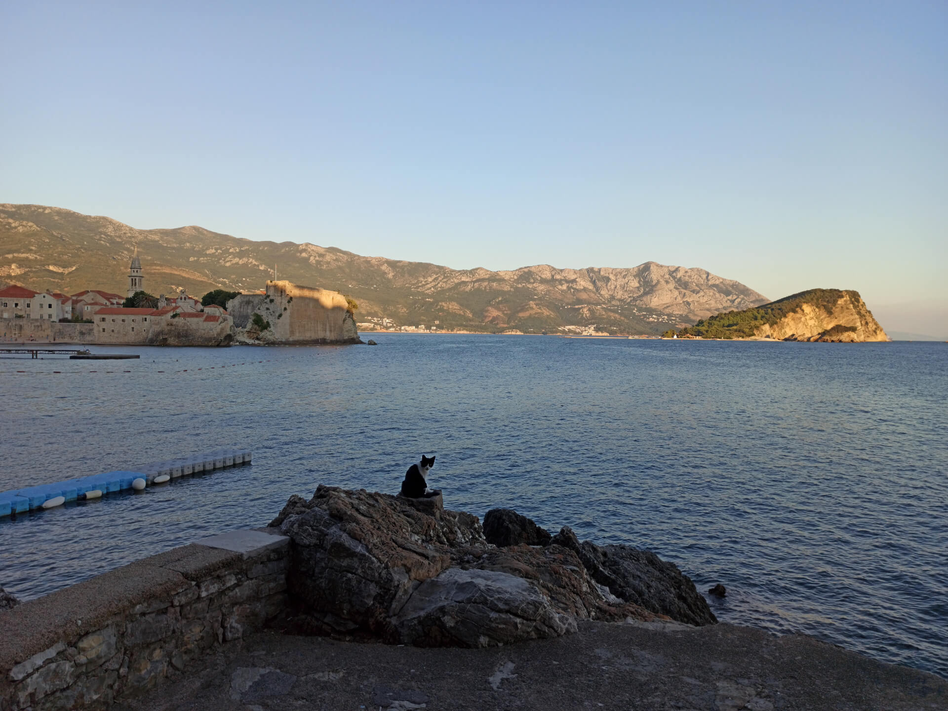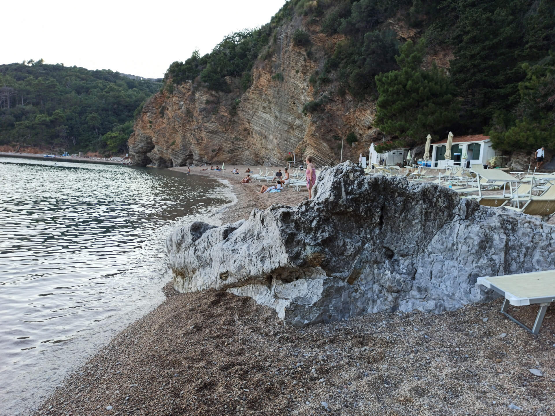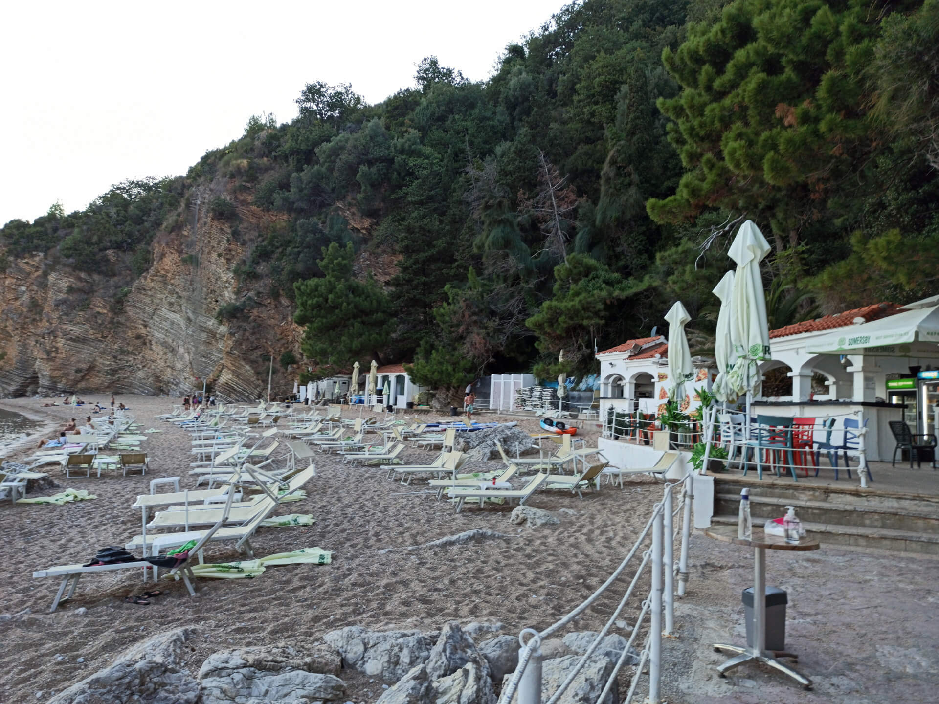 The beach isn't very long but it's mostly stony. Located in a small bay, it makes the water very clean and clear. There are beautiful mountains behind the beach that protect it from wind and crowds. They make the beach very cozy and beautiful. There is a cafe so you can order some drinks and have a meal, and rent sunbeds with umbrellas. Leaving your car in Budva, you can simply enjoy the view and walk to that amazing beach.