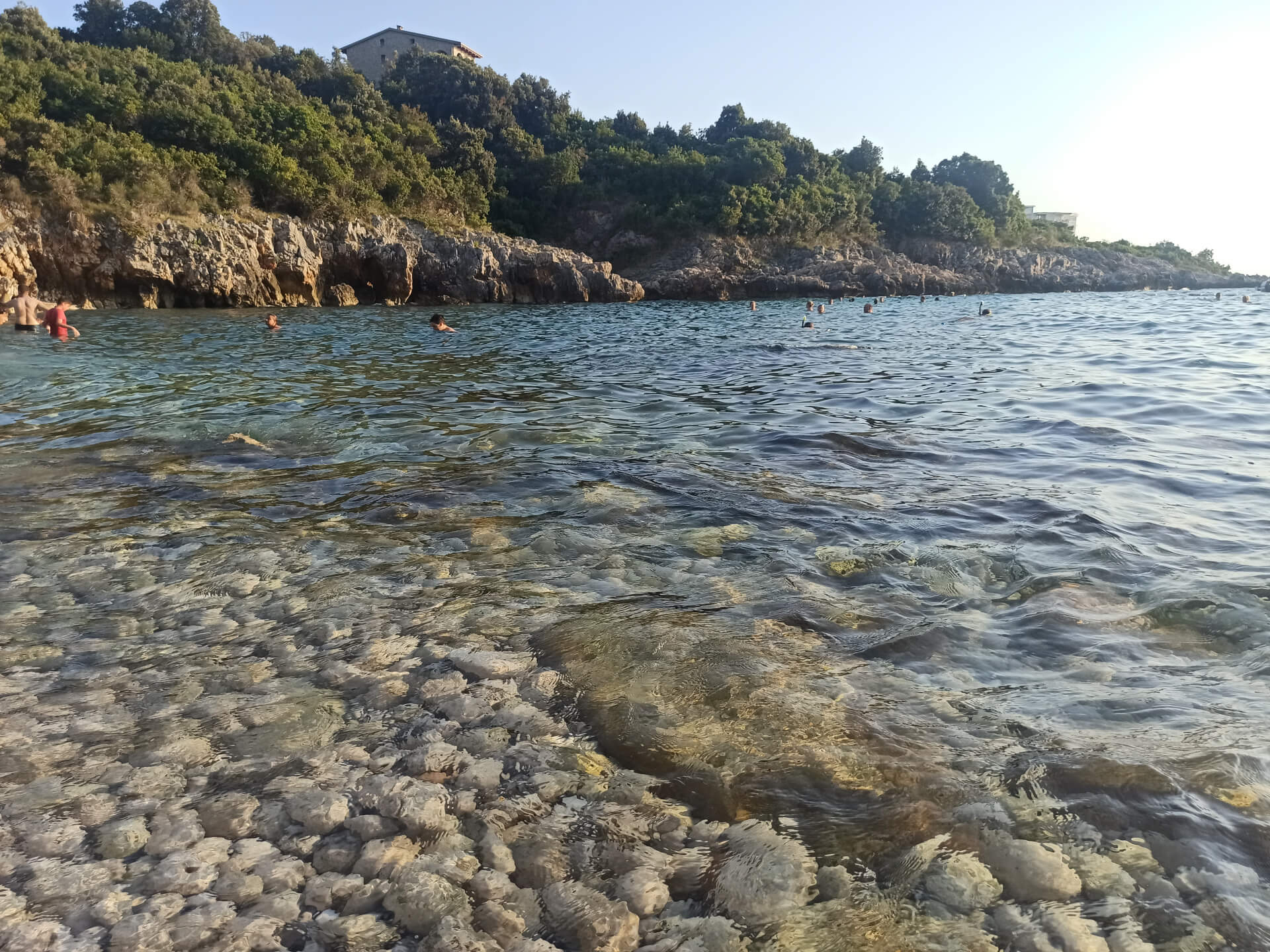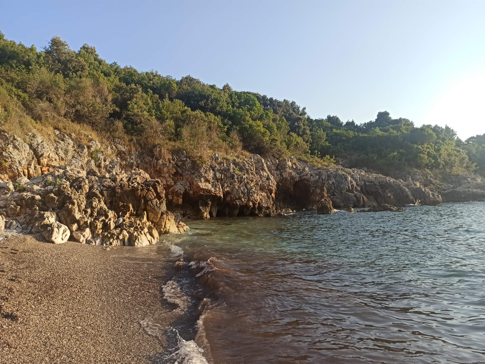 If you come there by car, you can park it not far from it at a free parking area and walk a bit to the beach. The beach has a big pebble and a very clear transparent water.