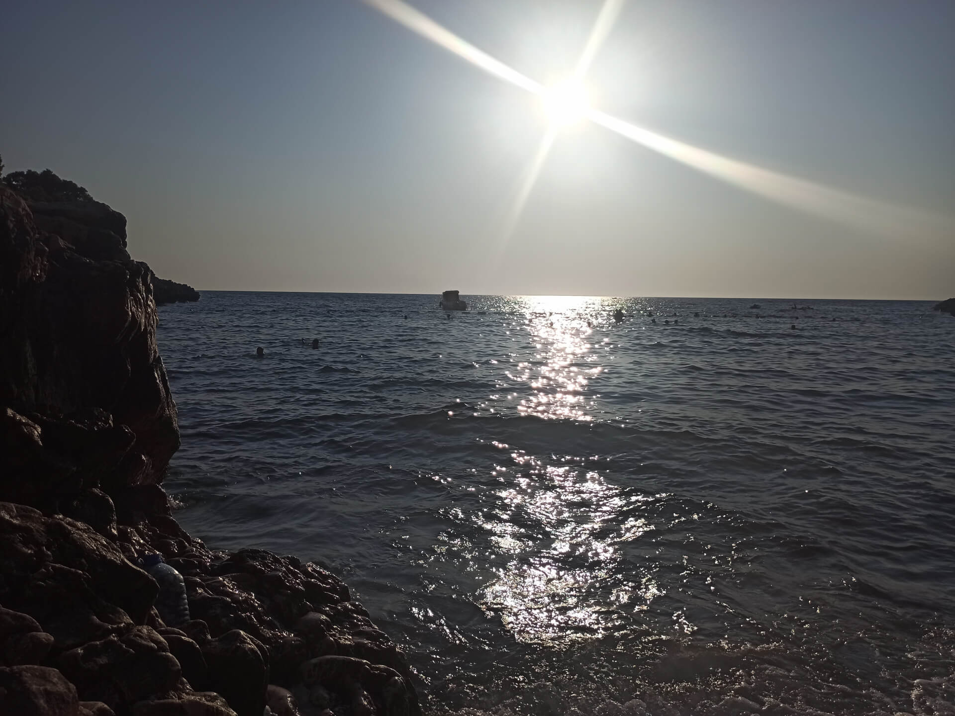 The beach is surrounded by beautiful hills and stones. Lovely trees grow at the top of the hills creating natural shadow and beauty. Naturally located big stone divide the beach to two parts. One of them is a tiny little private beach. It looks really lovely. In general, it's not very popular beach so there are mostly guests from the hotel and close accommodations. That's why you can enjoy the sea and surrounded area far from crowded popular beaches.