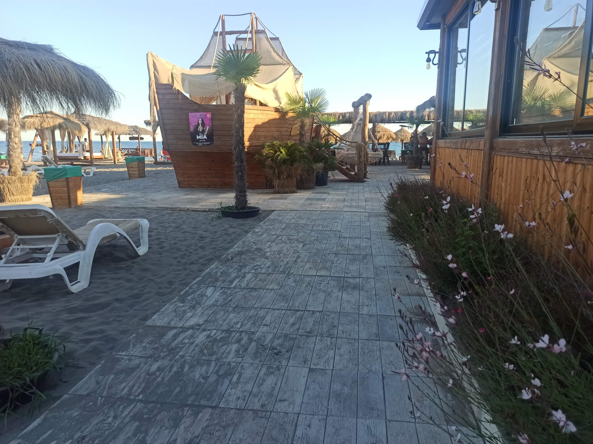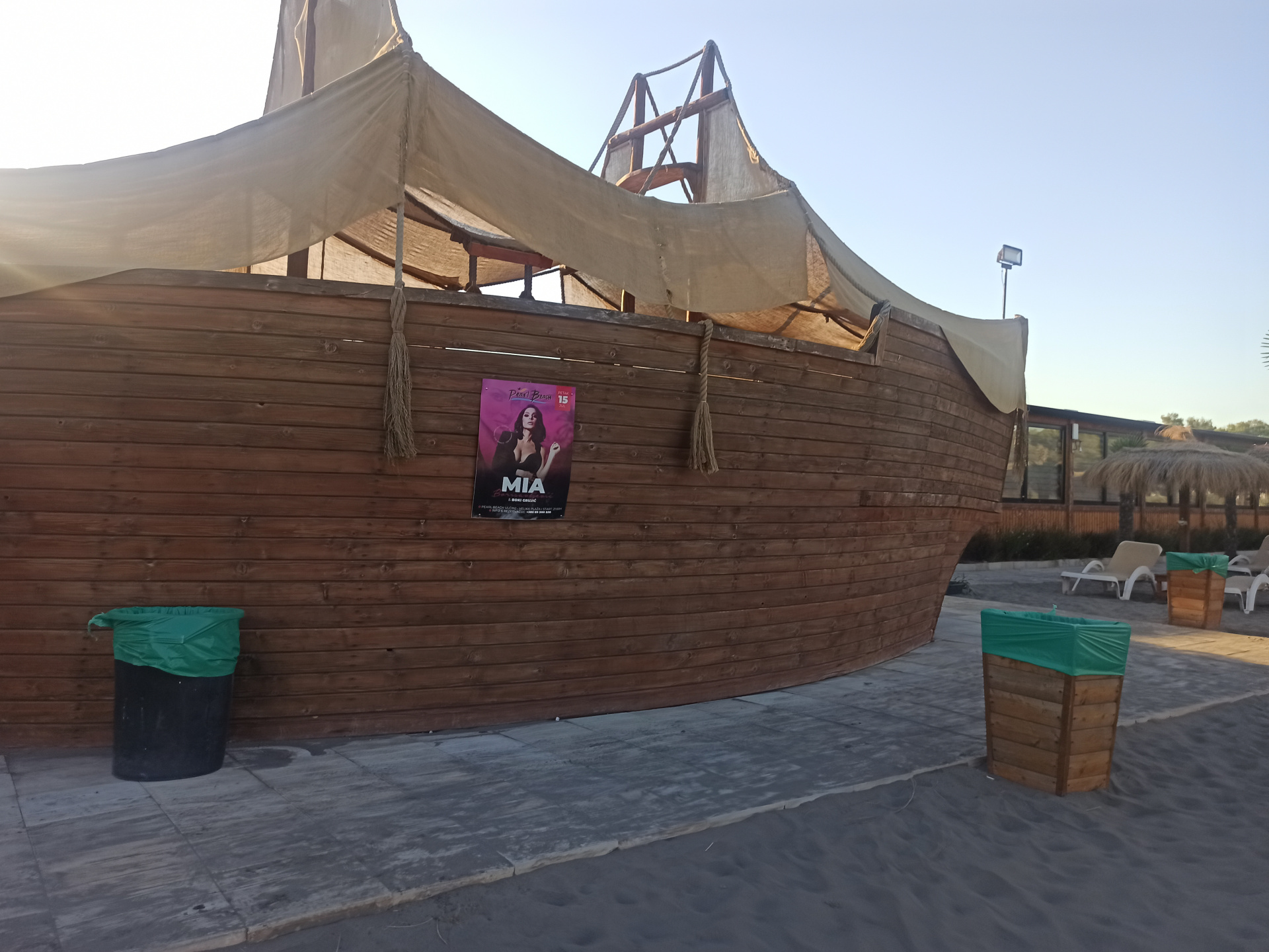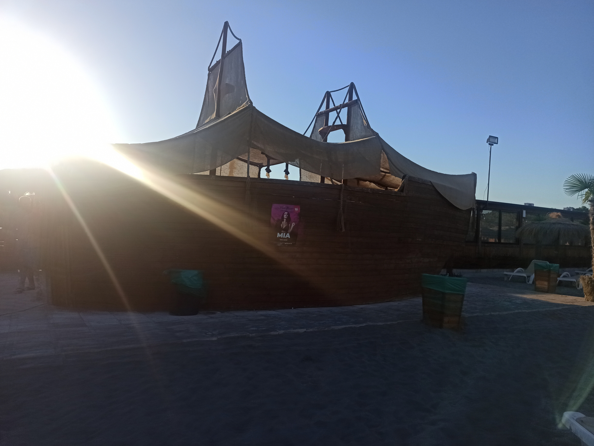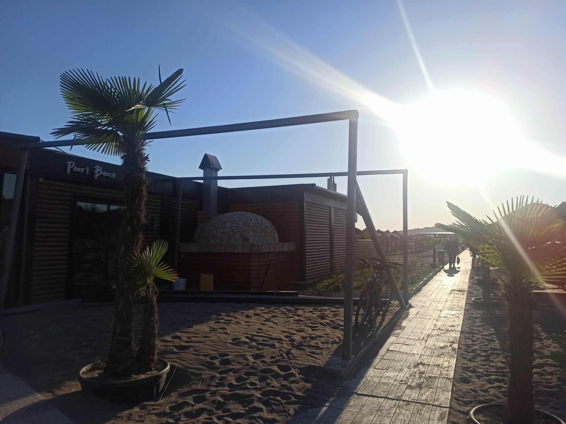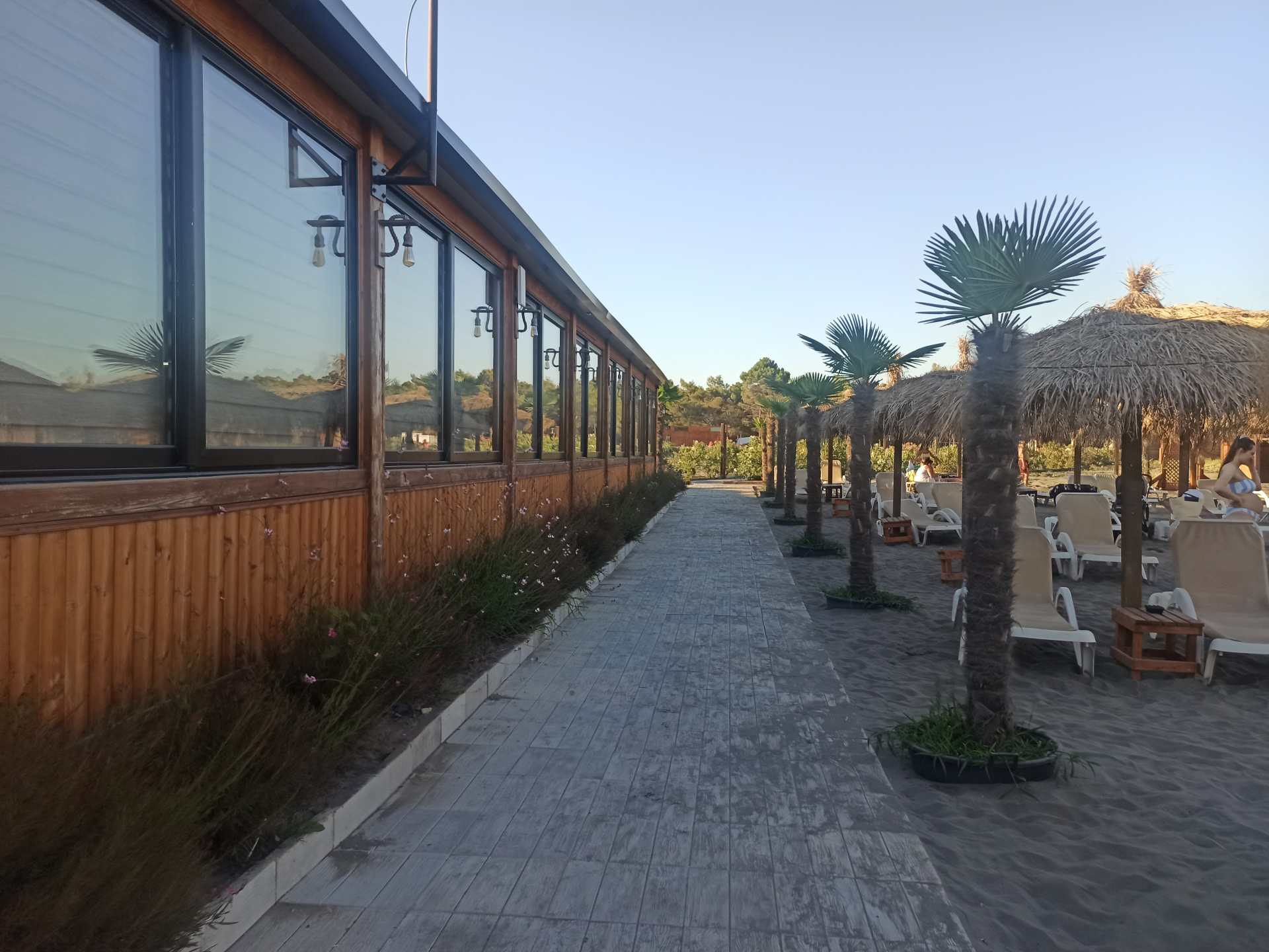 The beach has unique ships at the entrance to the beach for cars and the other one at the beach next to the bar. They make the beach look unique and wonderful. As other beaches there is a wonderful playground for kids. Of course, beach has showers, toilets, changing rooms, big parking. The trail to the beach is decorated with beautiful natural flowers and cozy lights.