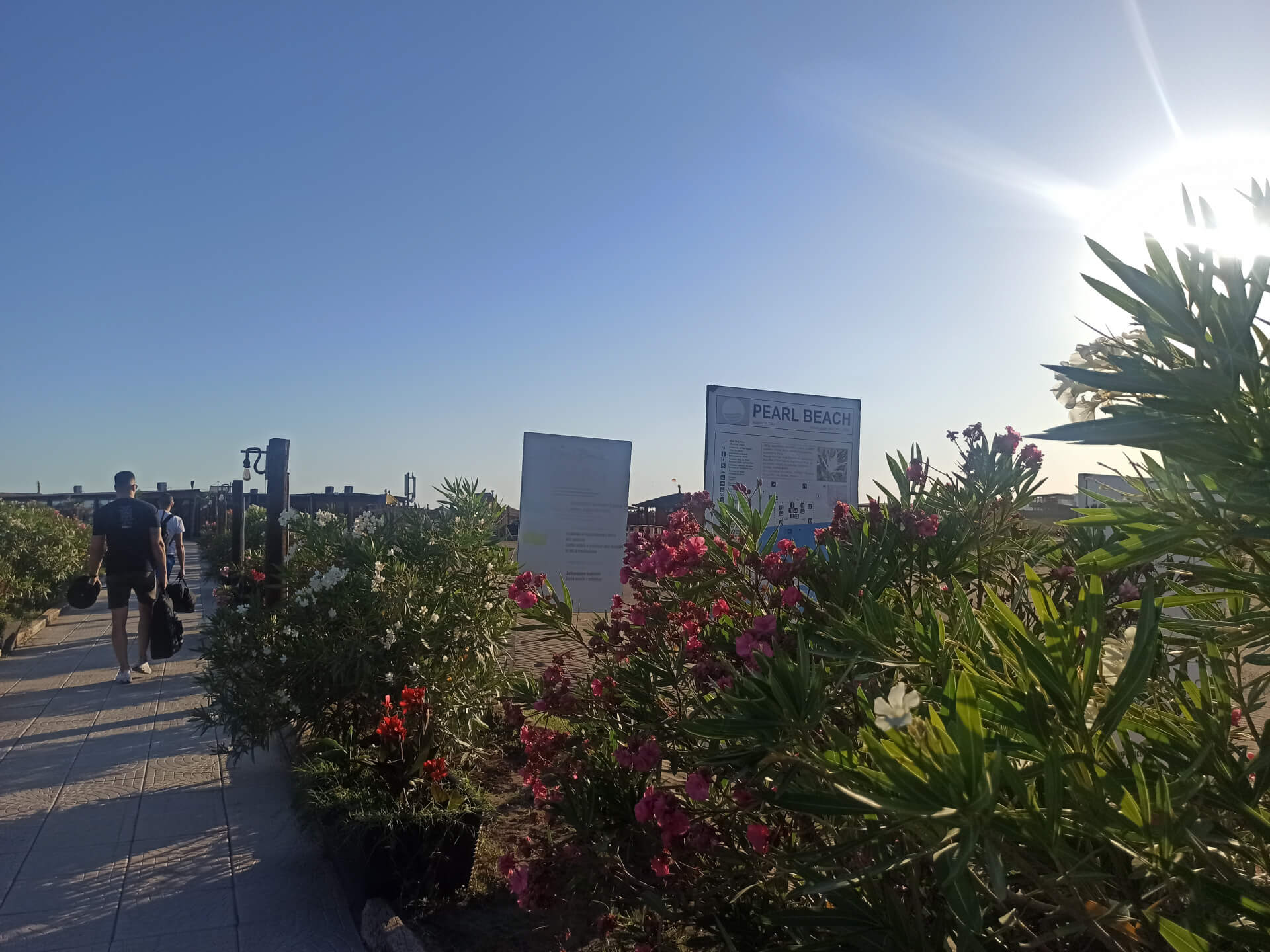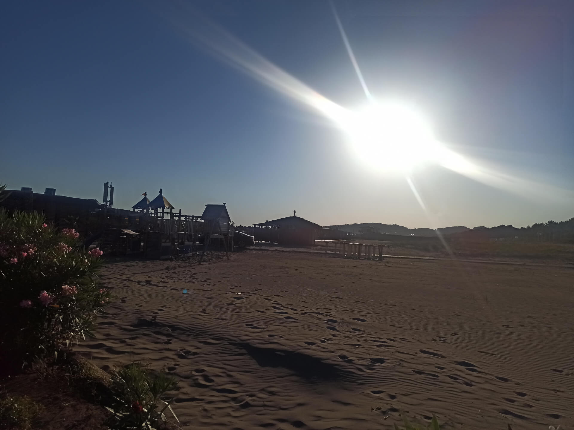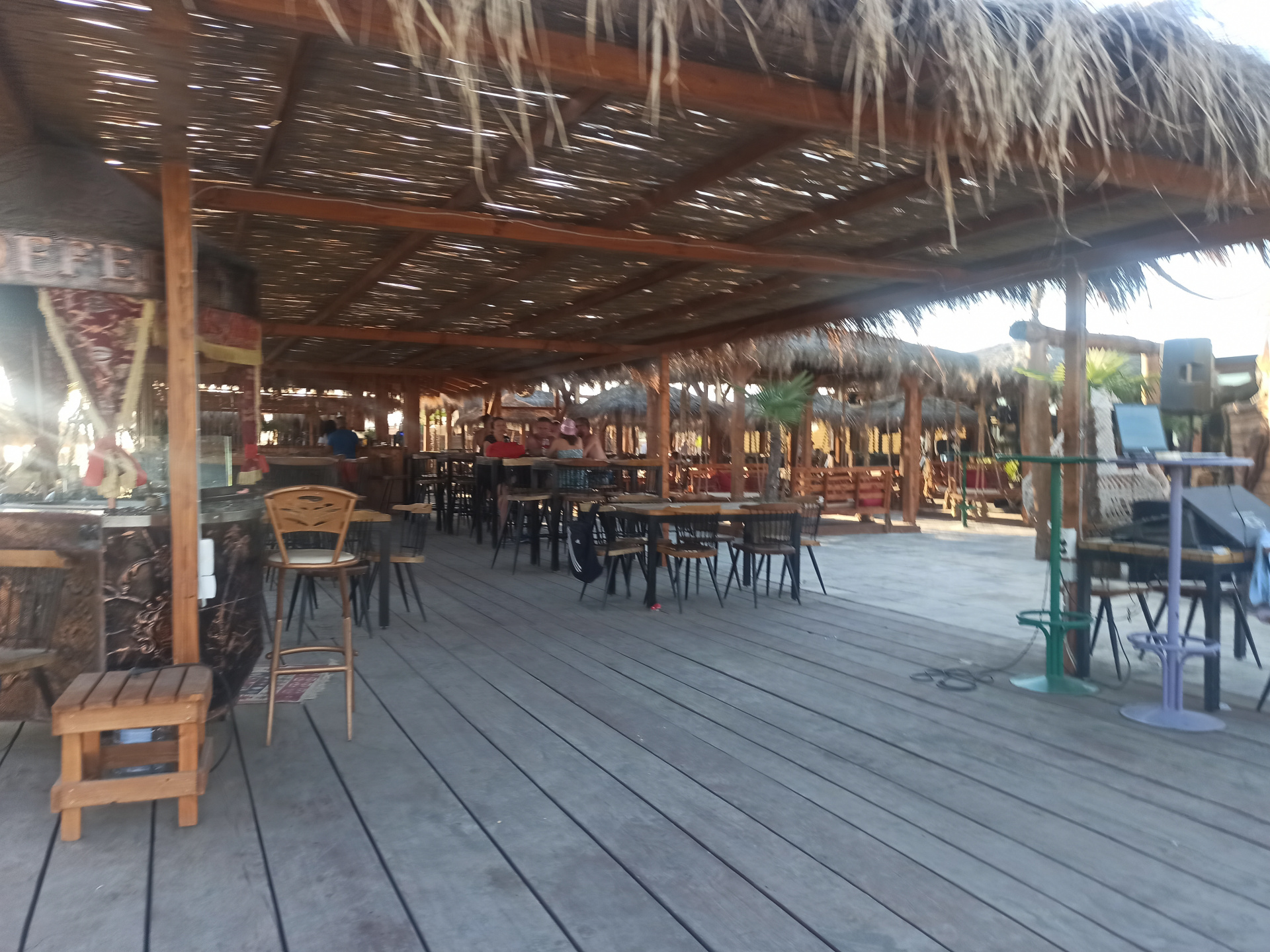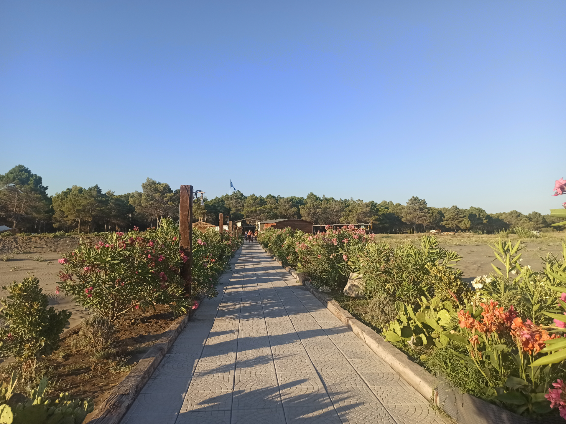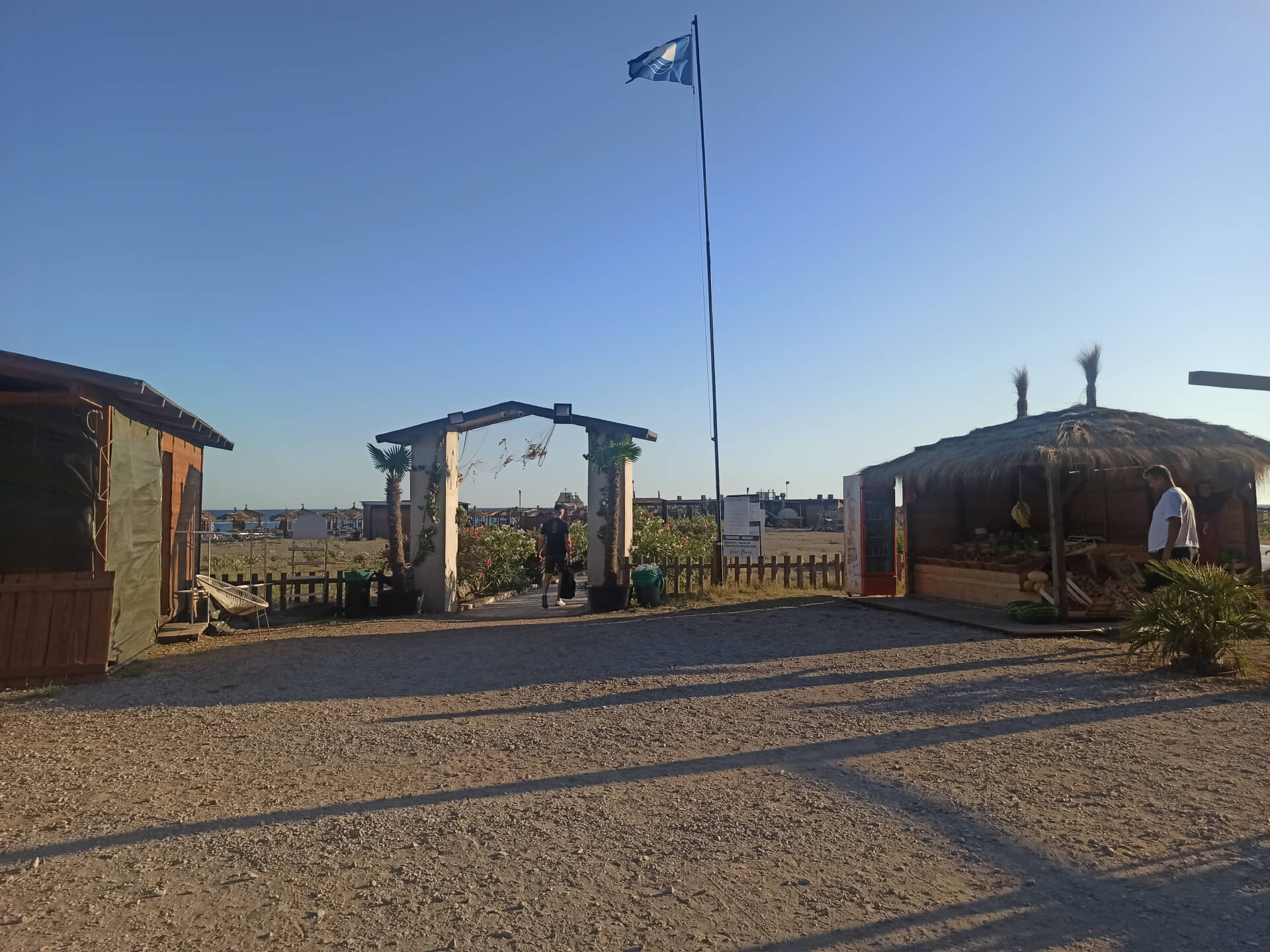 The beach has unique ships at the entrance to the beach for cars and the other one at the beach next to the bar. They make the beach look unique and wonderful. As other beaches there is a wonderful playground for kids. Of course, beach has showers, toilets, changing rooms, big parking. The trail to the beach is decorated with beautiful natural flowers and cozy lights.