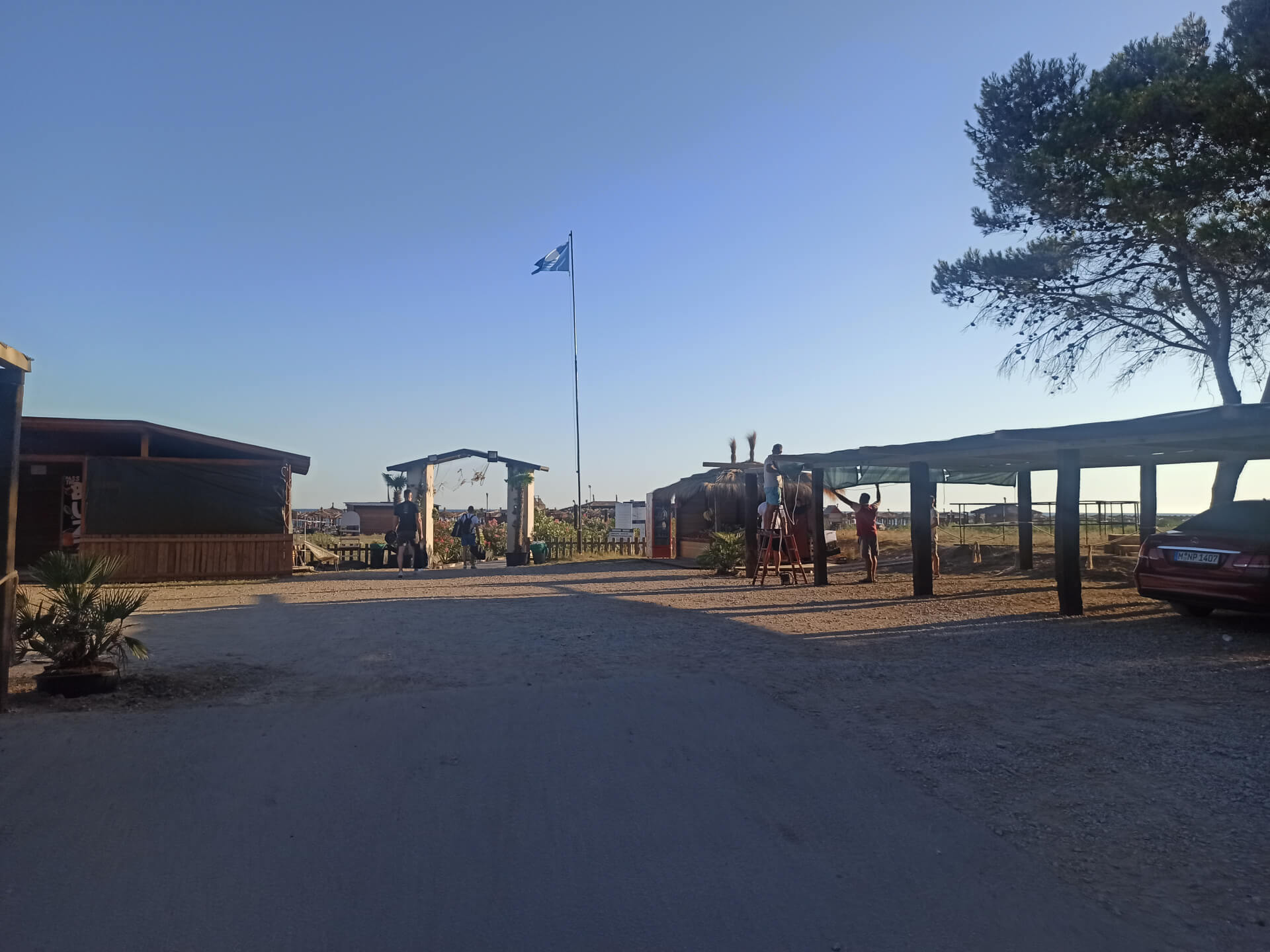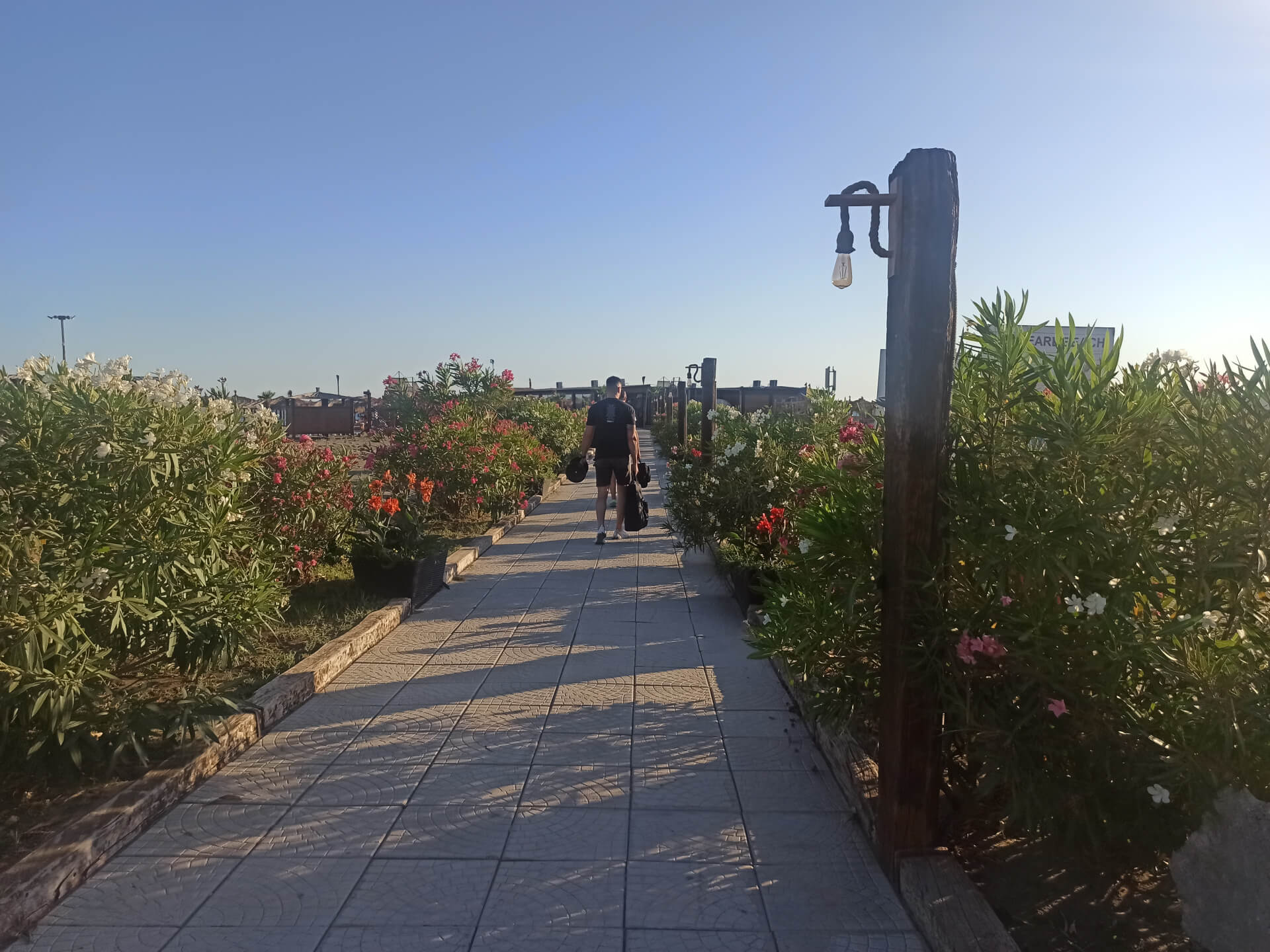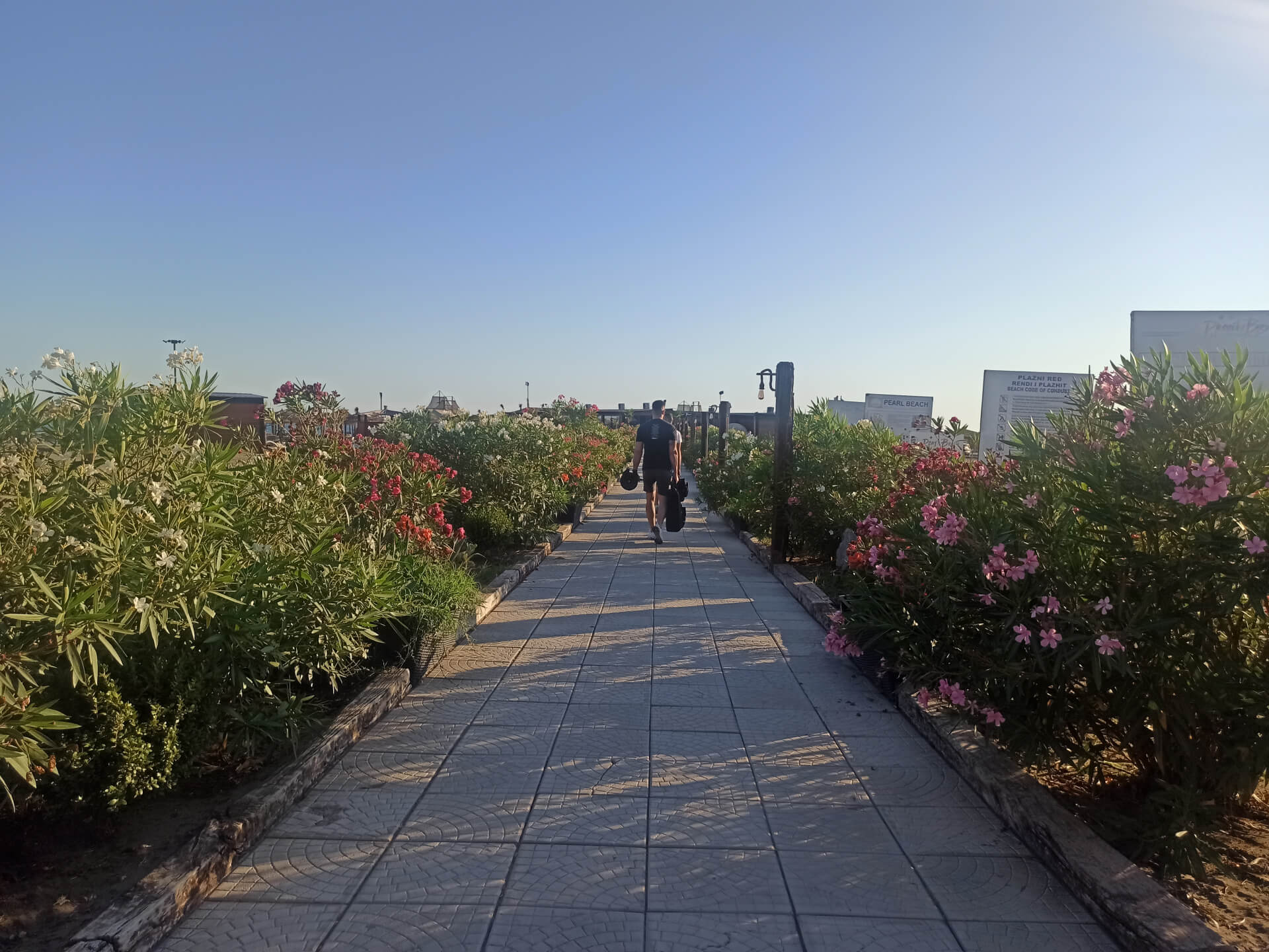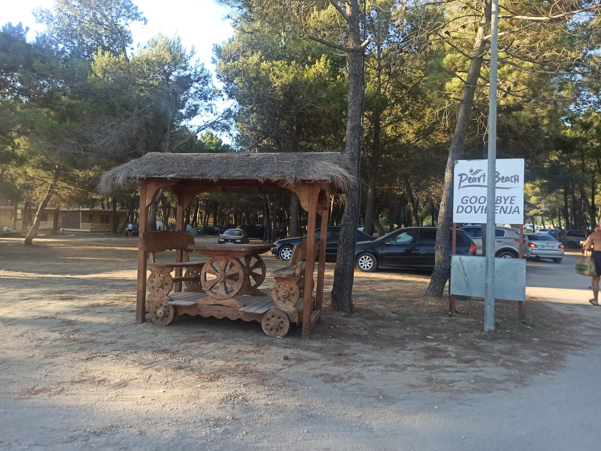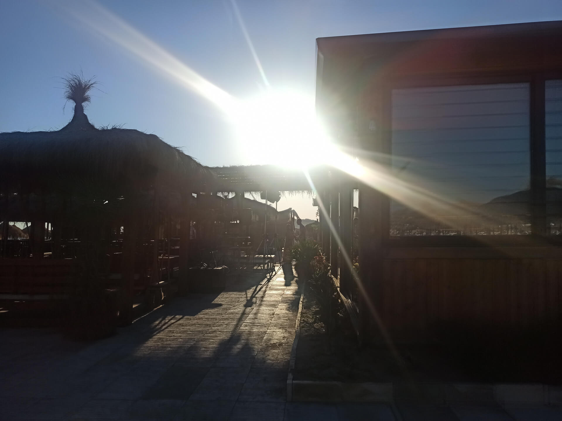 The beach has unique ships at the entrance to the beach for cars and the other one at the beach next to the bar. They make the beach look unique and wonderful. As other beaches there is a wonderful playground for kids. Of course, beach has showers, toilets, changing rooms, big parking. The trail to the beach is decorated with beautiful natural flowers and cozy lights.
