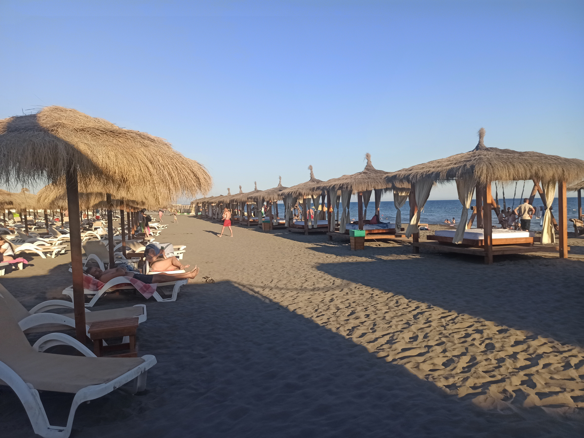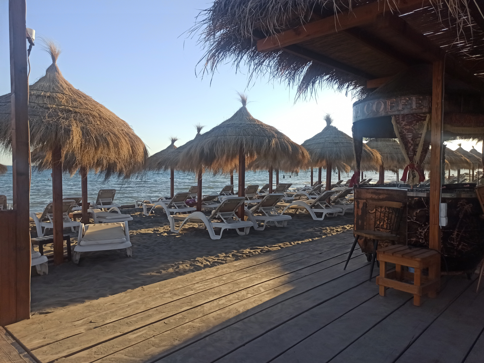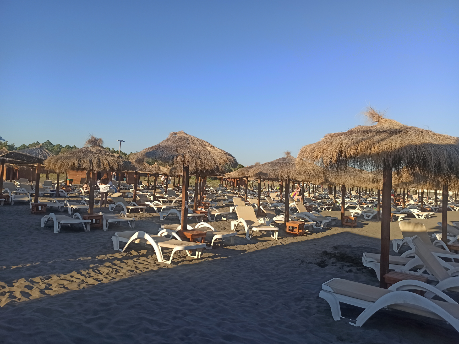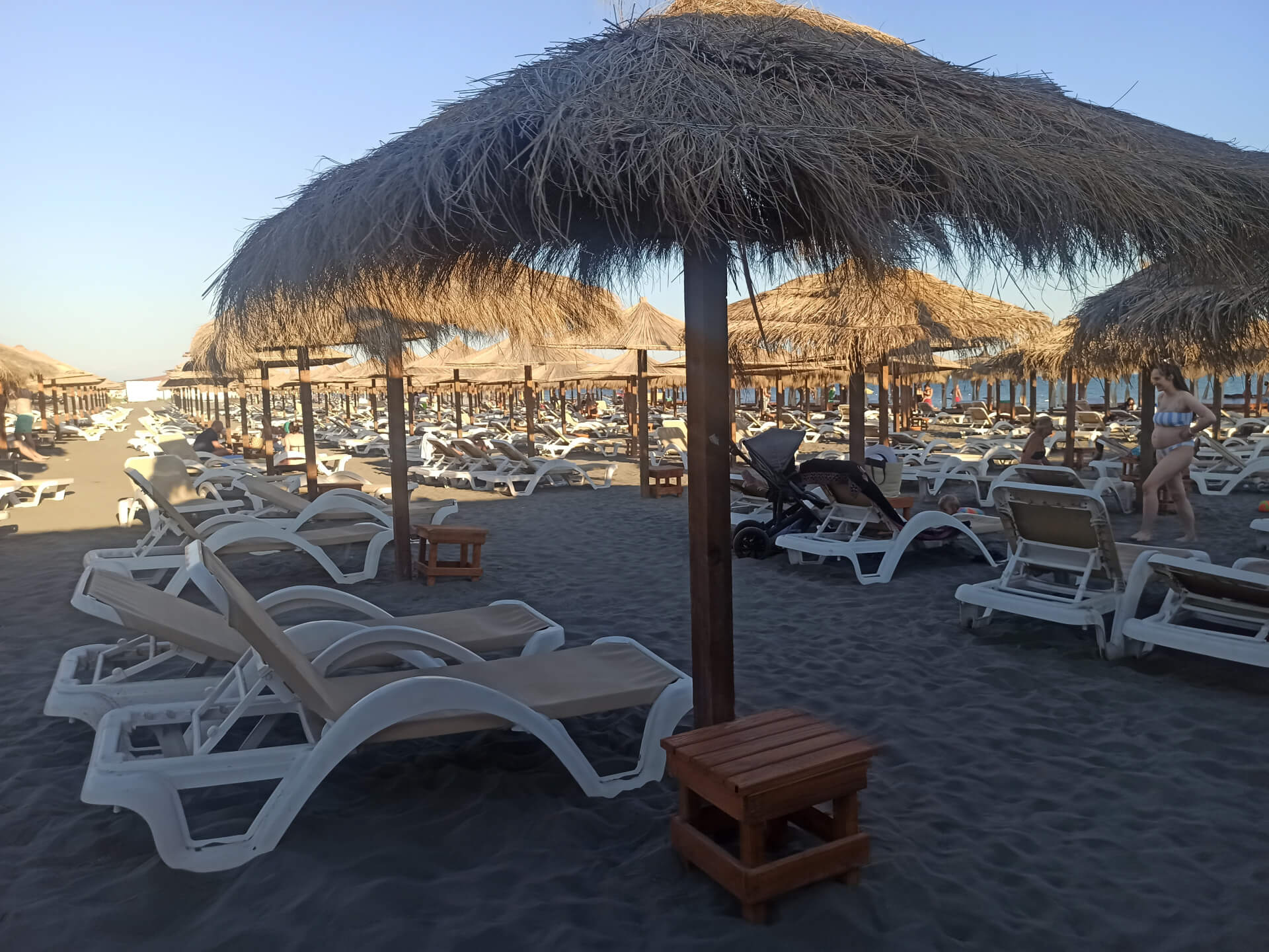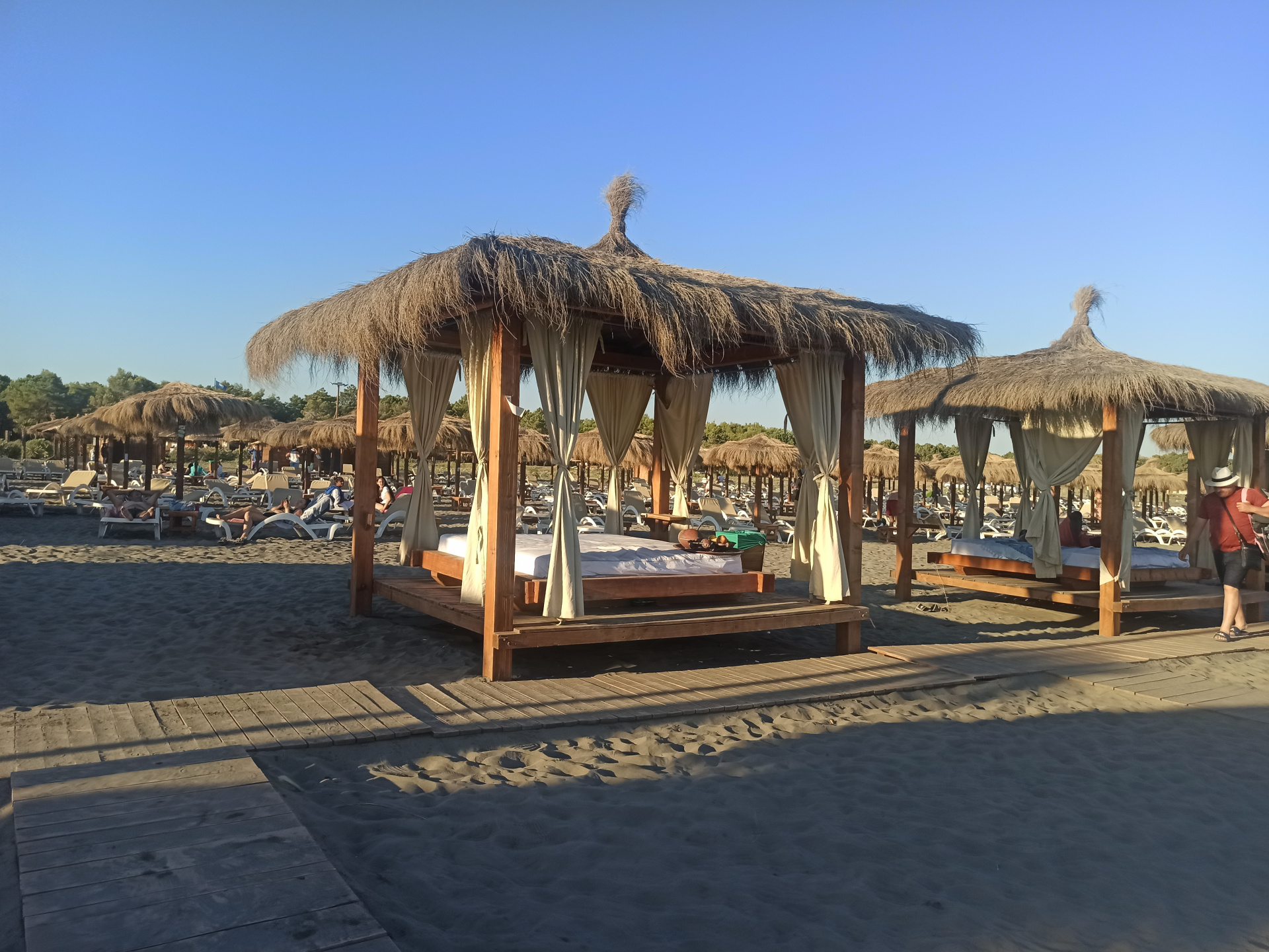 Blue Flag. This award is a symbol of high quality beach with great services. The beach has all types of beach furniture - sunbeds, loungers, umbrellas, and others that you can rent. VIP beds look very cozy and luxury. The beach offers different parties with some celebrity musicians.