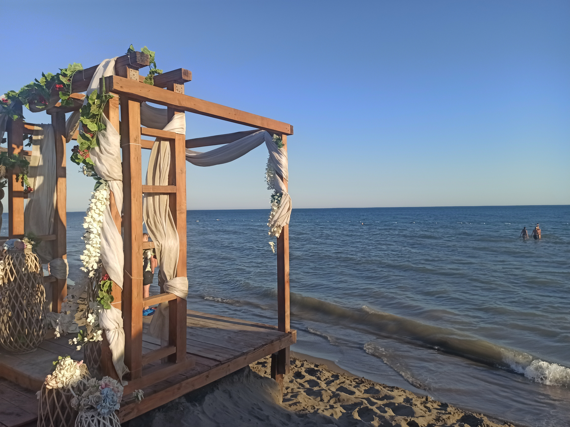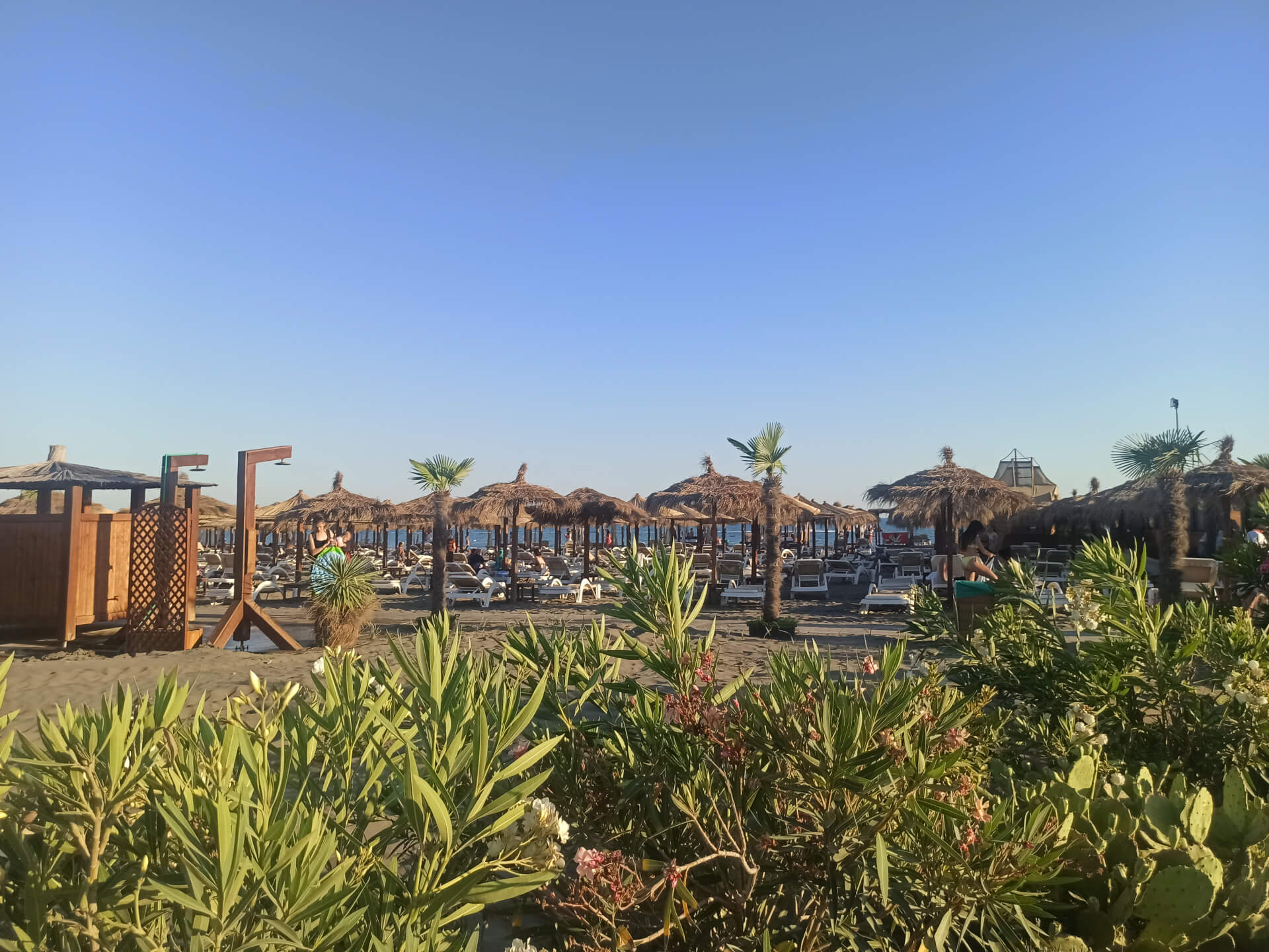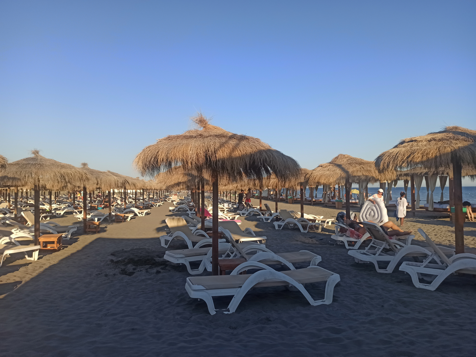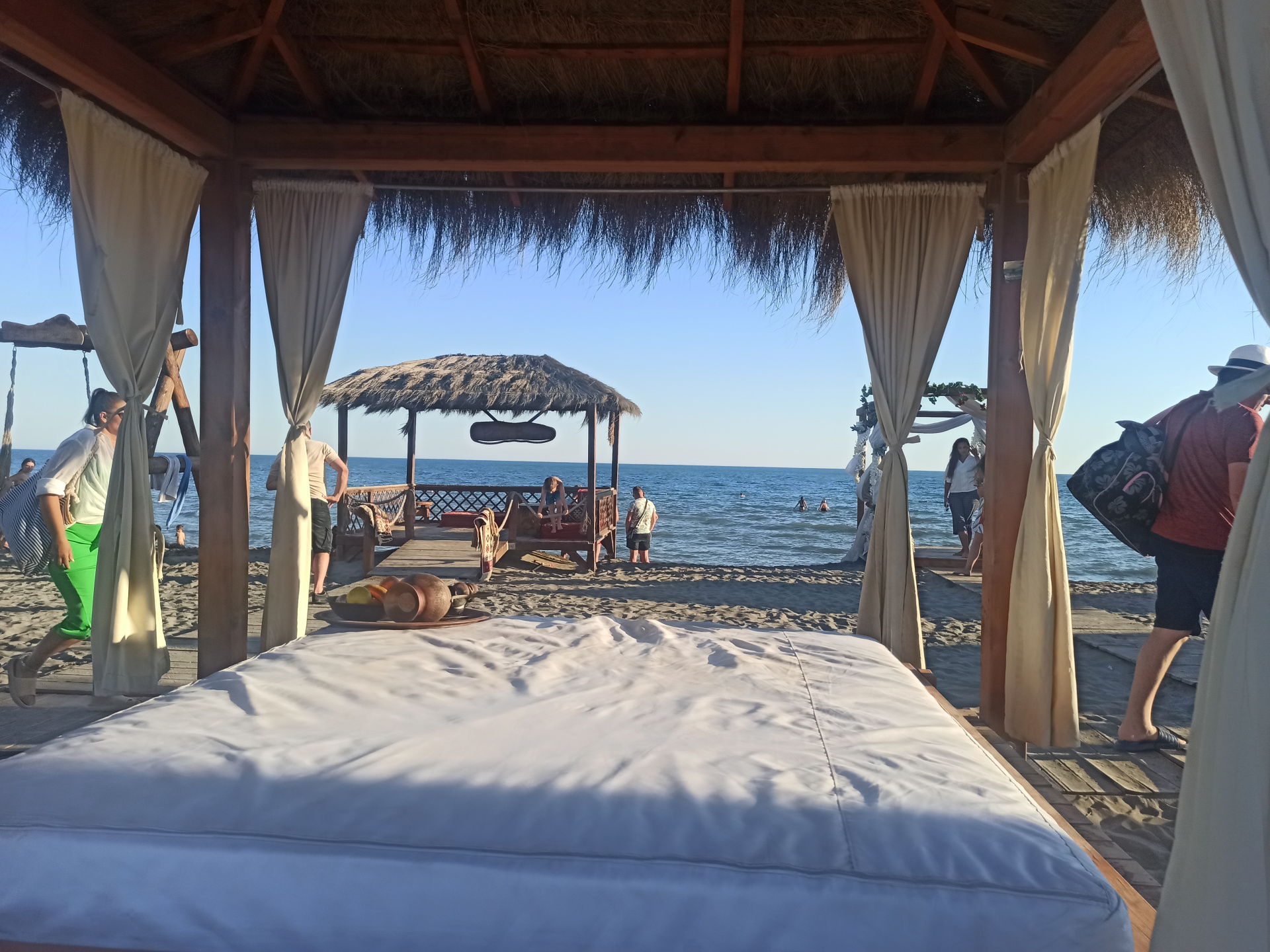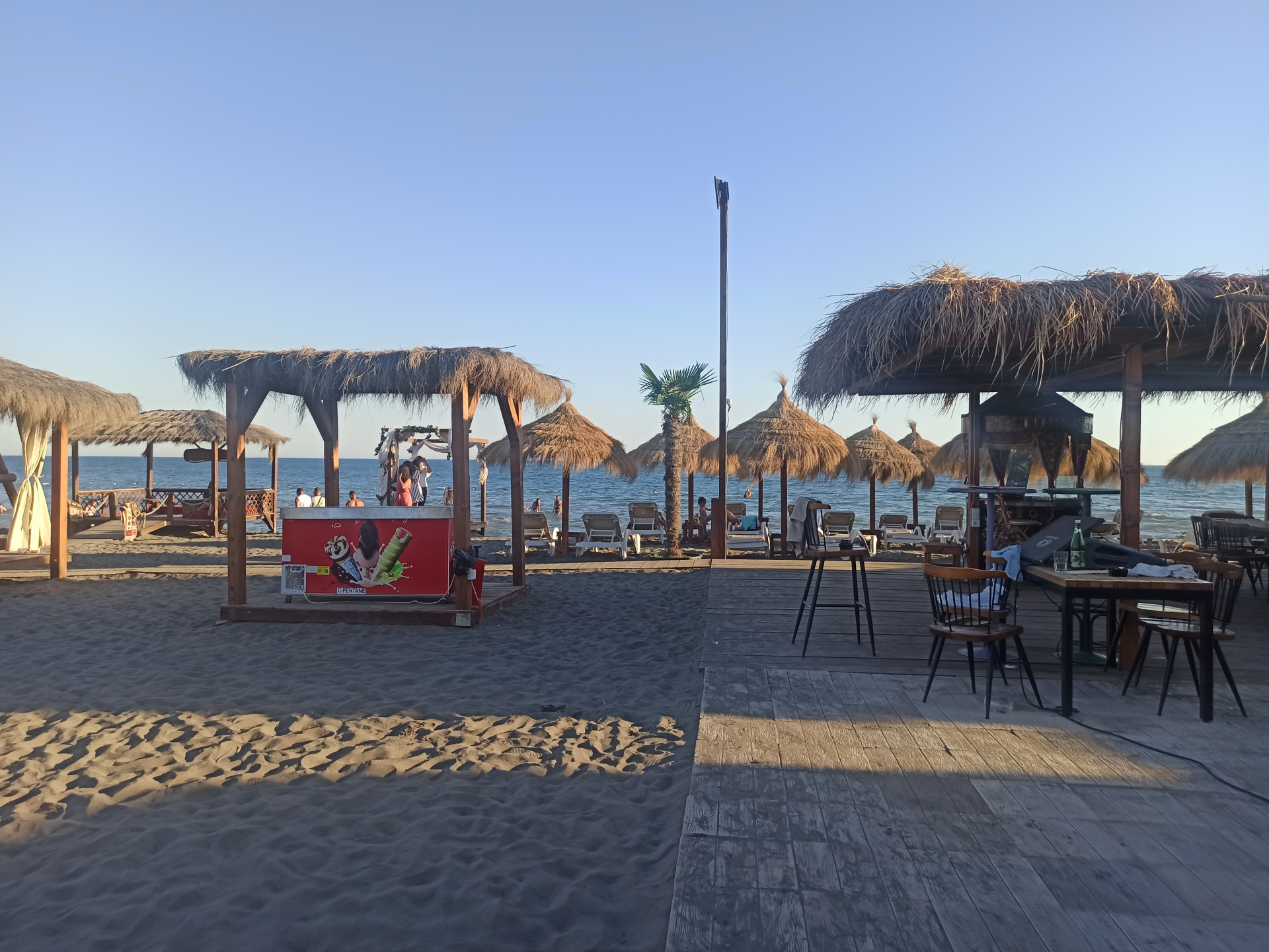 Blue Flag. This award is a symbol of high quality beach with great services. The beach has all types of beach furniture - sunbeds, loungers, umbrellas, and others that you can rent. VIP beds look very cozy and luxury. The beach offers different parties with some celebrity musicians.