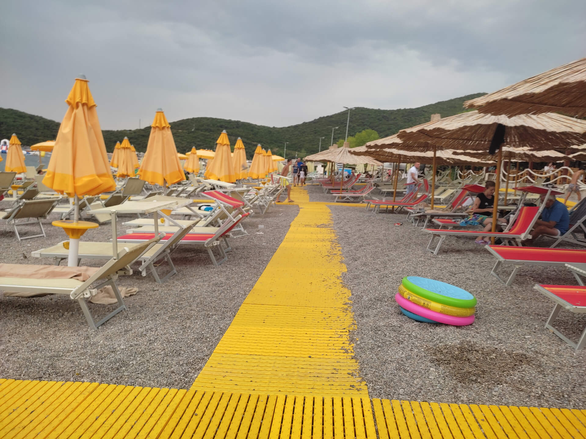 Budva city and has a really beautiful coastline. The beach has everything needed - comfortable sunbeds, loungers with umbrellas, toilets and changing rooms and a lot of space for active games and rest by the sea. At a high season the beach could be crowded. The sea is very pleasant and clear on the beach. It's a wonderful place for beach rest.