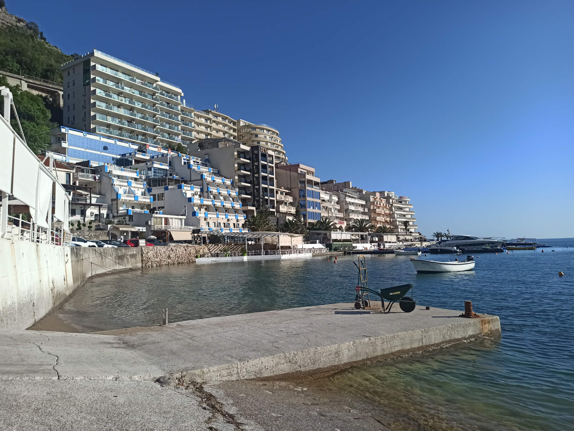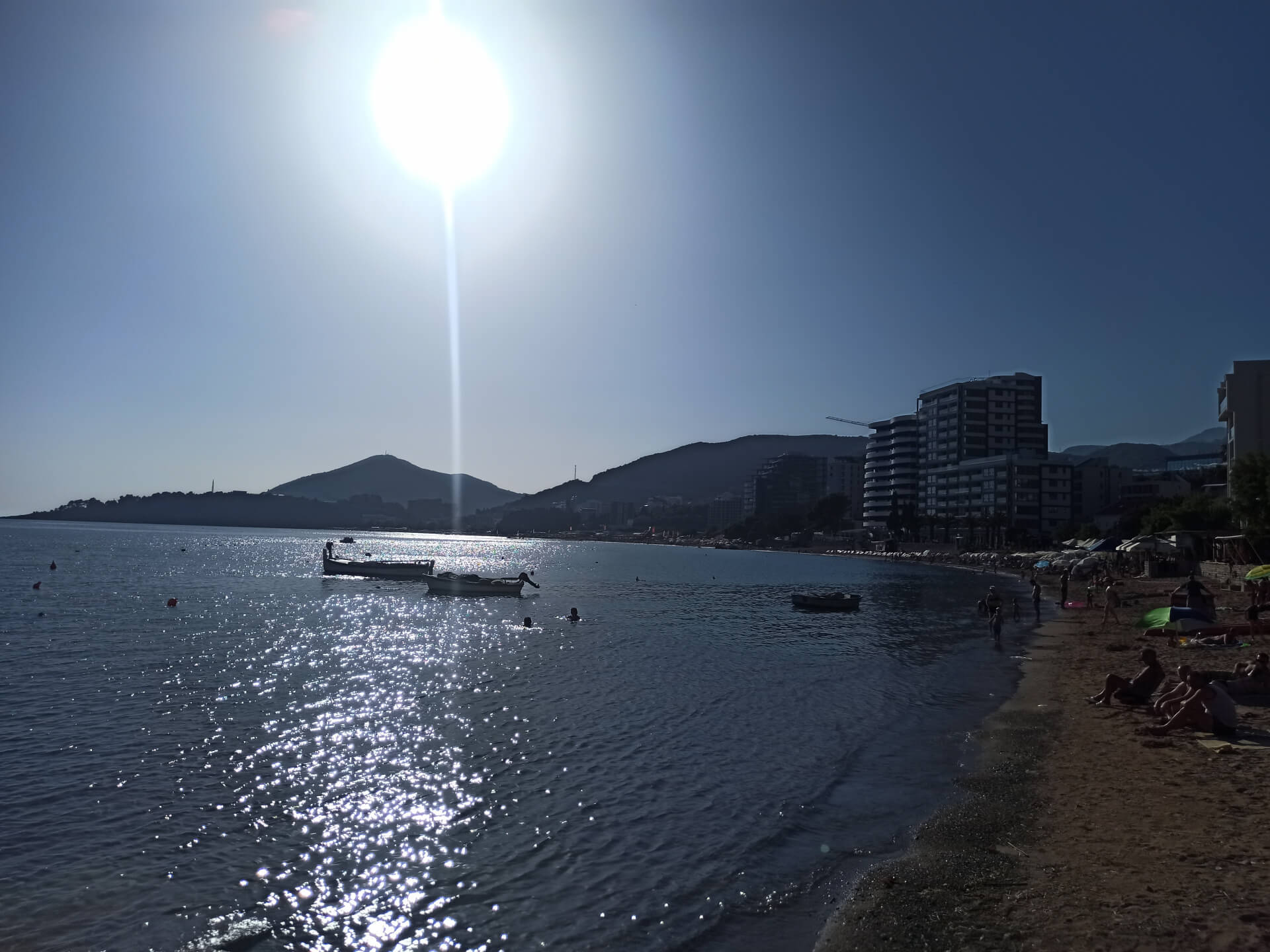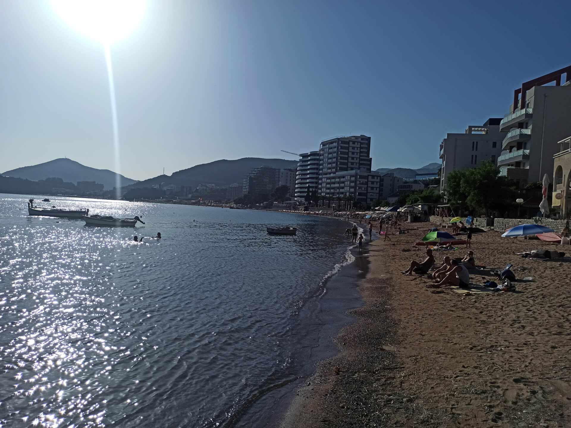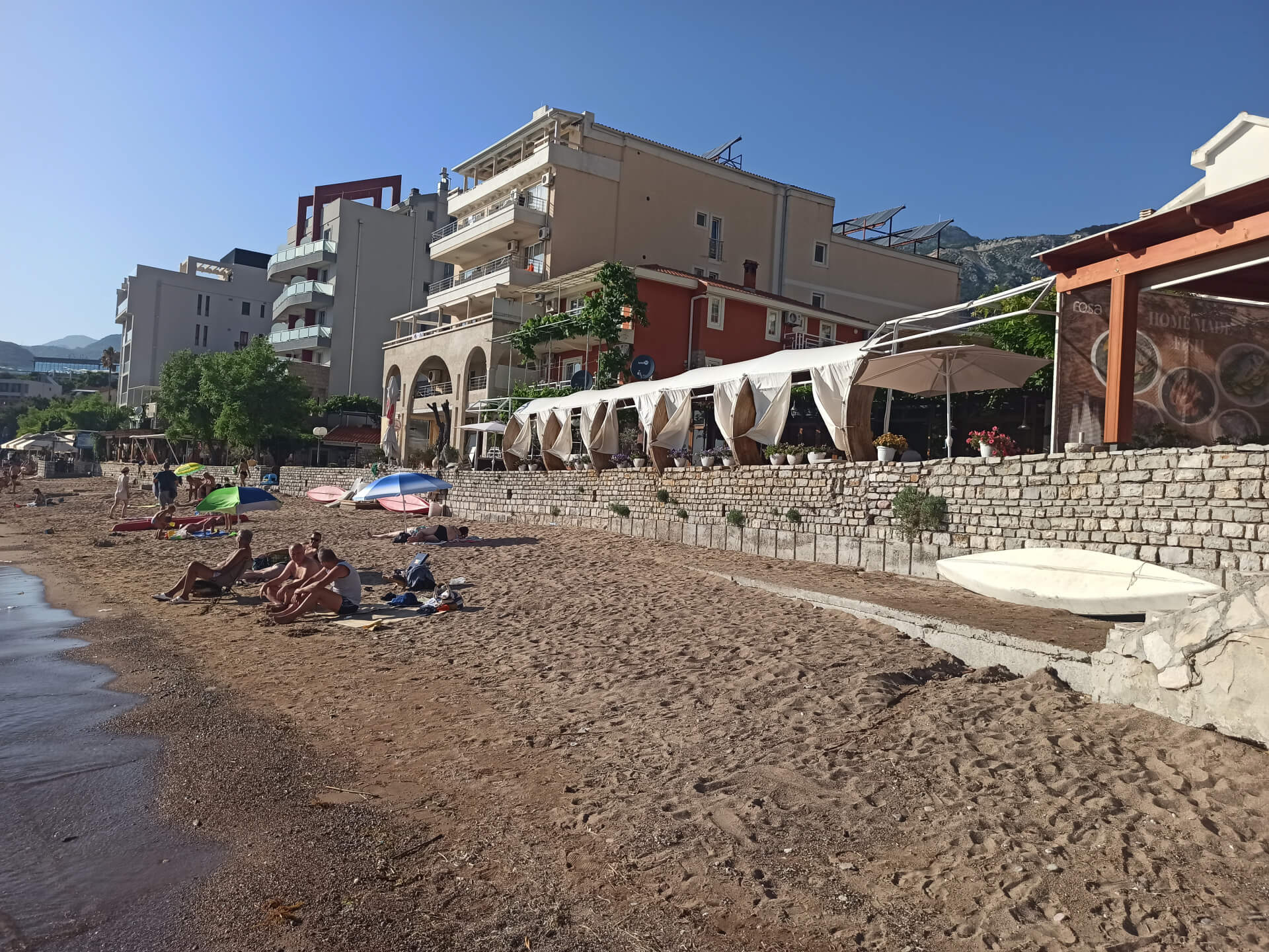Becici beach as they are parts of the same long coastline. The beach isn't very wide so at the high season there are a lot of people there. You will find a nice promenade and hiking trail for walking. There are also playgrounds for kids so a lot of families with kids chose this part of the riviera for vacation.