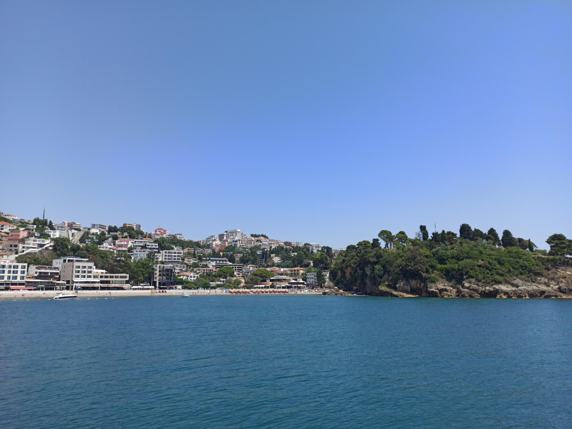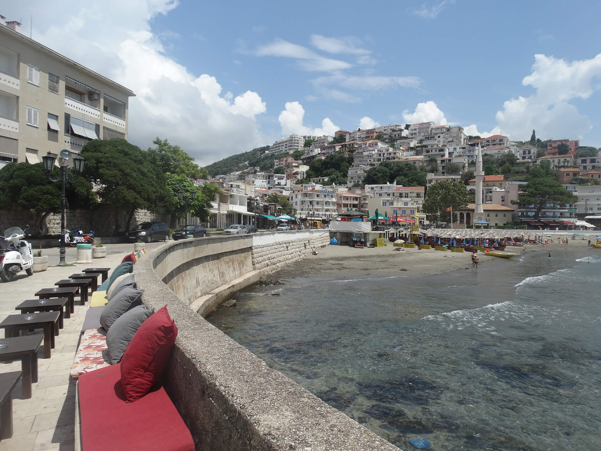 There are areas with paid sunbeds and umbrellas as well as a free part of the beach where you can rest on your own, play with kids on the sand. The sea is great there - not too deep nor too shallow but it's perfect for kids and their parents. There are a lot of supermarkets around, cafes, restaurants and other infrastructure. It's very close to the border with Albania so you can travel there as well.
