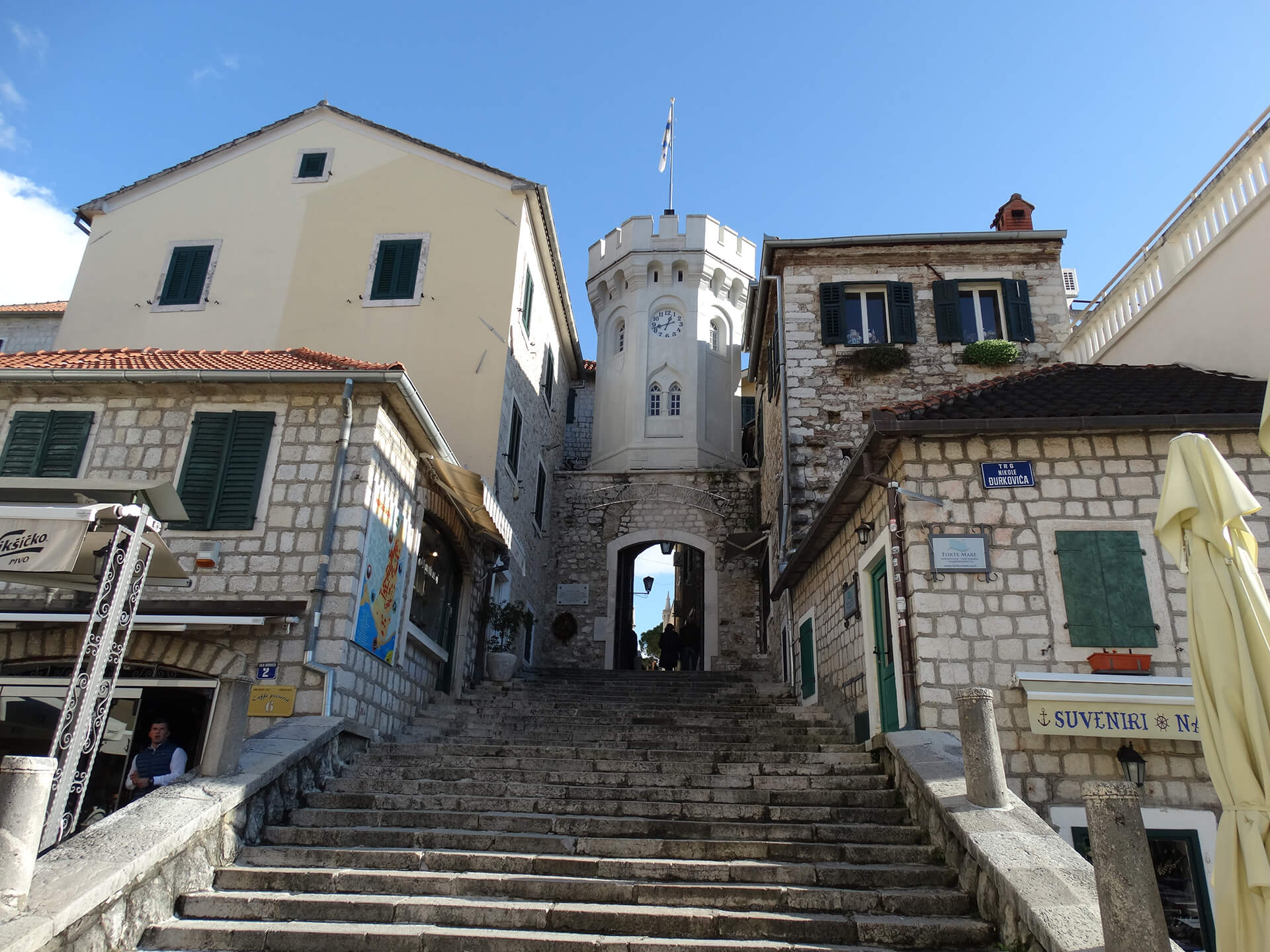 Herceg Novi is a coastal city of Montenegro, located very close to the border with Croatia. It's an old and a very beautiful city which is pretty popular for tourists including famous ones. It is located in the bay of Adriatic sea so there are no big waves there. The city has a lot of stairs so you can walk to the top by stairs and enjoy beautiful view from there.