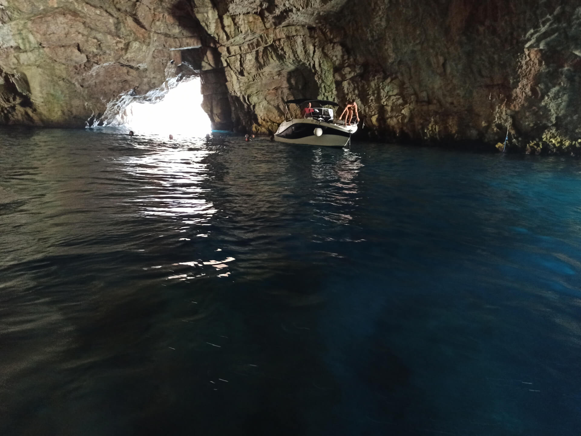 The entrance to the cave is pretty low that's why big ships will not be able to get into the cave. That's why some tours that offer long sea trips, can split the group into few to get into the blue cave by a few smaller boats. You can not only enjoy the beauty of the cave, but also swim inside the cave, exploring its cliffs and reflections in the water.