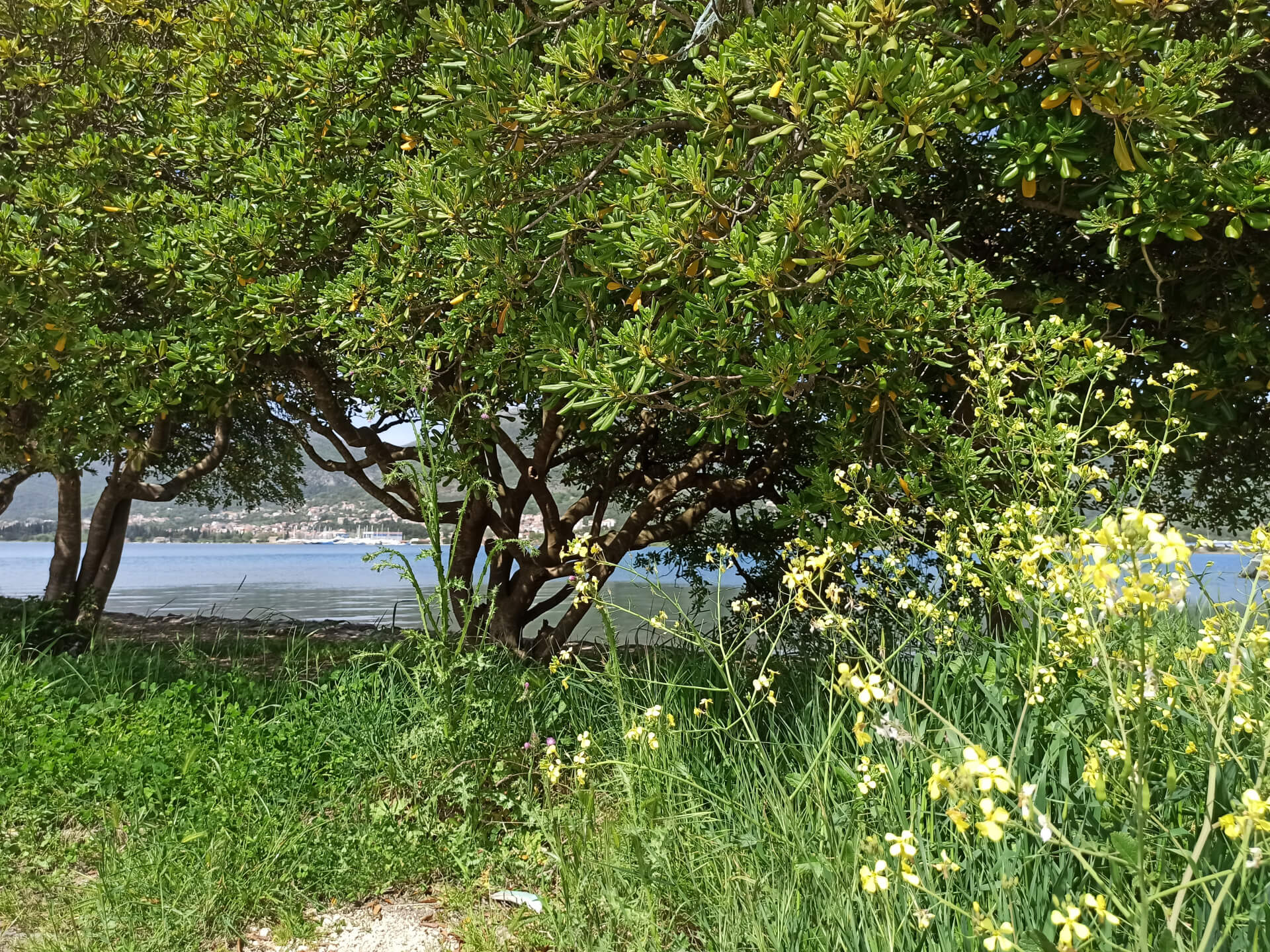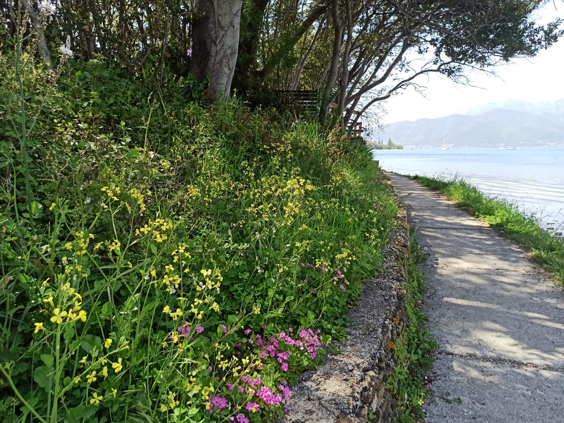 The island is very beautiful, has unique pure nature, a lot of flowers and trees. A very few people live on the island in a simple bungalows. The island of Flowers is devoted to the monastery that is built on the island a few centuries ago. There is a narrow trail along the island that is a promenade for hiking. The views from the island are amazing - you can see gorgeous mountains and a bigger island in front of it. There is an old abandoned boat near the isthmus in the sea. And it adds a specific beauty to the main landscape. It's a really beautiful place to have a wonderful walk and to enjoy nature.