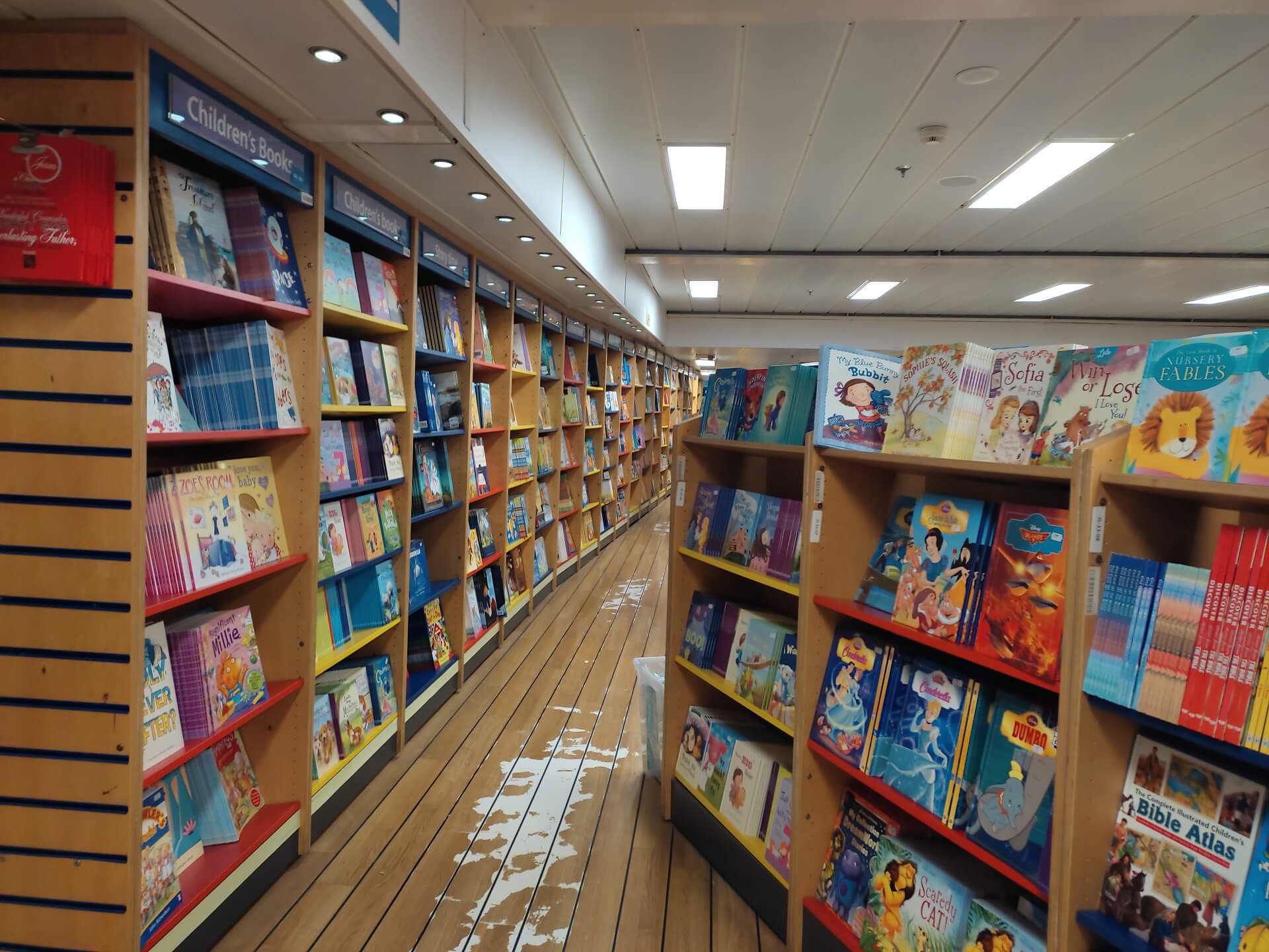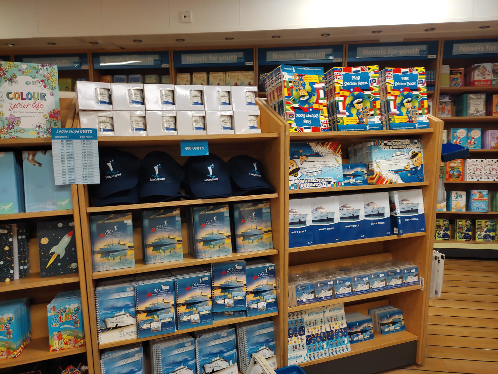 Bar. The purpose of the ship - to share knowledge, help and hope. It offers about 5000 books on their book fair. Most books are in English. There are a lot of books for kids, as well as about religion, God, faith, love. There you can also find novels, books about management, leadership, cooking. There are also books for men, women, about marriage, raising kids and much more. A lot of books have inspiring stories and a lot of learning books. You can also buy some souvenirs about Logos Hope, stickers and much more. In general, it's an incredible opportunity to dive into the world of adventure and explore the world of books.