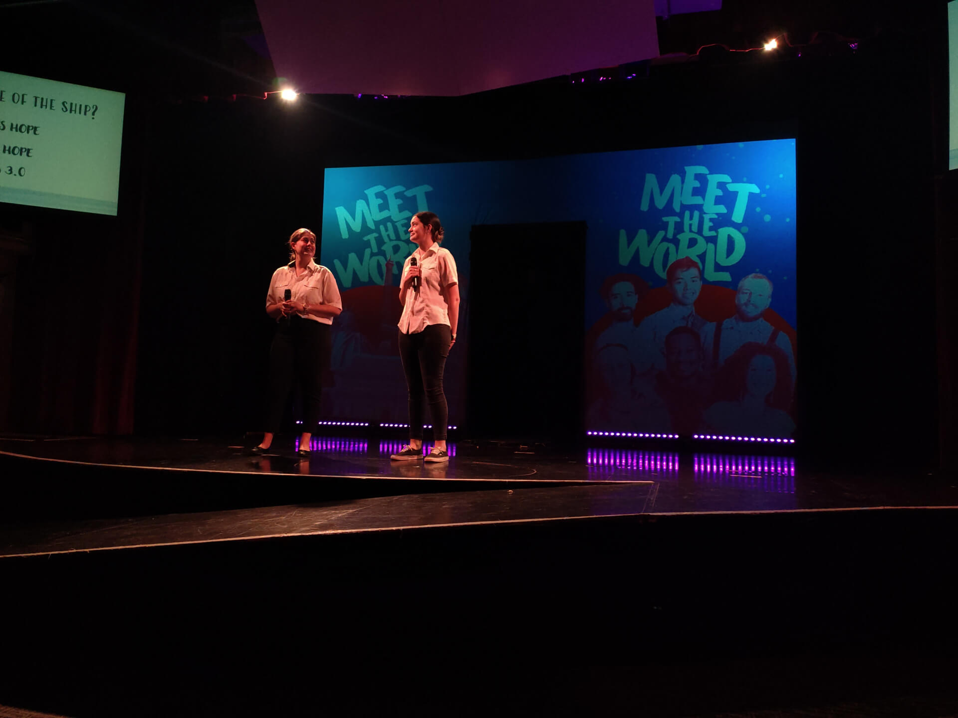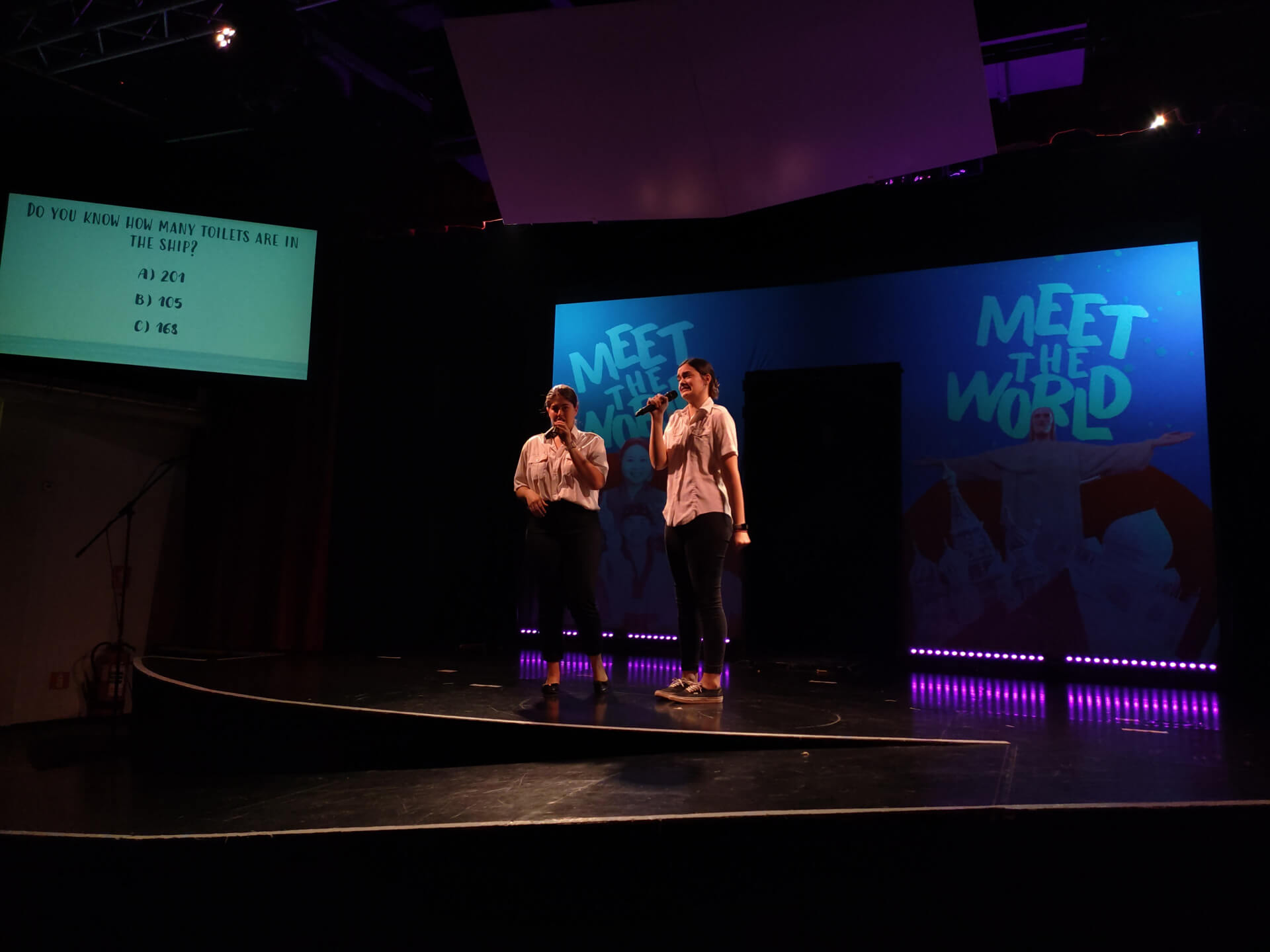 Logos Hope. The show is international and a lot of crew members from many different countries take place in the show. The show is musical, very positive and inspiring. You watch is with one breath. It is about exploring the world while sailing Logos Hope and getting familiar with different countries and their inhabitants. The show makes us feel that everyone is unique and at the same time we are deeply connected. It transfers the idea of oneness of all the people and peace we all can achieve from within while having faith in God.