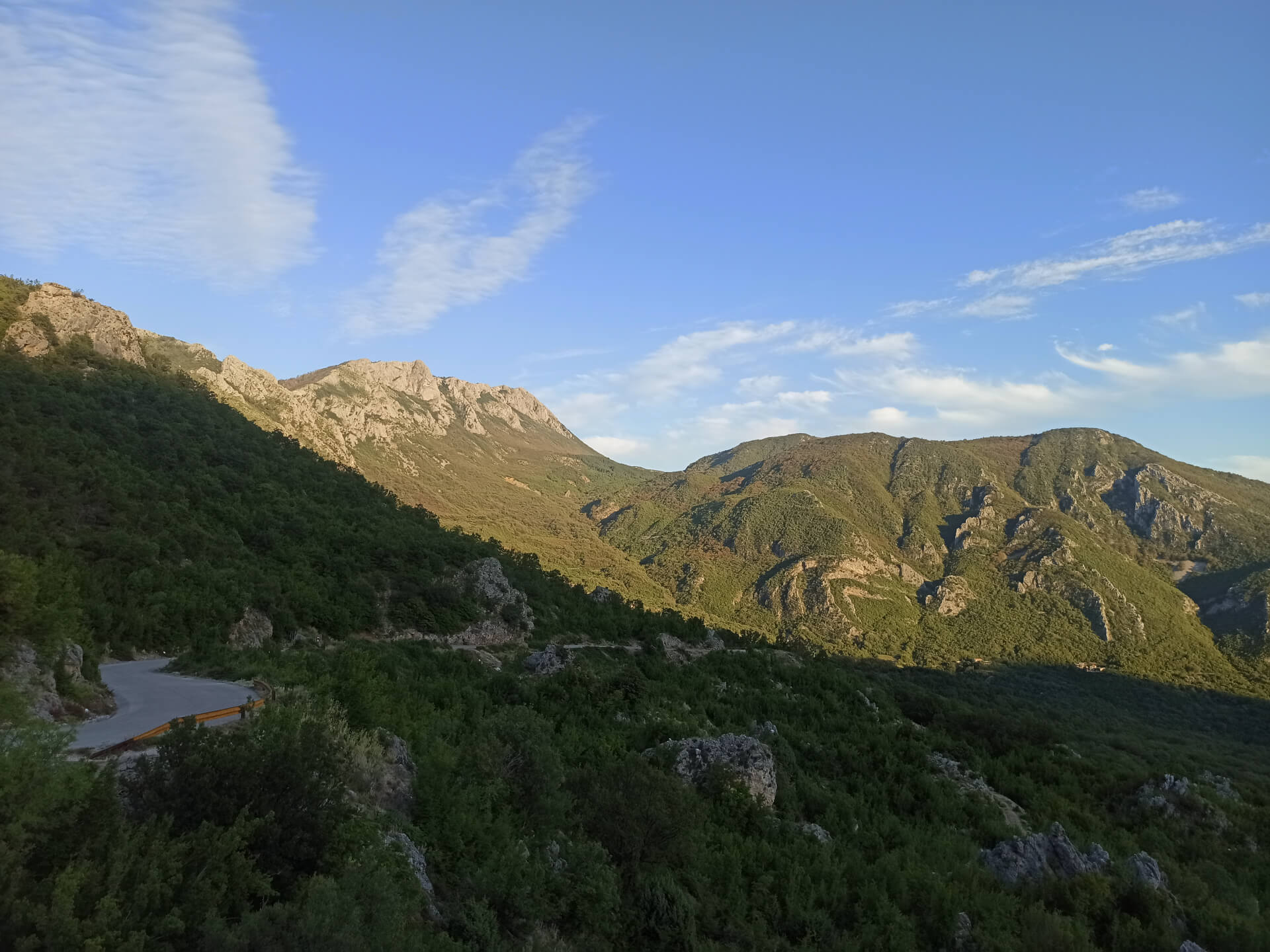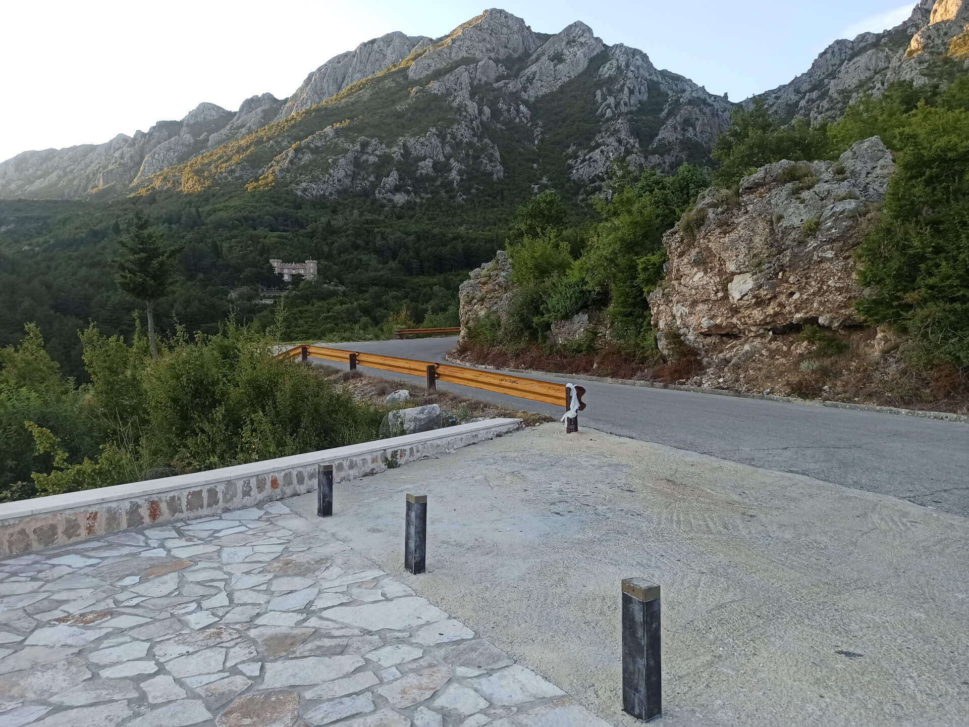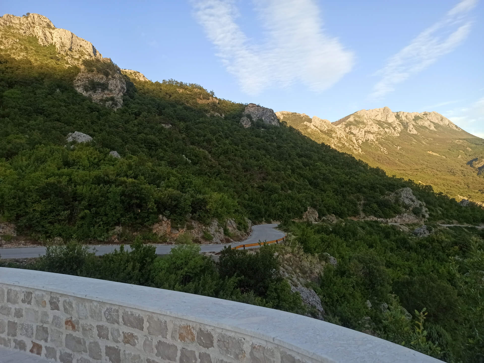 National Park Skadar Lake. It isn't very popular road so the traffic isn't busy there. That's why you can enjoy the views. The valley is beautiful there, with a lot of trees and some flowers. You can see a private castle located not far from it as well. It's a nice place to visit.