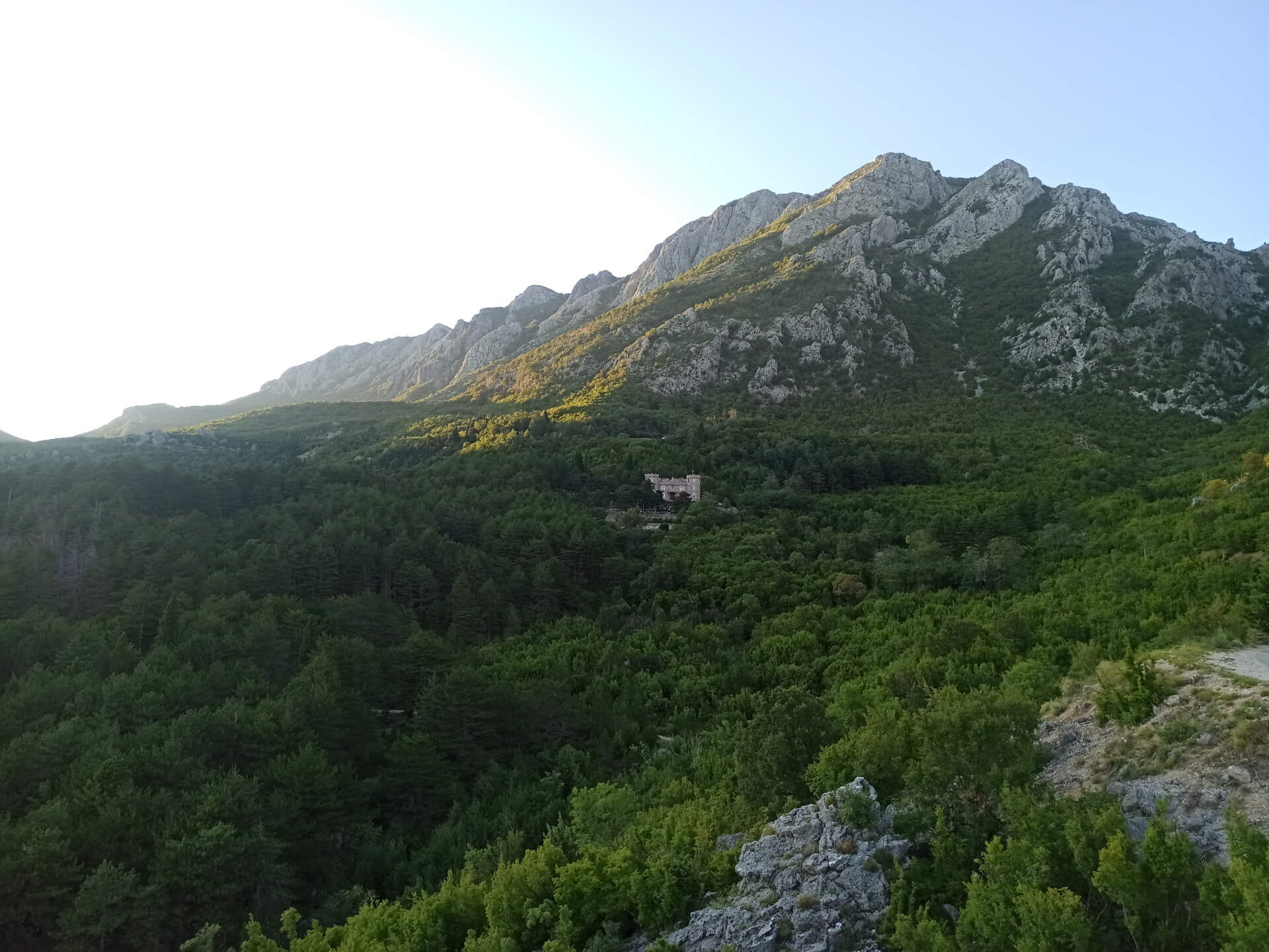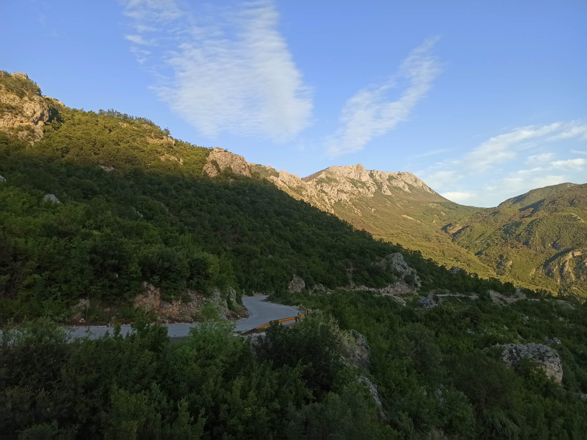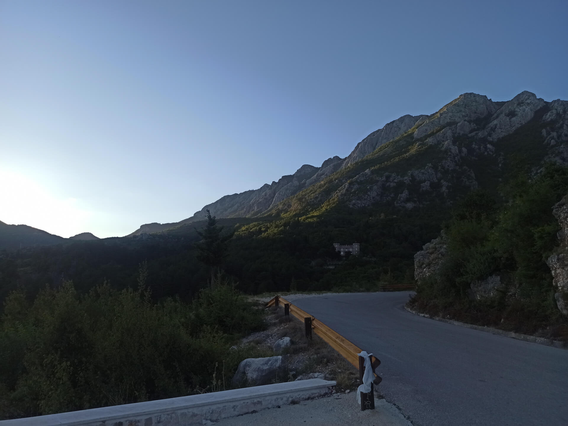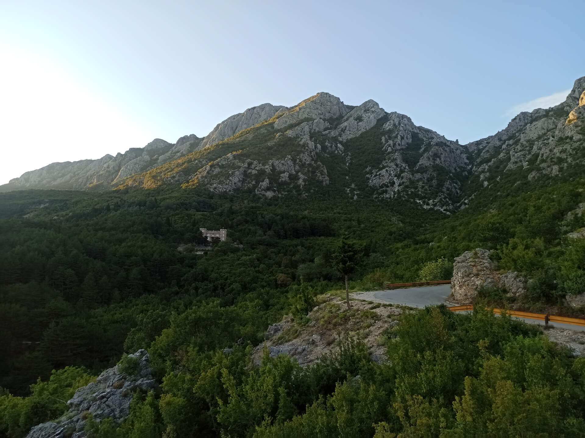 National Park Skadar Lake. It isn't very popular road so the traffic isn't busy there. That's why you can enjoy the views. The valley is beautiful there, with a lot of trees and some flowers. You can see a private castle located not far from it as well. It's a nice place to visit.