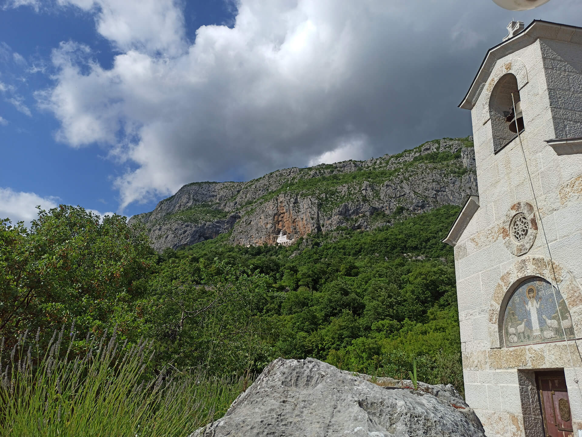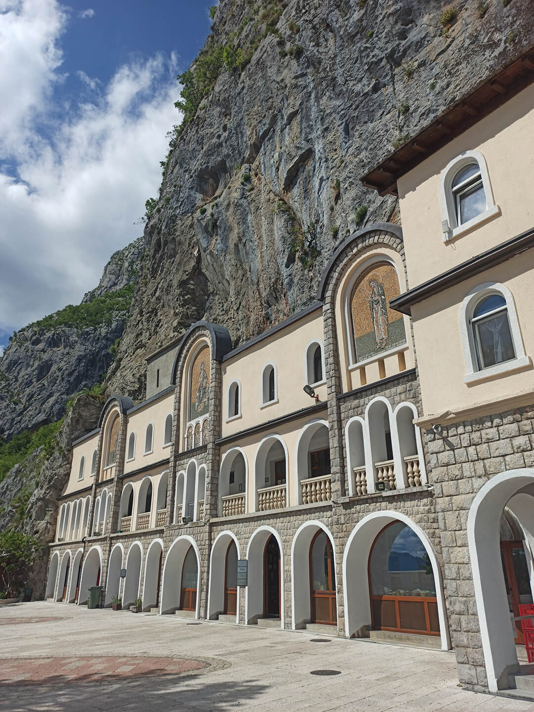 The Monastery of Ostrog is a monastery of the Serbian Orthodox Church. It is located very high in the mountains, on the vertical cliff. It's a very small church but a very famous one. It's a place of pilgrimage for many religious people.