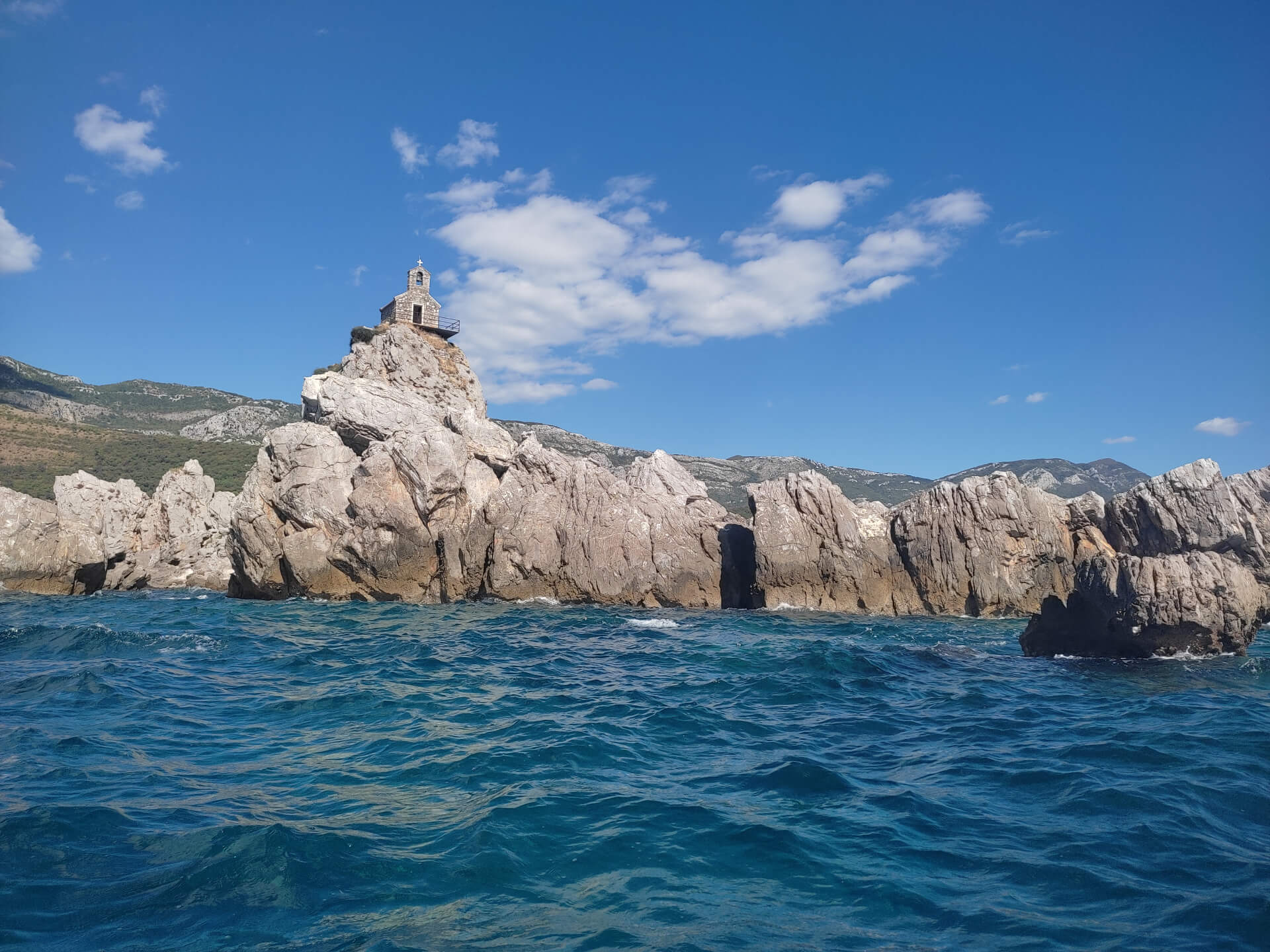 You can reach the island from the sea by the boat, paddle board, kayak or swimming. Sea trip around the island is such an amazing adventure when you can explore amazing coast, its rocks and climb the hill to reach the church.