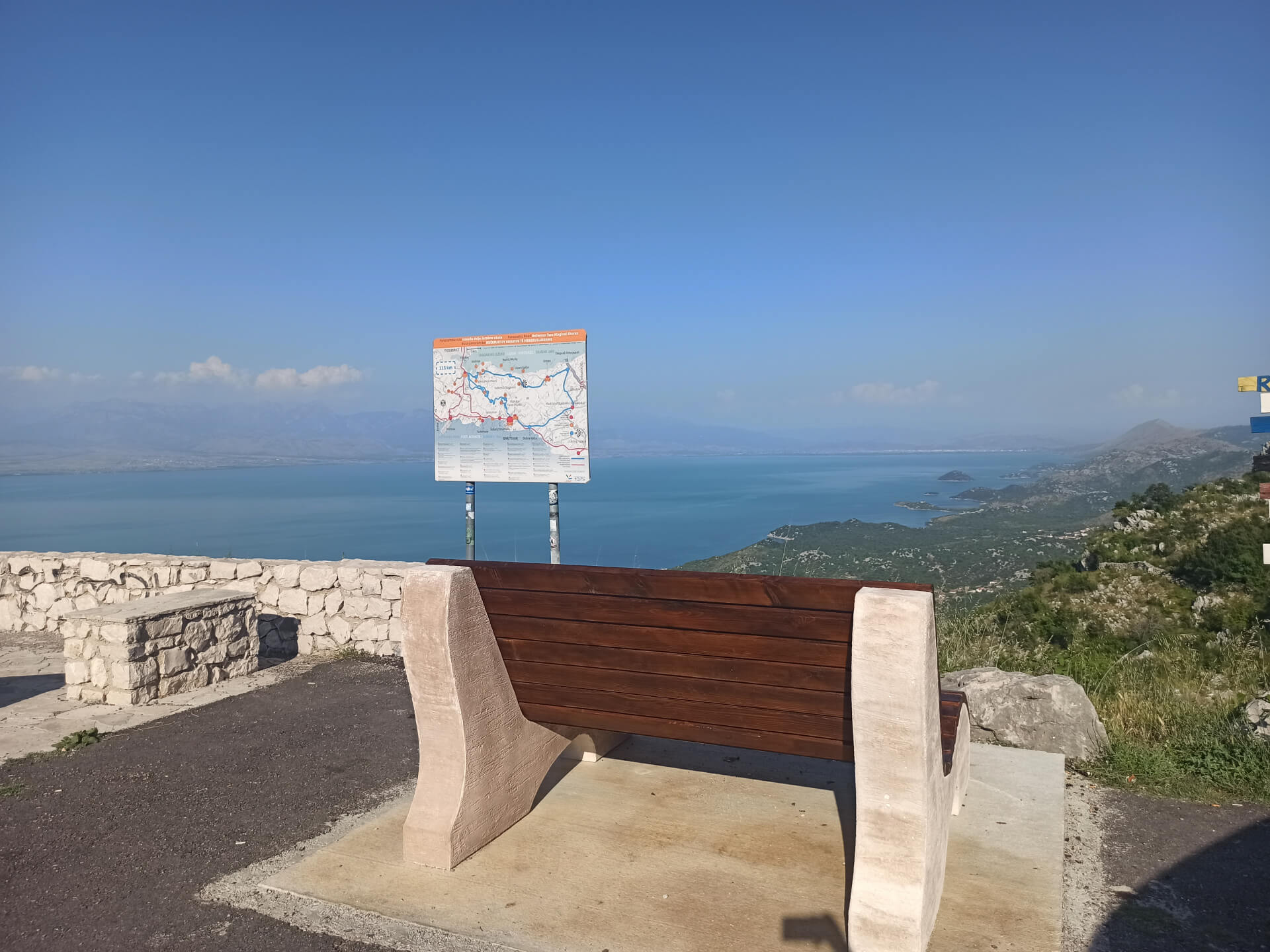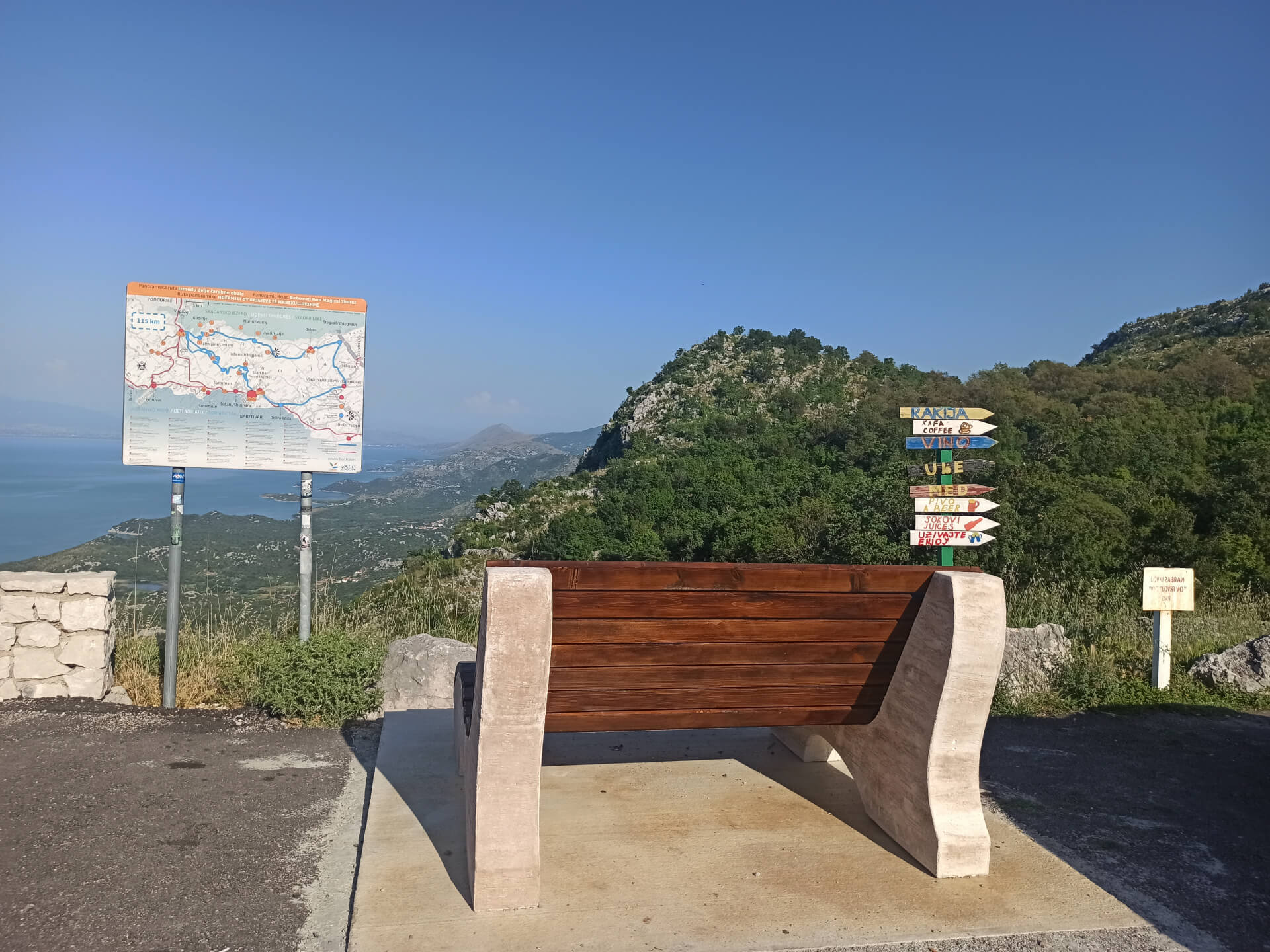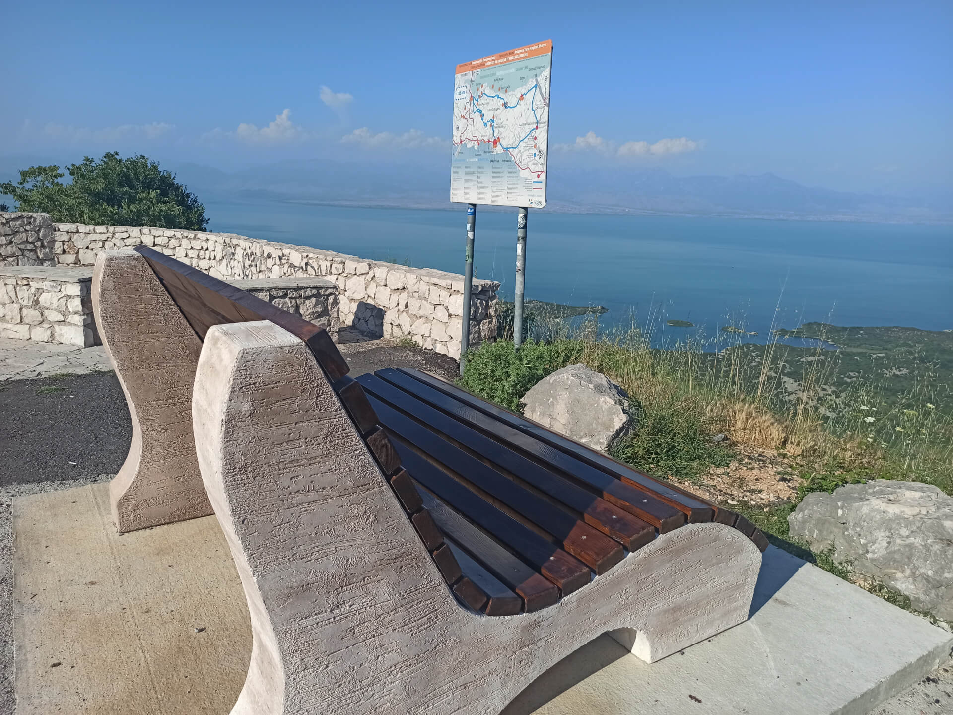 Viewpoint Livari is a fantastic place for observing Skadar Lake and its surrounding area. Beautiful warming mountains surround the area and the lake. The modern bench allows you to sit and enjoy peaceful time in nature. You can see a very beautiful lake, its tiny islets, mountains in front of it and natural valley from the viewpoint.