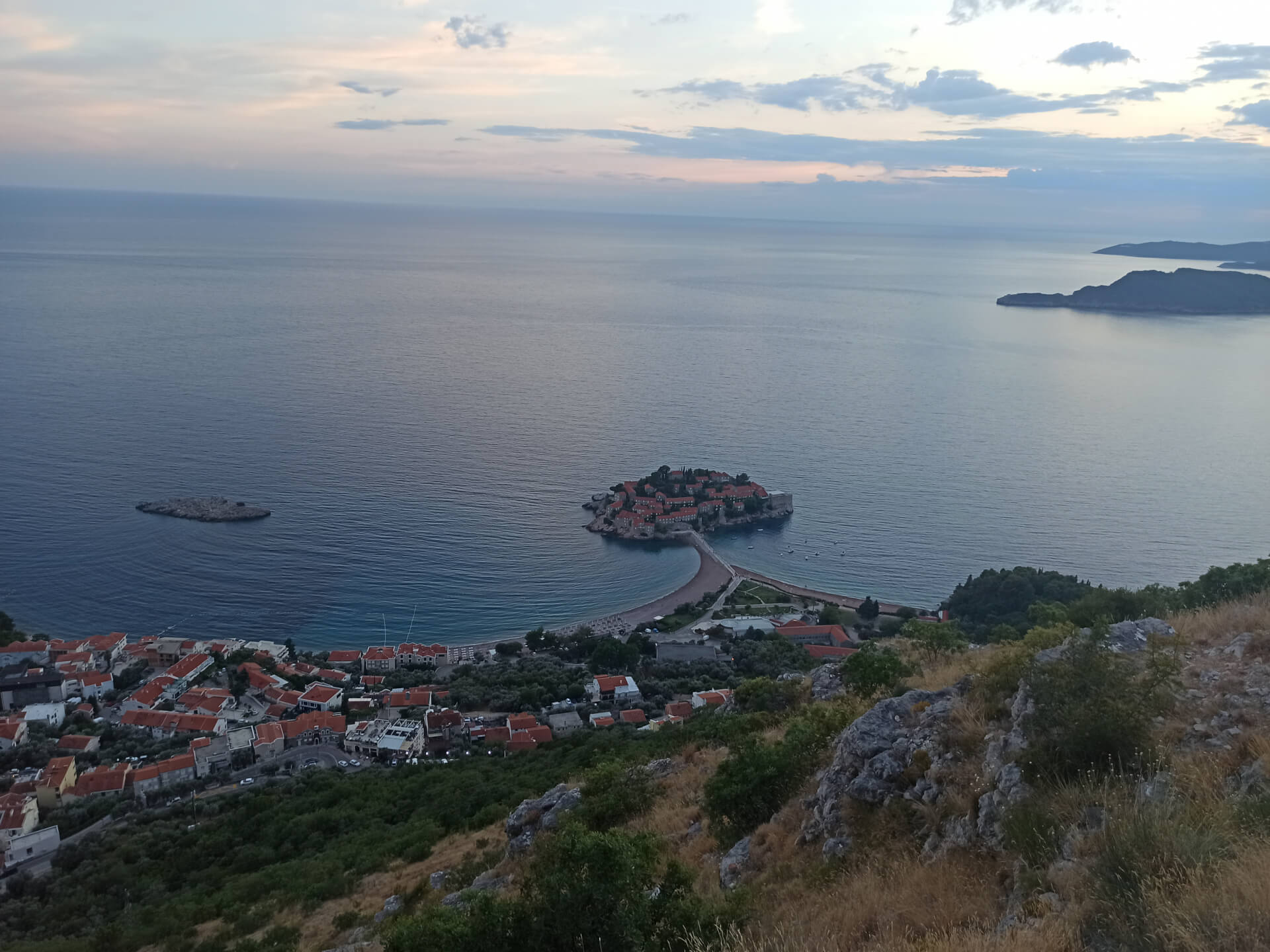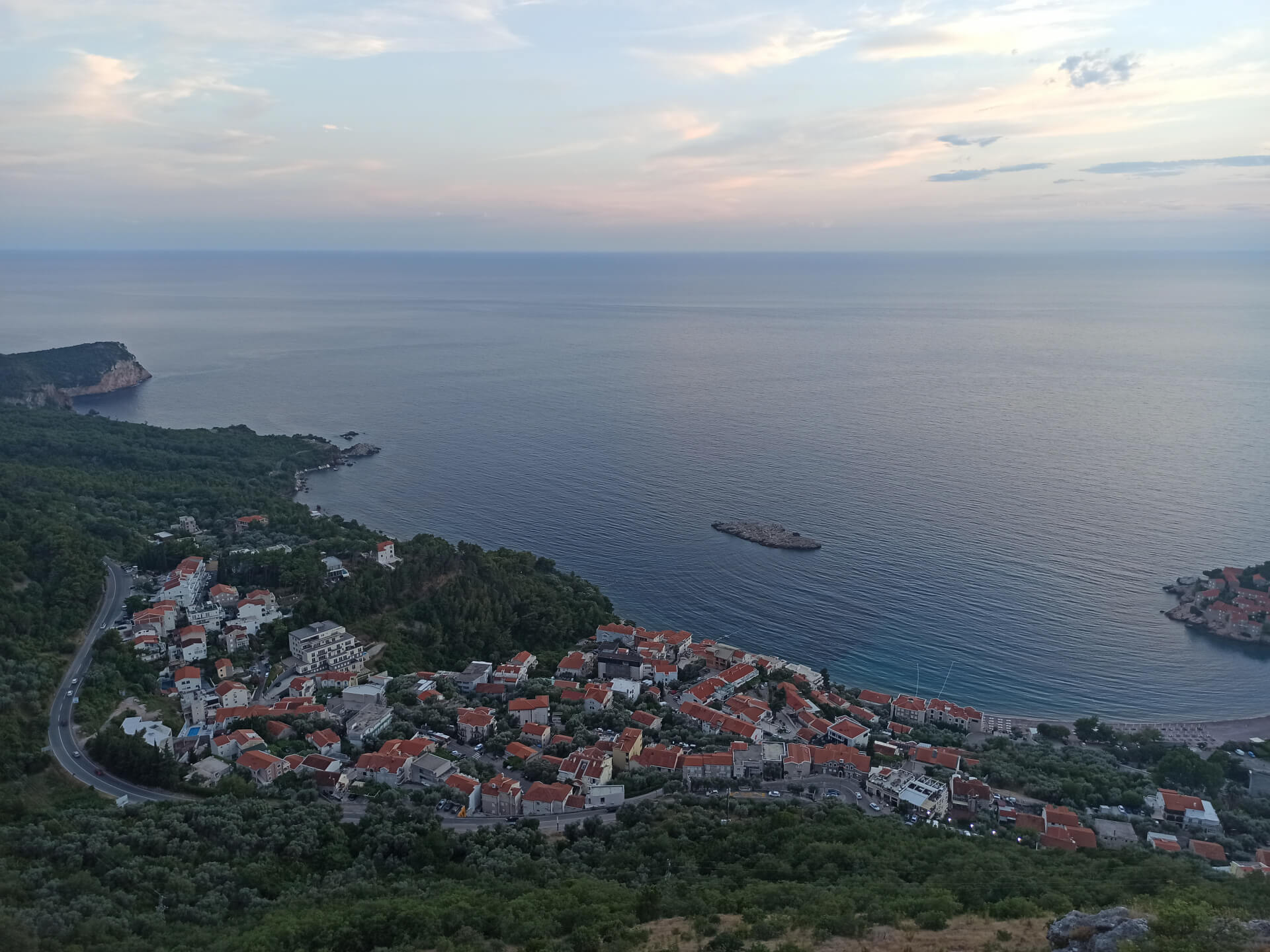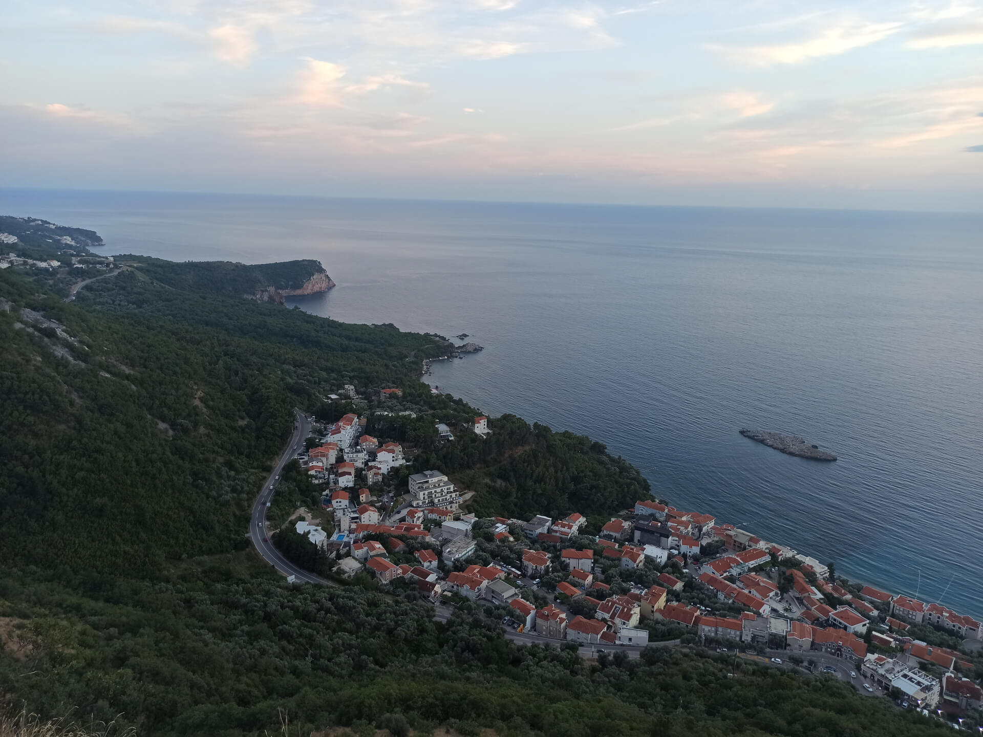 Budva city and Budvanska Riviera. You need to drive about 2,2 km from the Adriatic highway to the mountain to be able to see this fantastic viewpoint. There is a small Serbian orthodox church of St.Sava and the viewpoint is located on its territory.